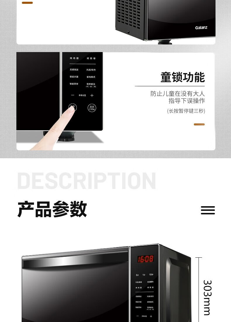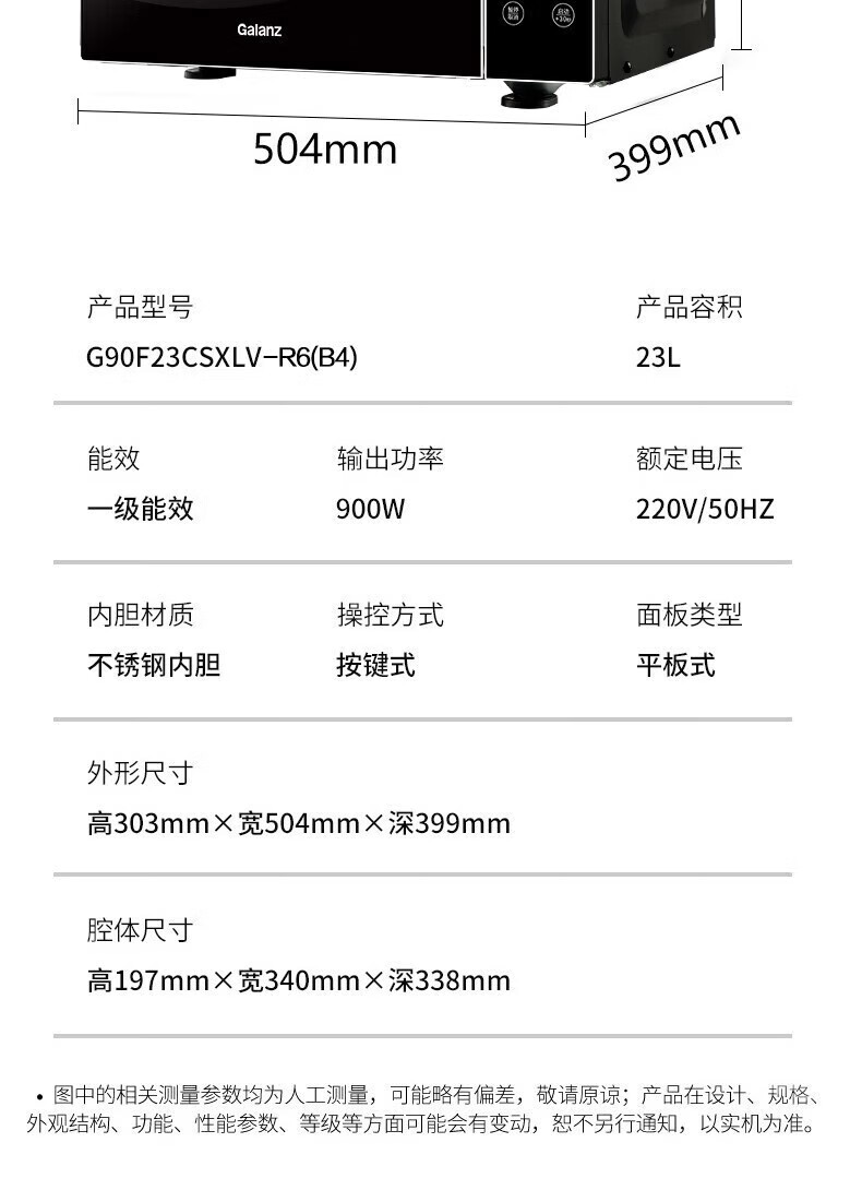 格兰仕变频微波炉电烤箱一体机光波炉不锈钢内胆900W23升R6B4