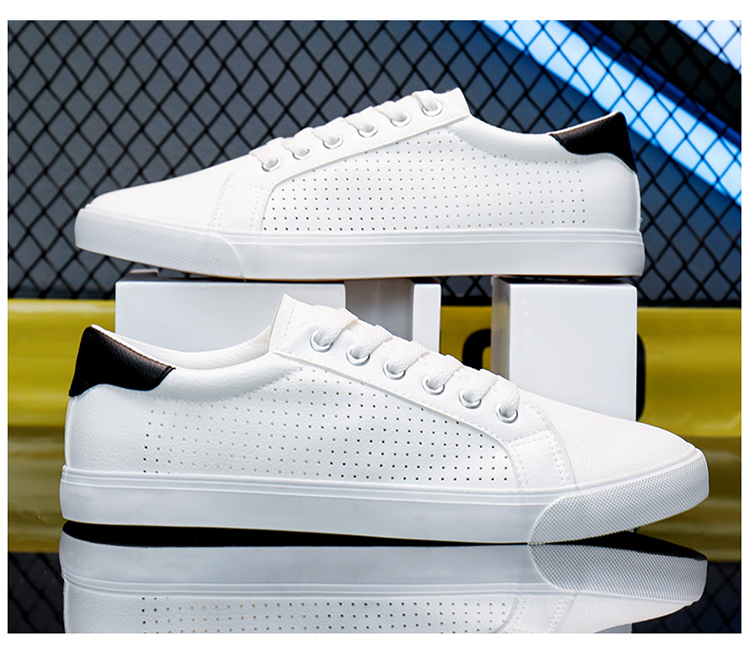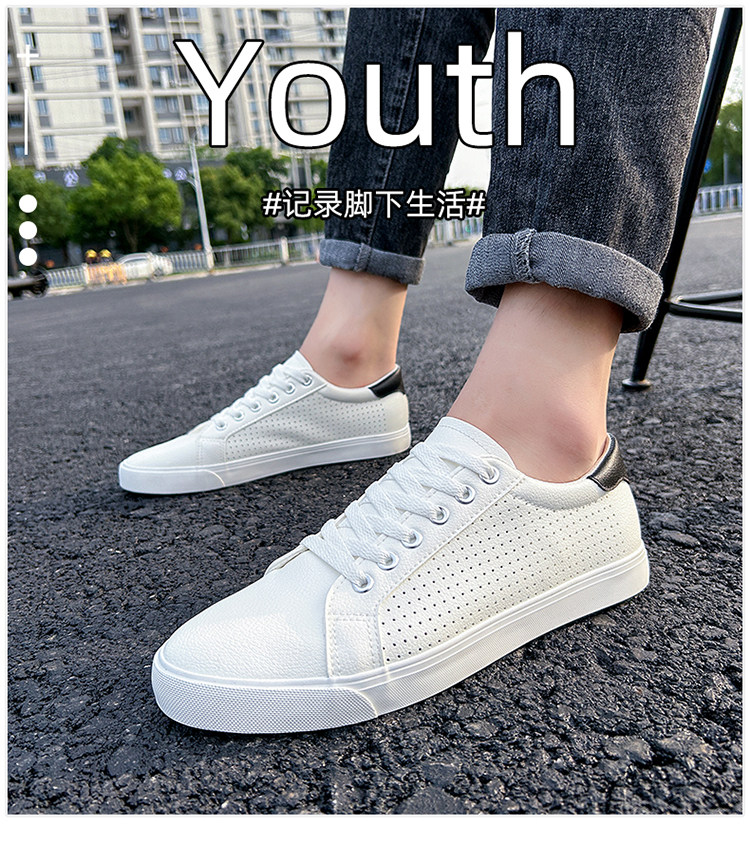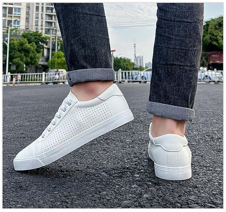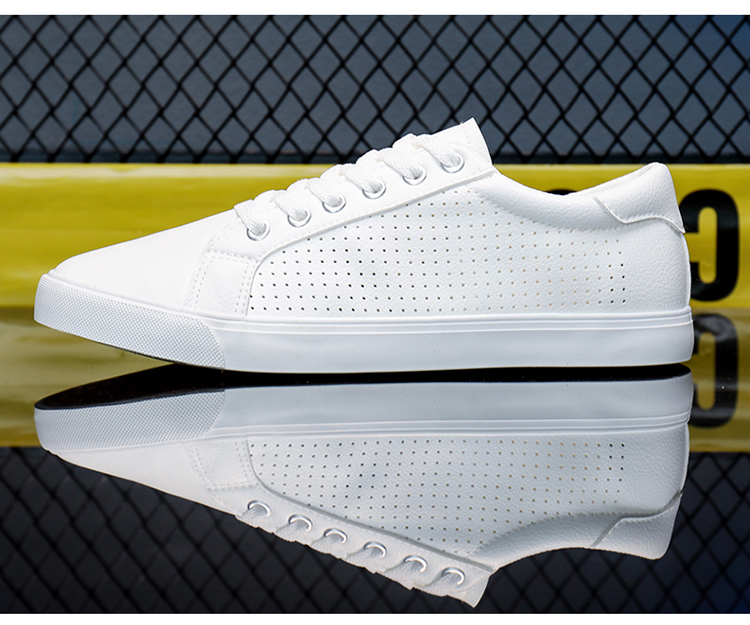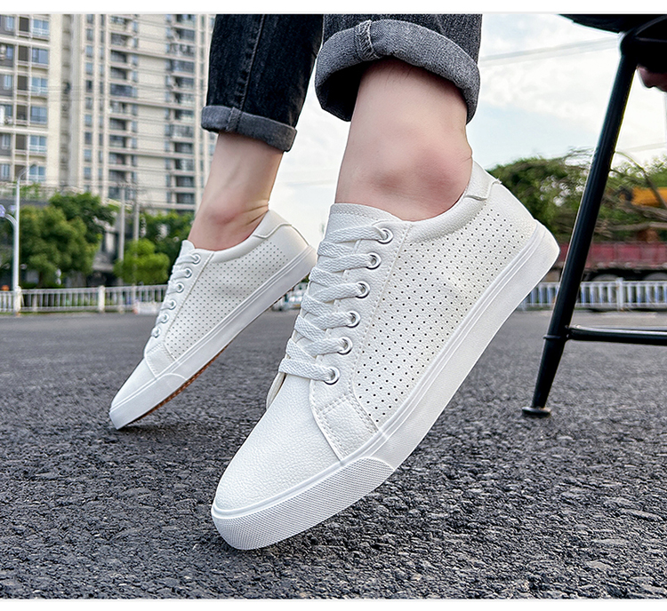 小白鞋男款夏季镂空透气薄款鞋子打孔网面休闲皮鞋男生纯白色板鞋
