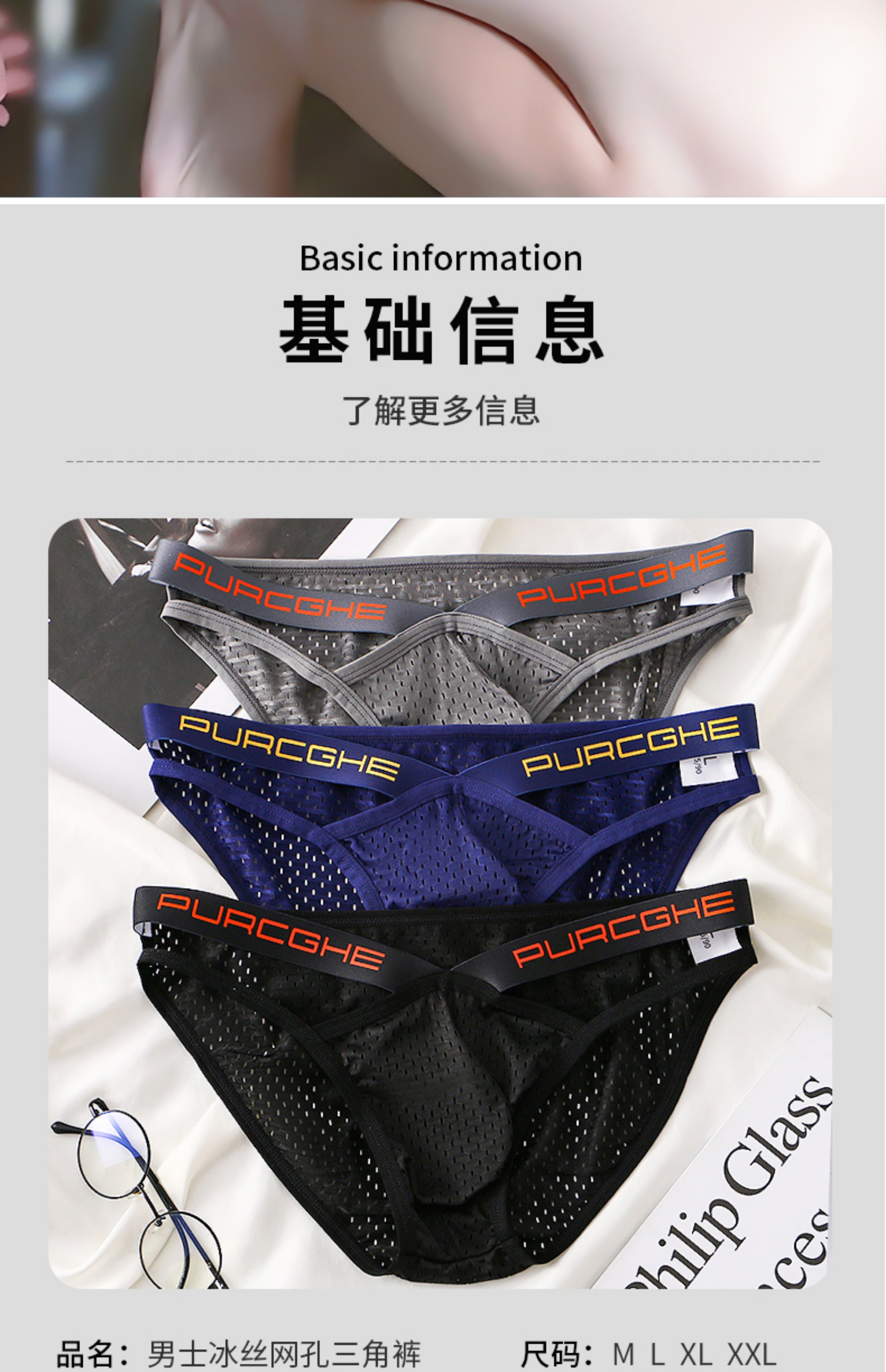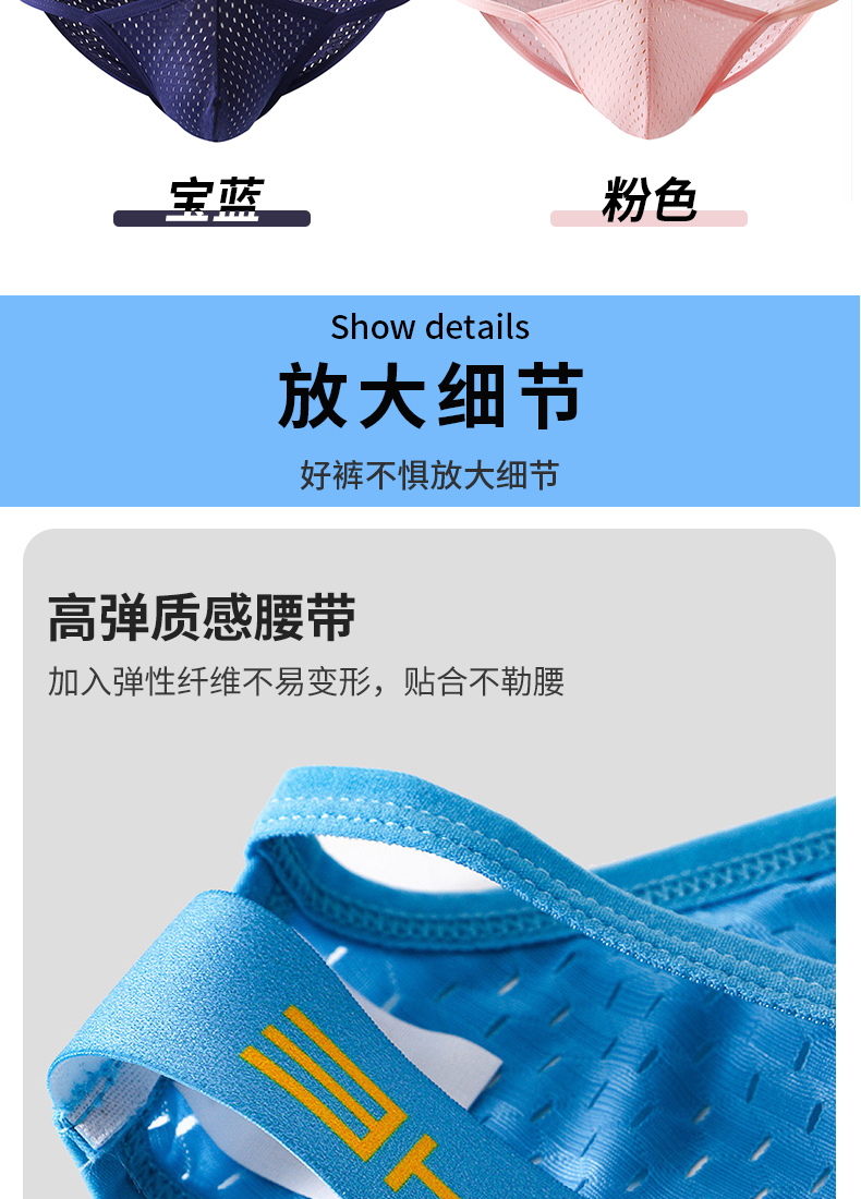 男士内裤三角冰丝网眼透气三角裤男款低腰性感底裤男生紧身小裤衩