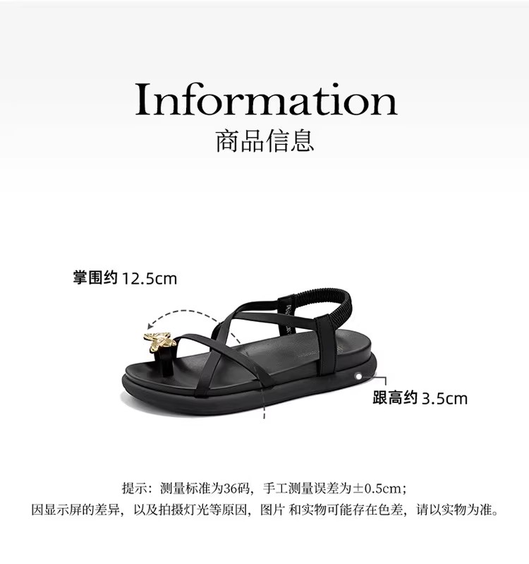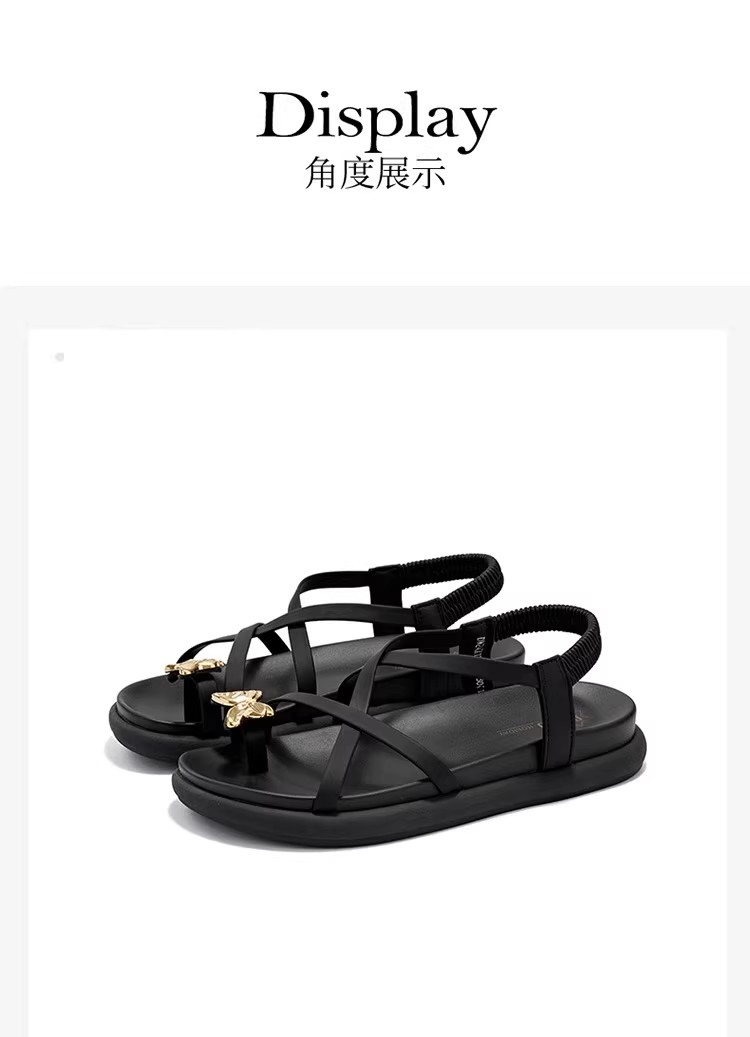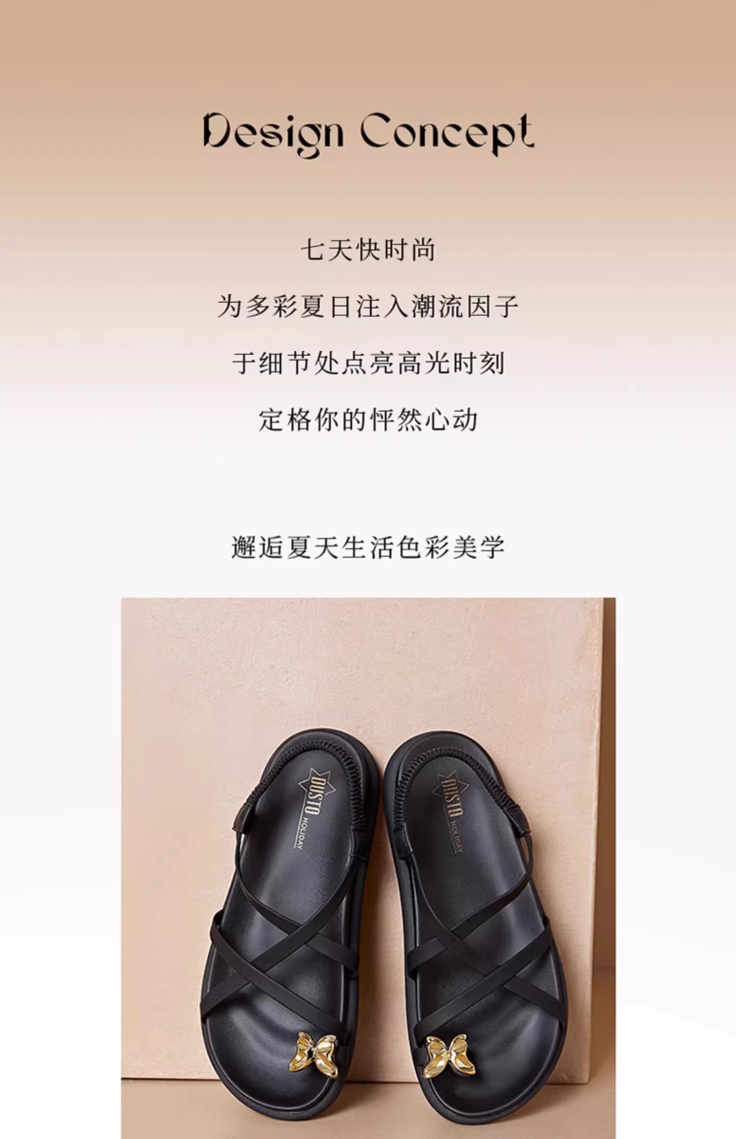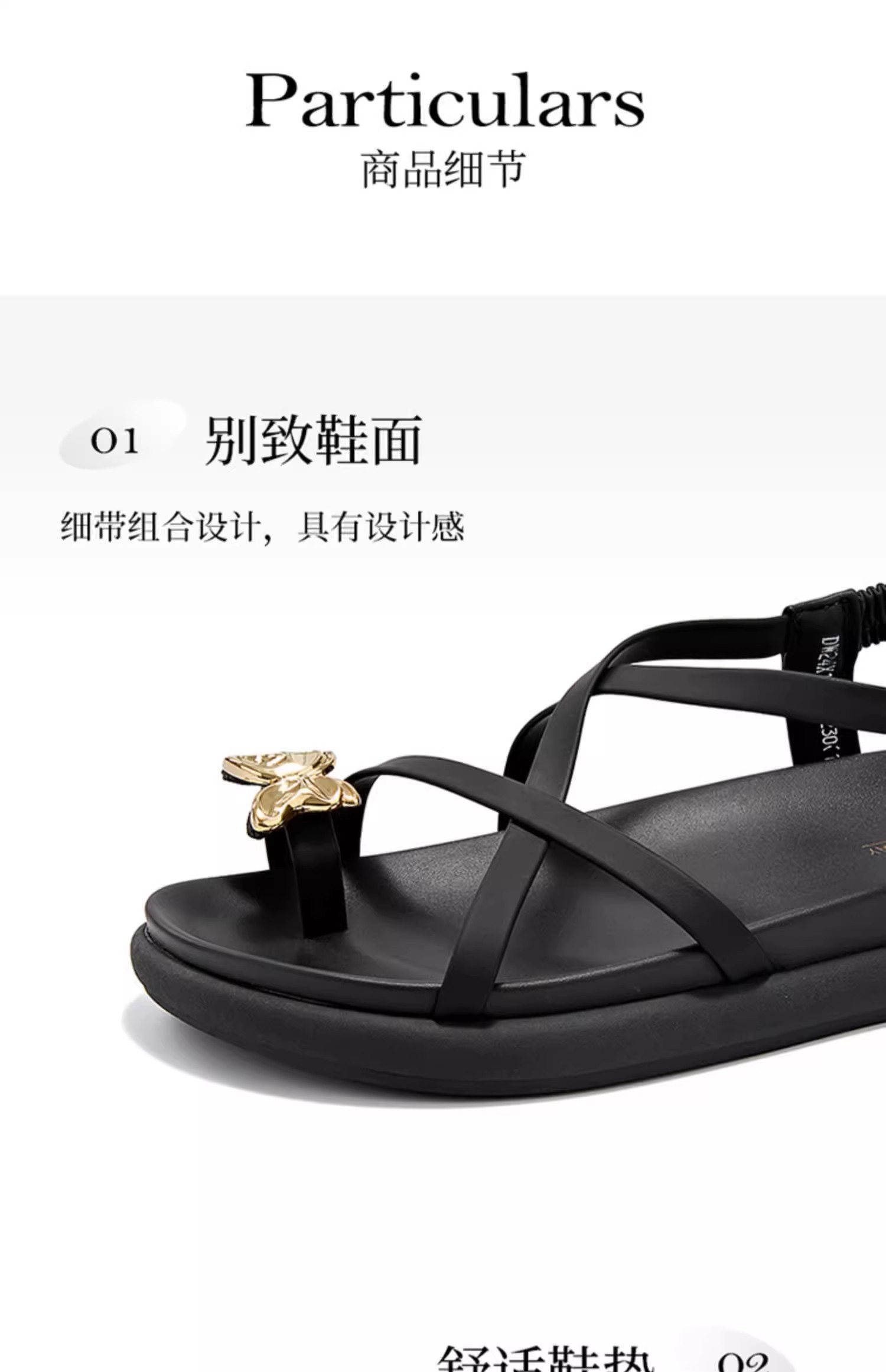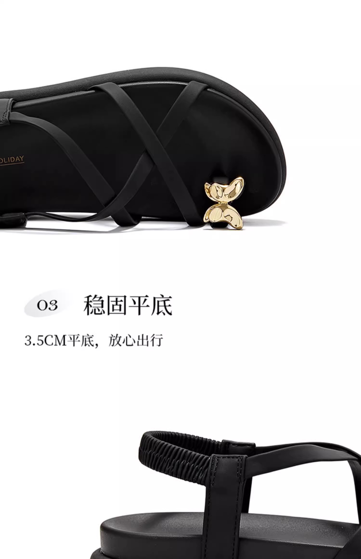 大东绑带凉鞋女鞋24夏季新款优雅简约平底中跟松紧带圆头24X1206