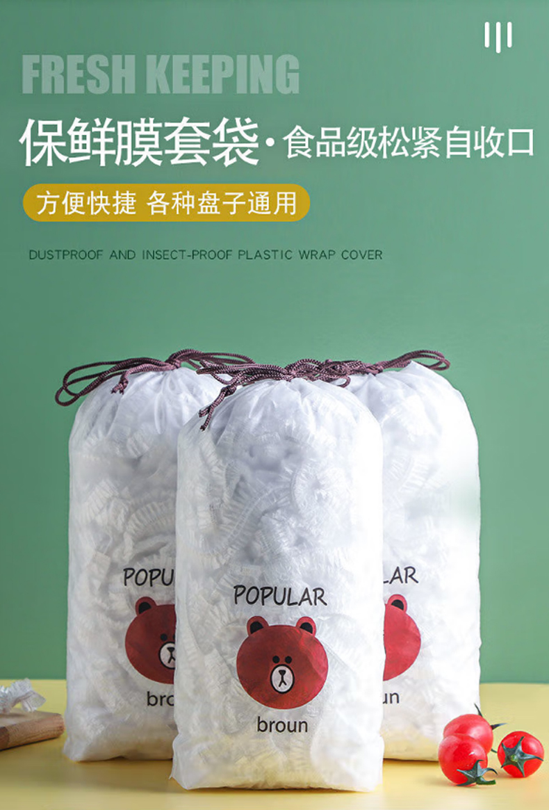 小熊款保鲜膜套食品级一次性保鲜袋加厚家用带松紧式冰箱碗盖套罩