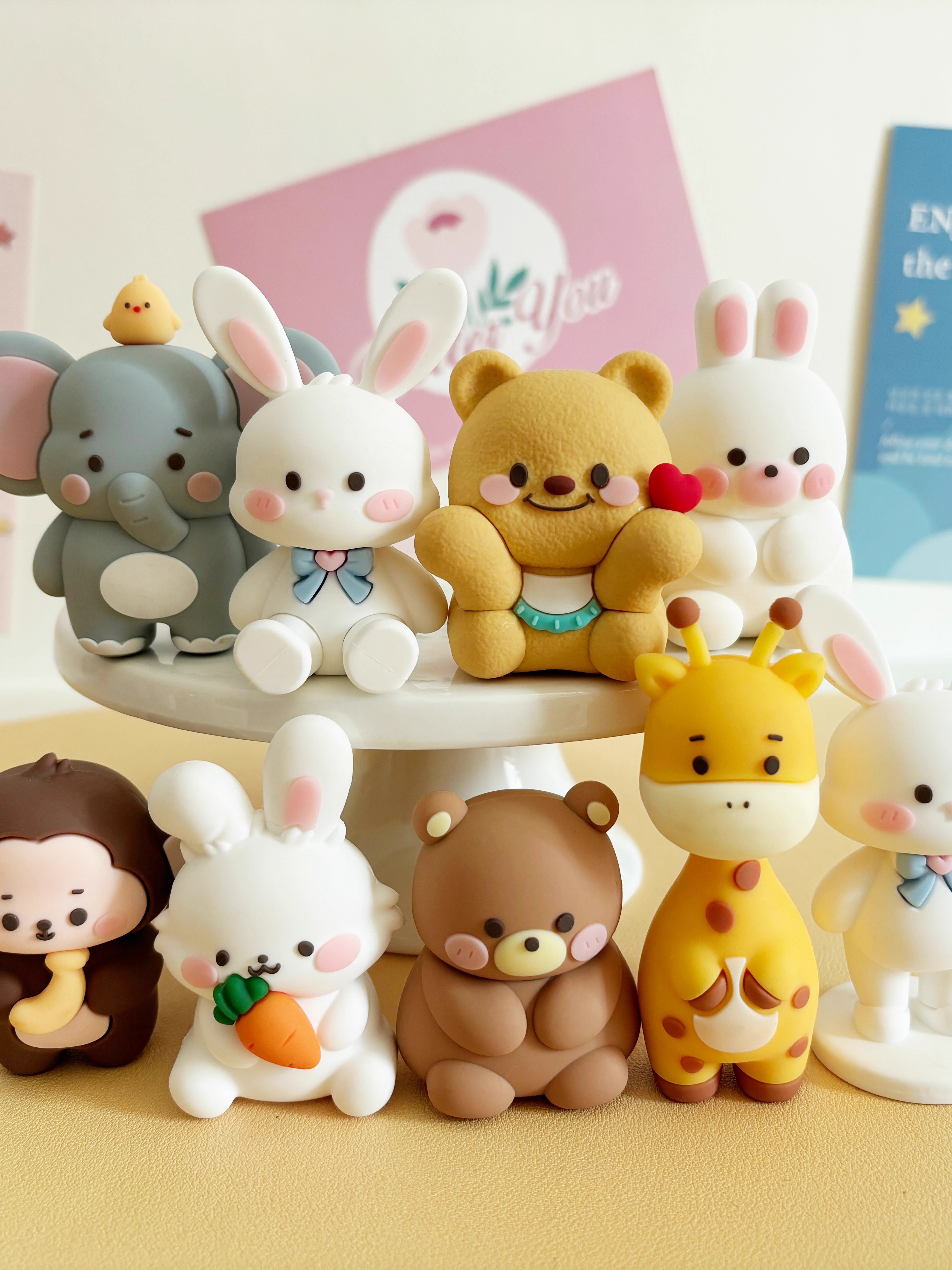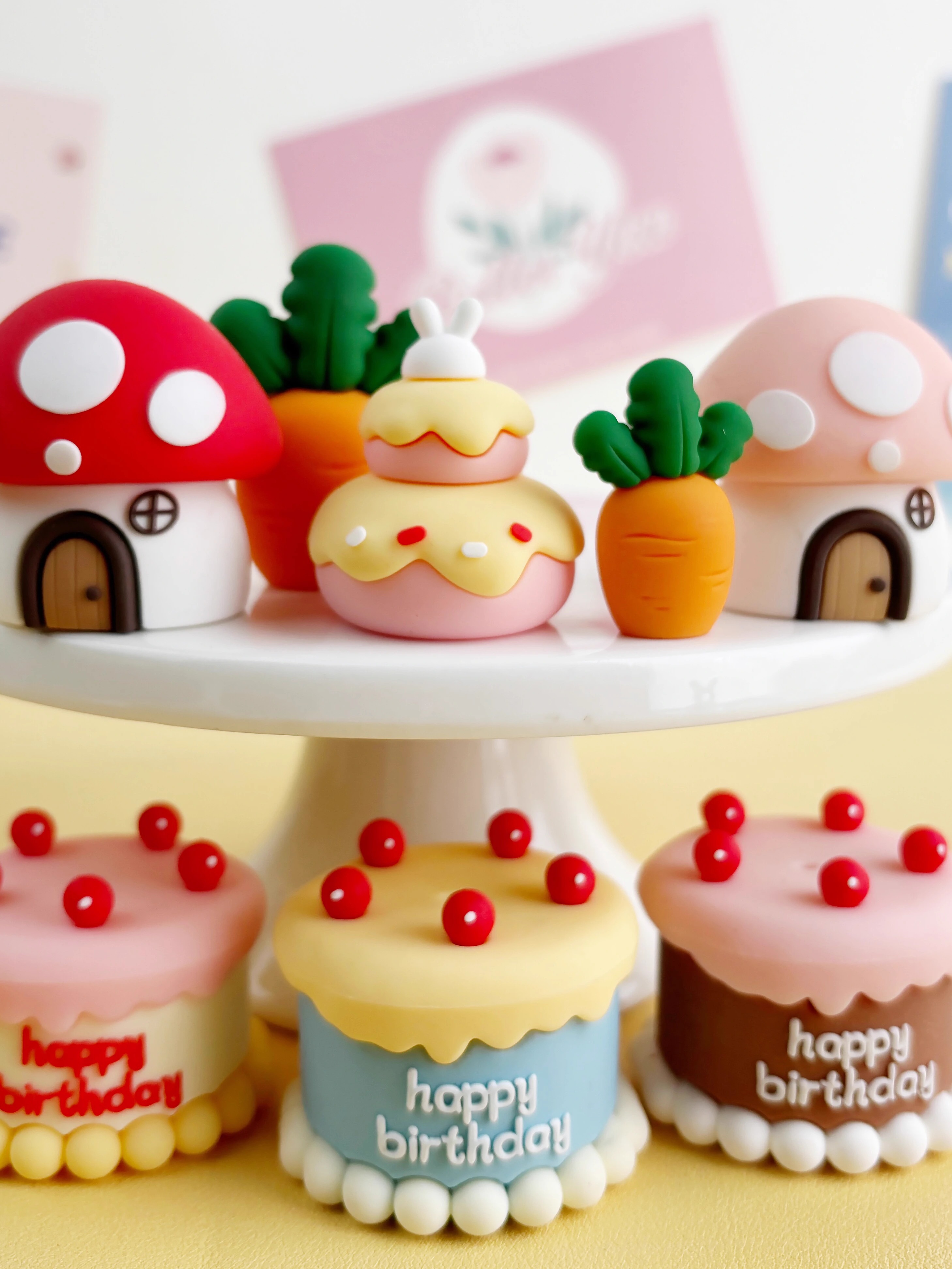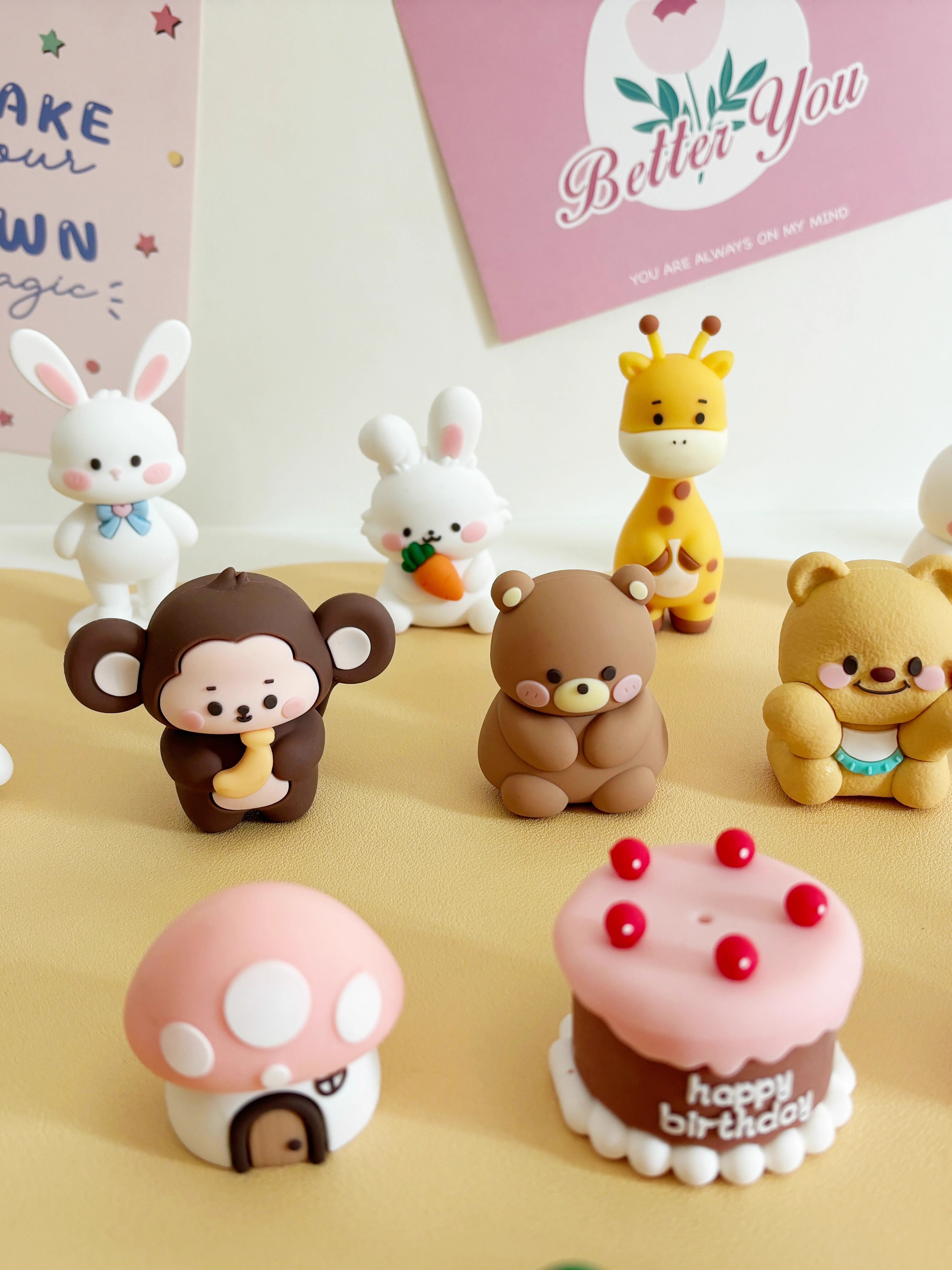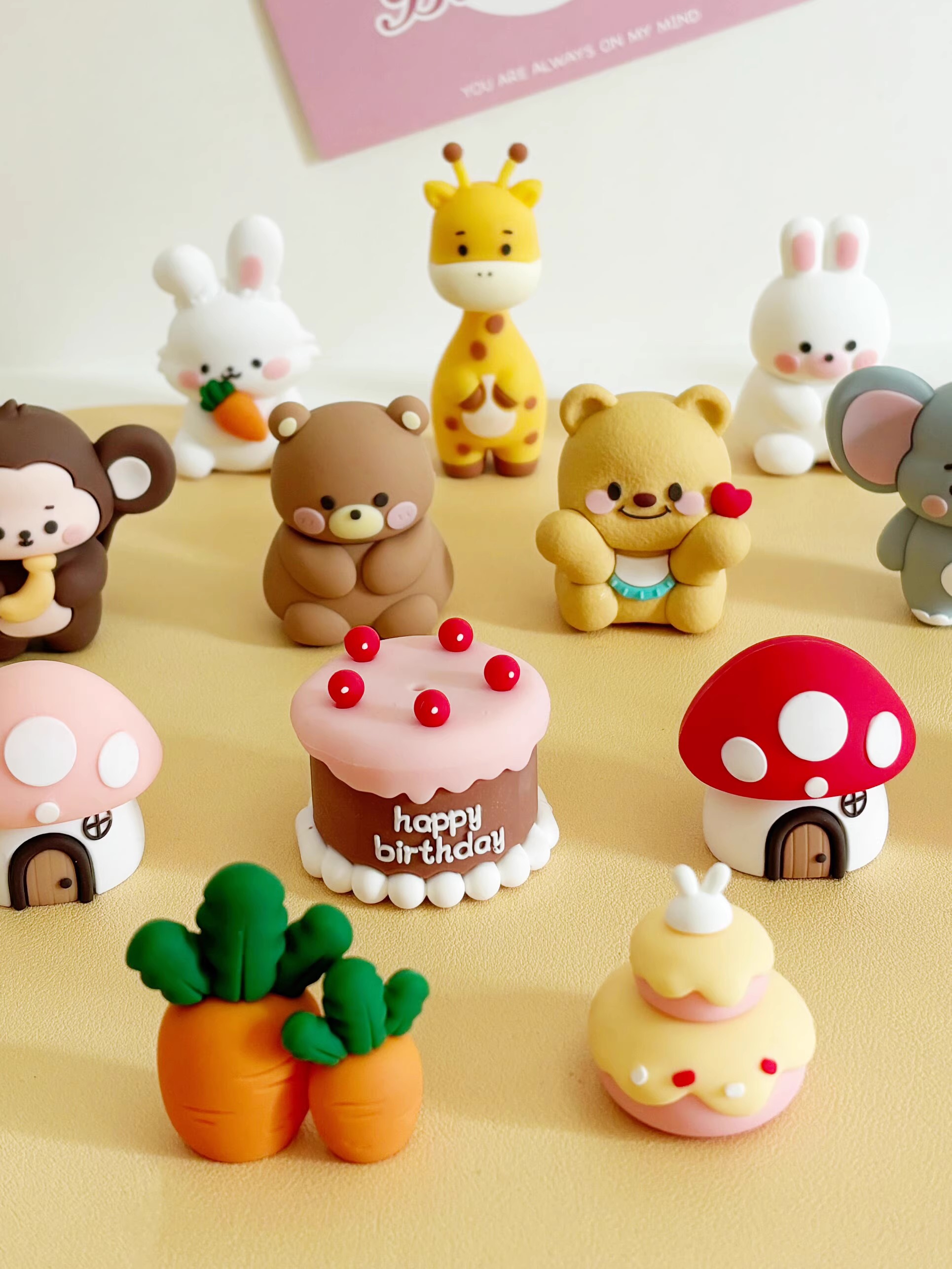 卡通森系动物生日蛋糕装饰软胶小熊小兔蘑菇屋萝卜兔狮子大象摆件