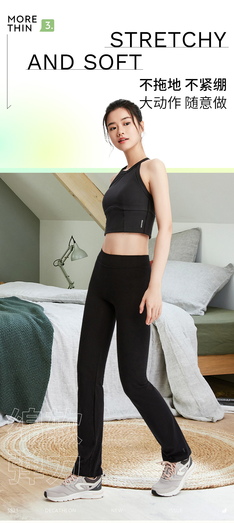 迪卡侬直筒运动长裤瑜伽休闲宽松棉感舒适跑步健身domyos女SAY1