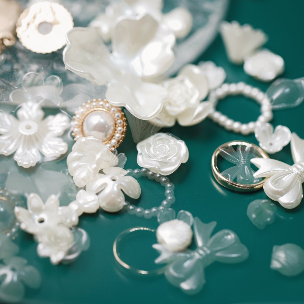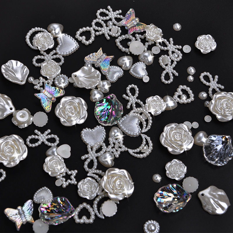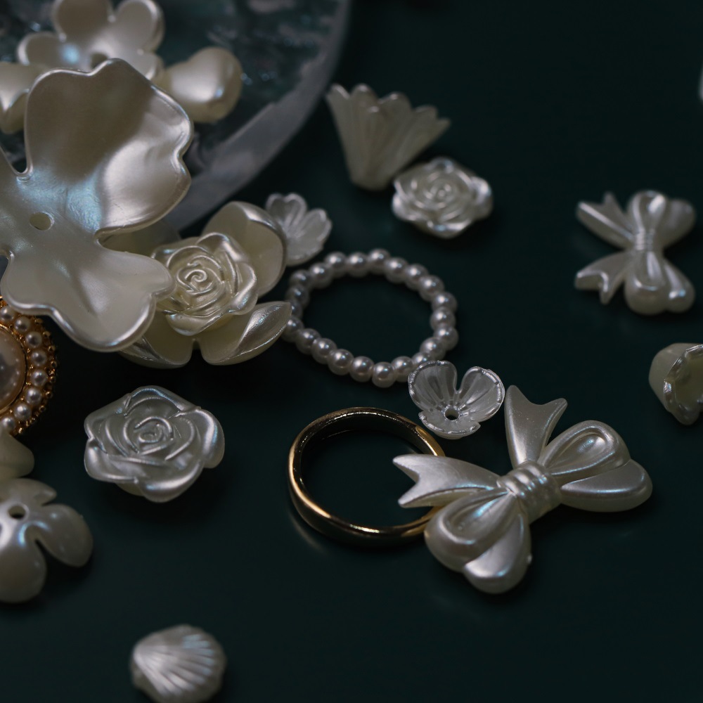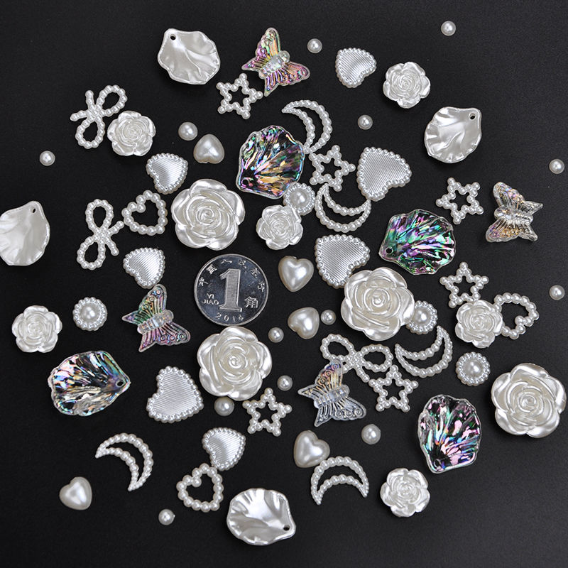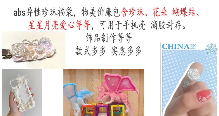 仿珍珠玫瑰花瓣奶油胶手机壳diy材料包玩具蝴蝶爱心巴洛克饰配件