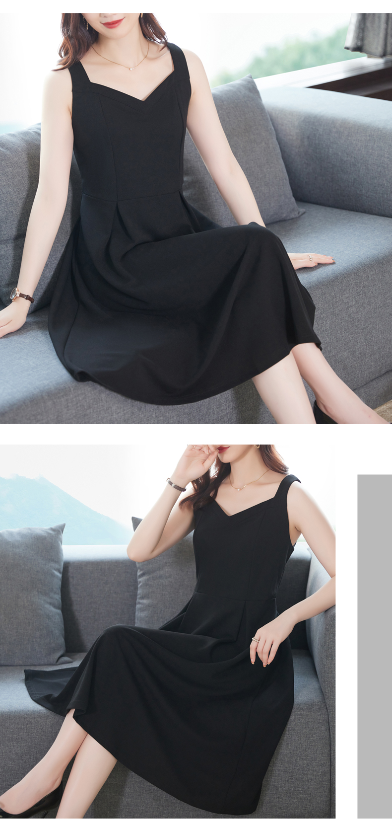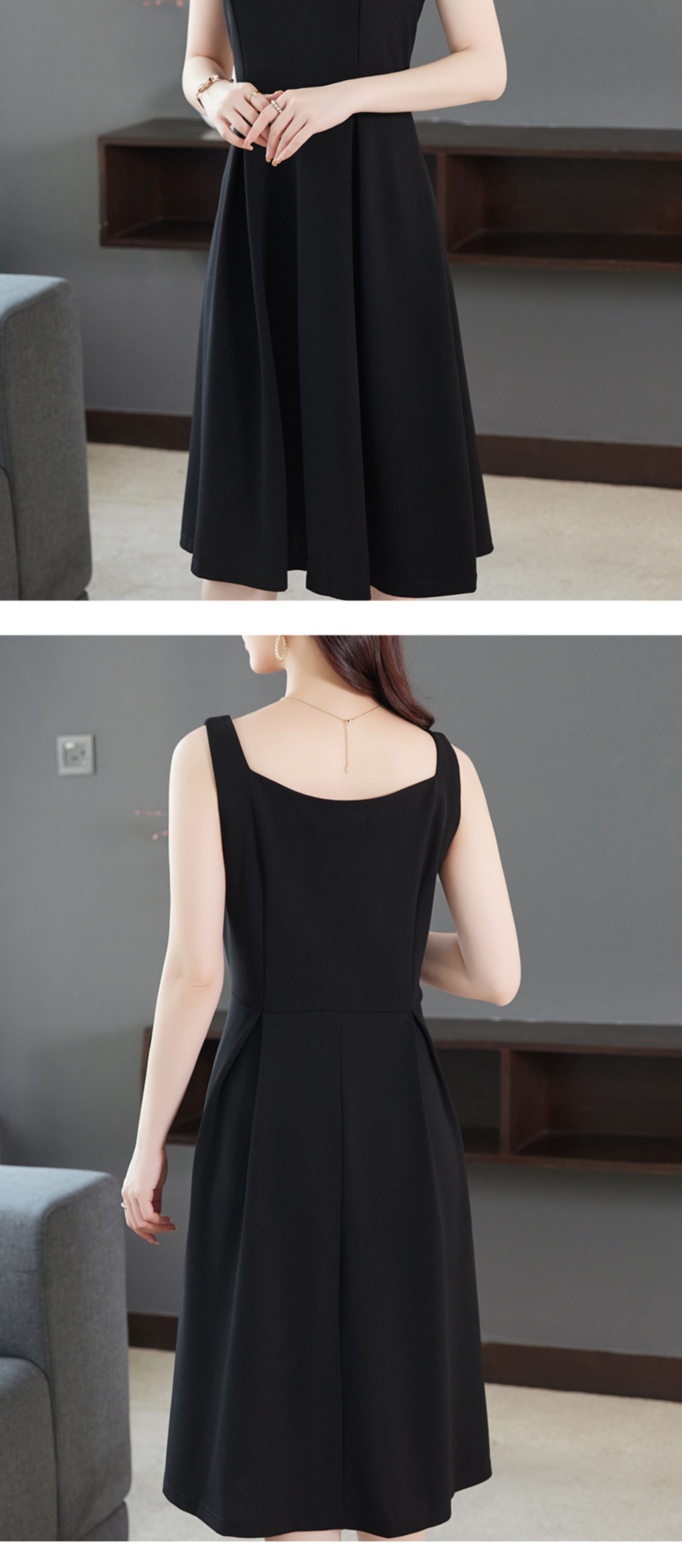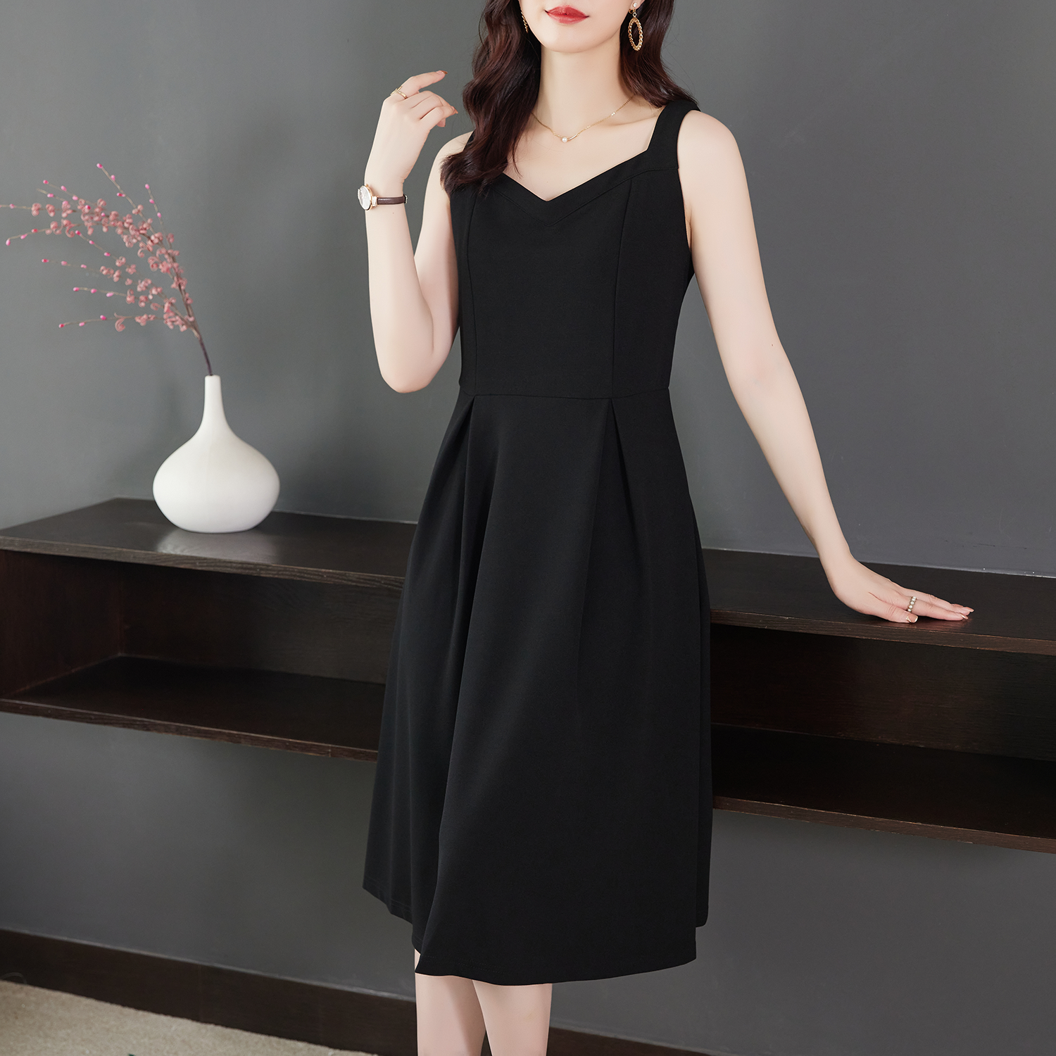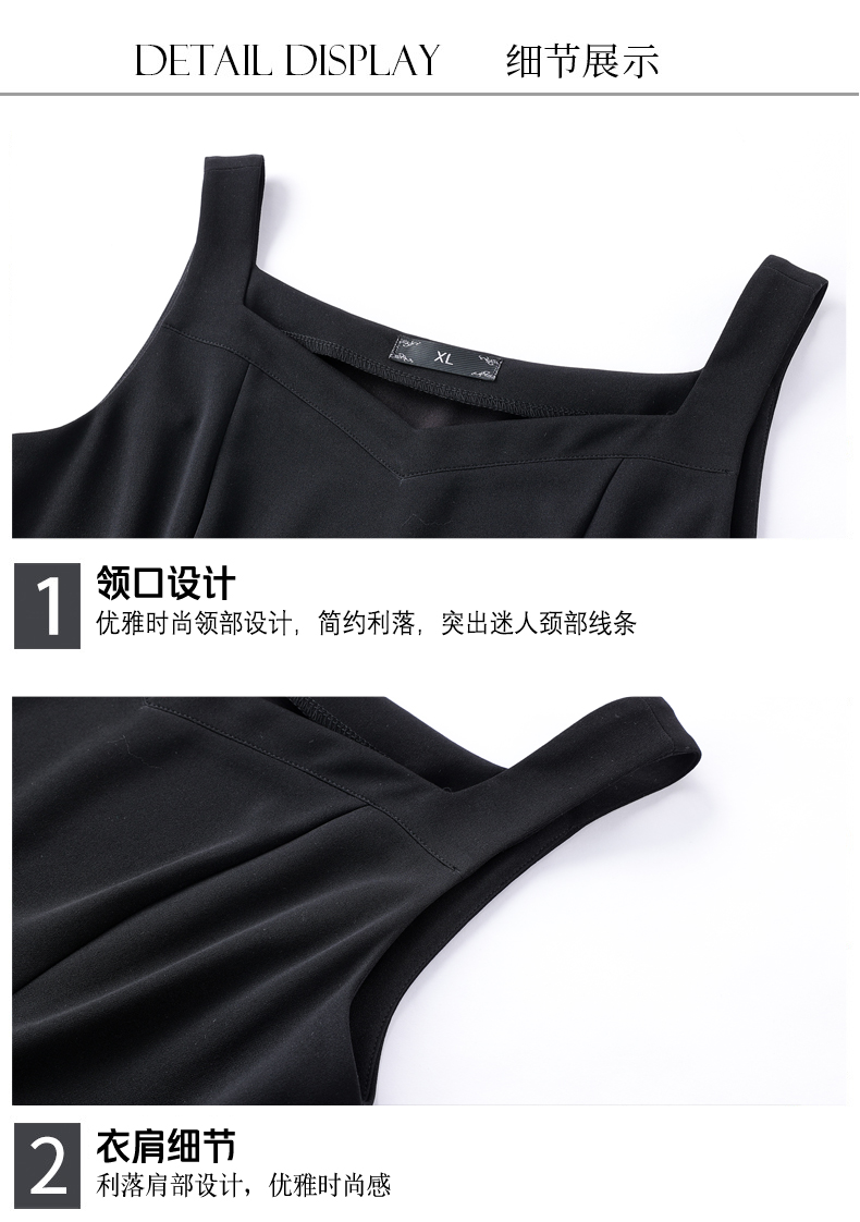 大码女装2025夏季新款胖mm显瘦遮肉无袖高级感黑色吊带连衣裙减龄