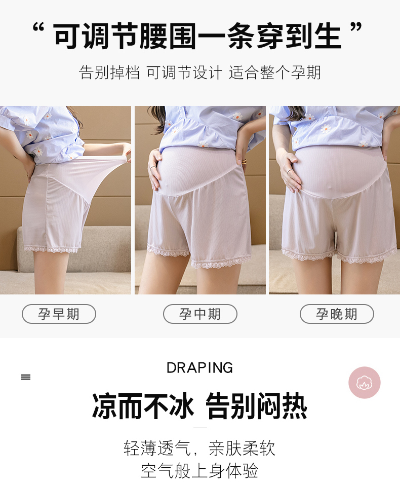 孕妇安全裤夏季薄款防走光冰丝托腹打底裤短裤宽松大码孕妇装夏装