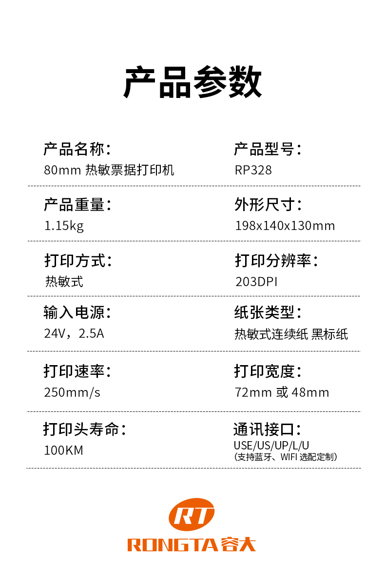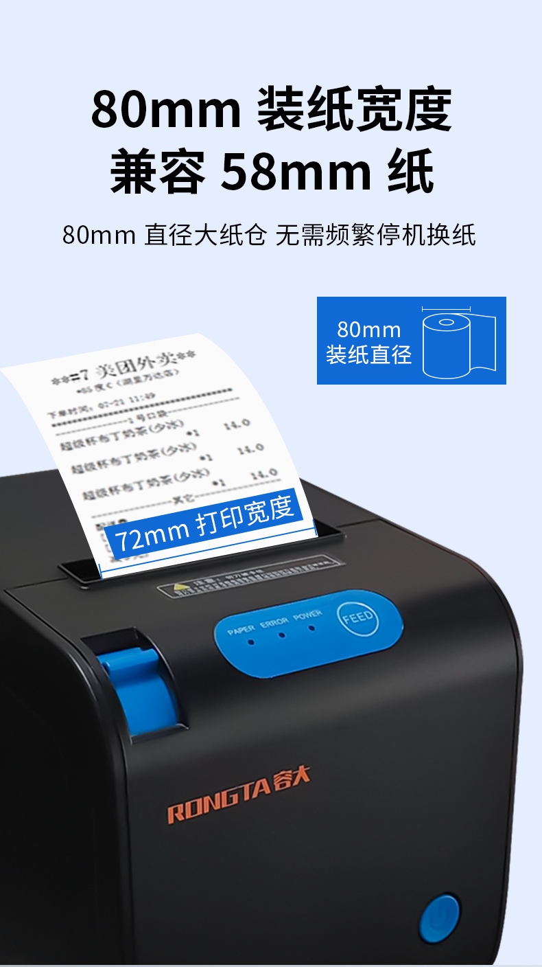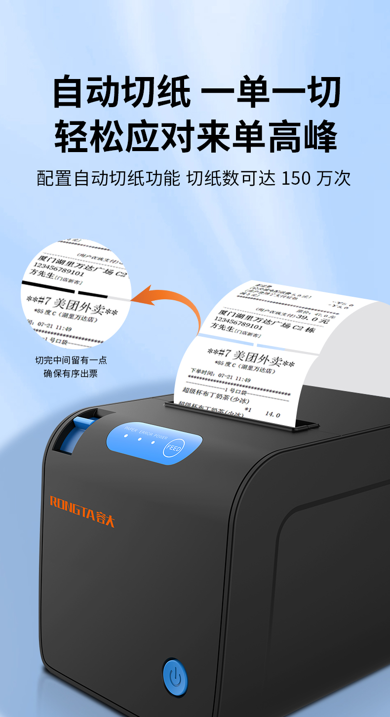 容大RP328/C热敏票据80mm打印机自动切纸厨房小票打印带切刀前台超市收银餐饮厨房出单小票据打印机