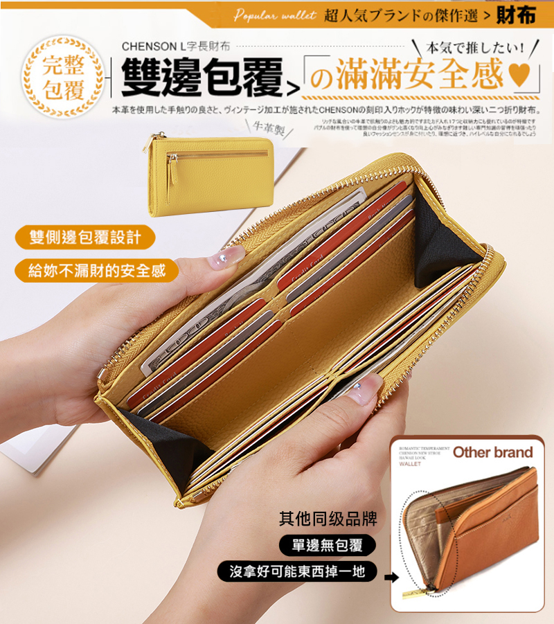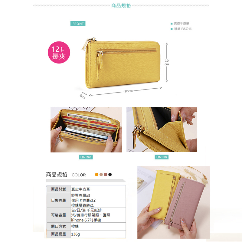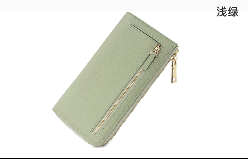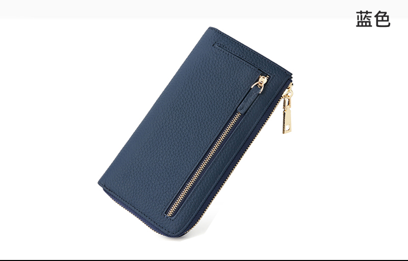 外贸原单 纯牛皮女士长款拉链钱包大容量放手机 真皮防消磁薄钱夹