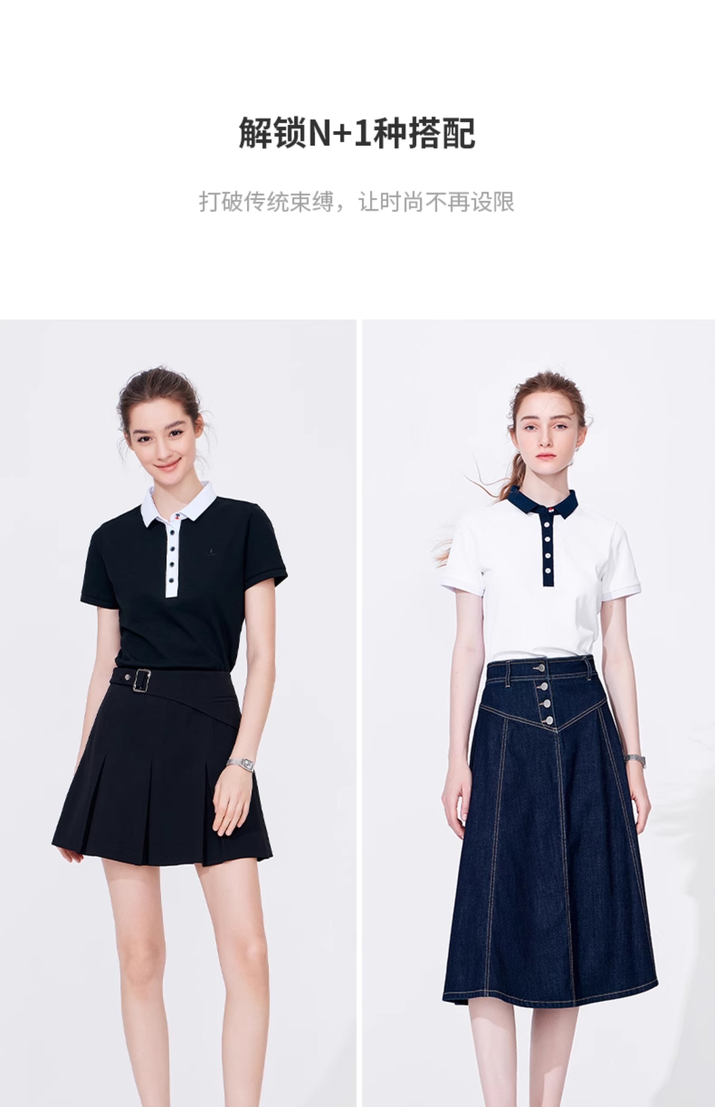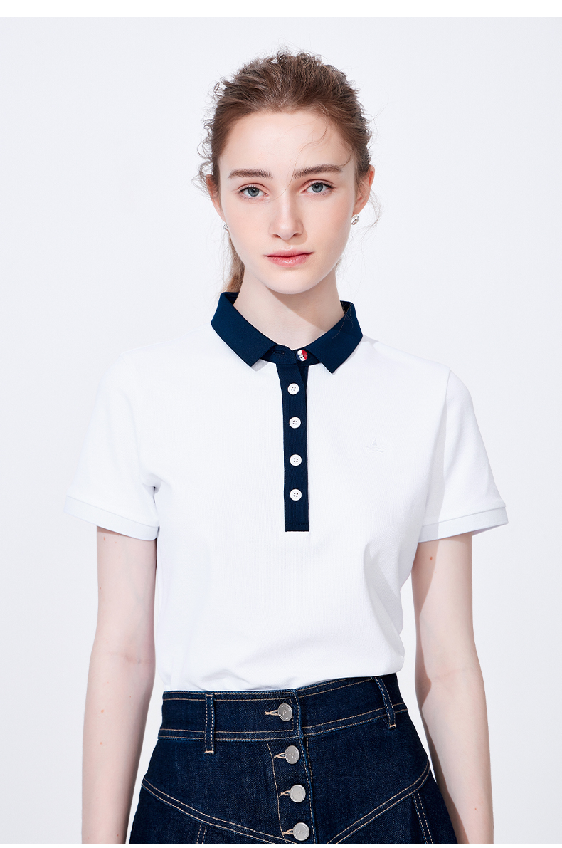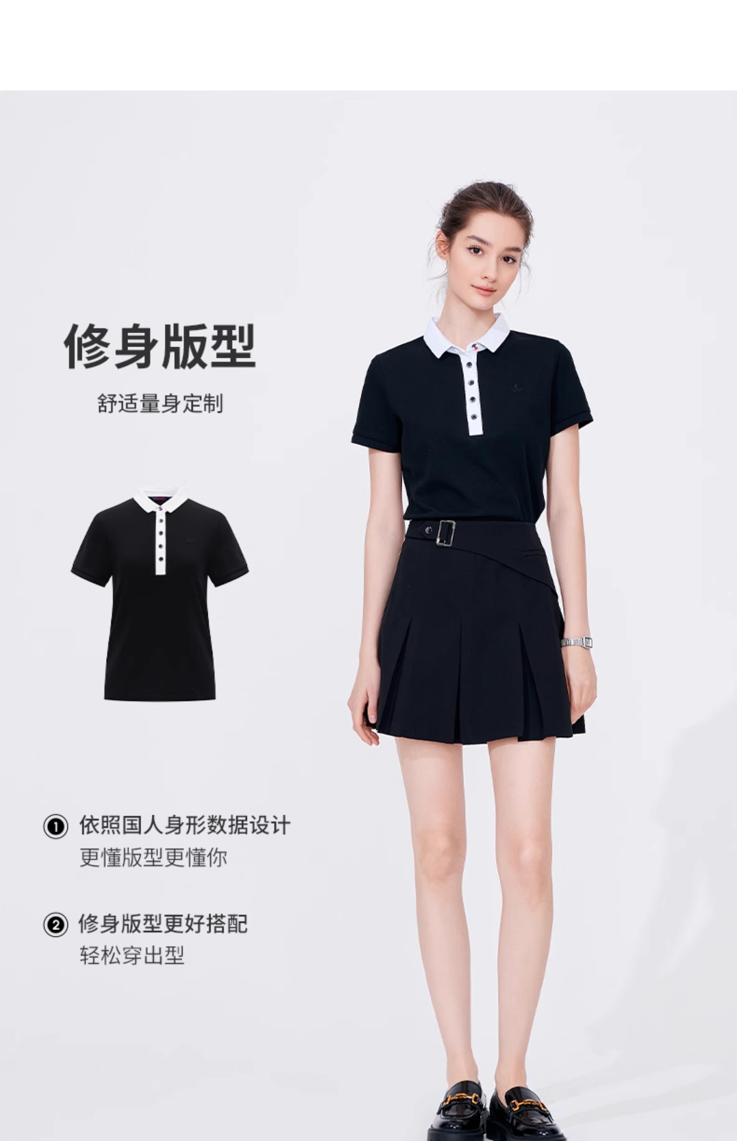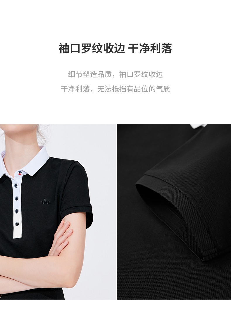 Navigare意大利小帆船修身女polo衫25夏季新款黑白撞色短袖T恤衫