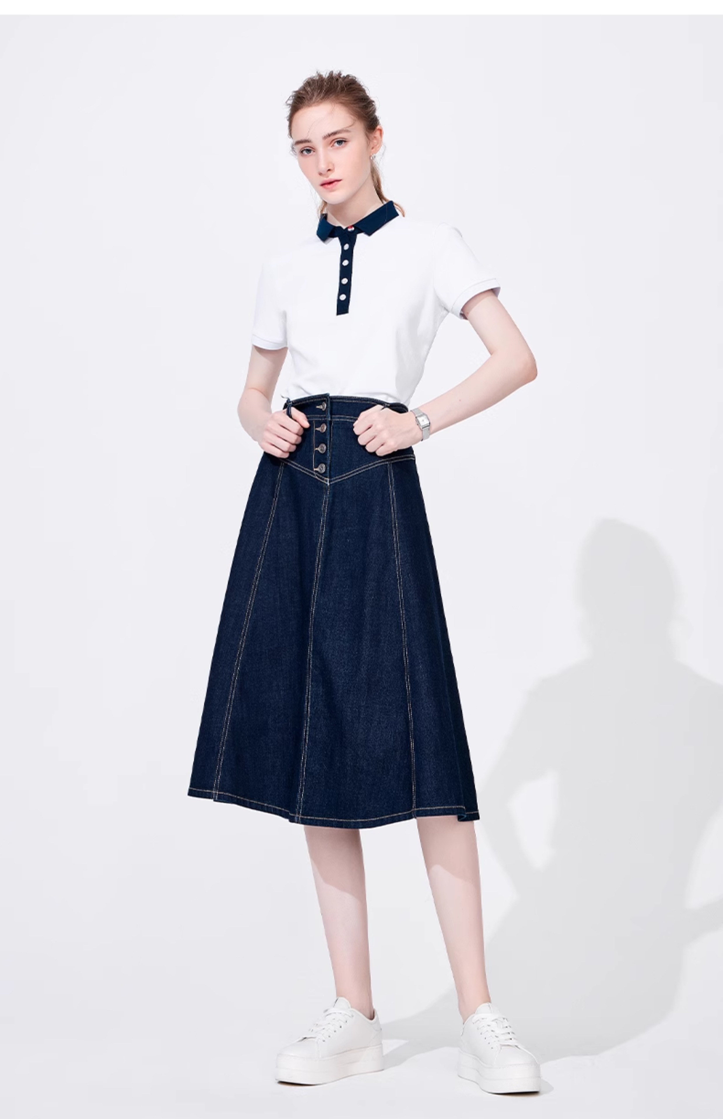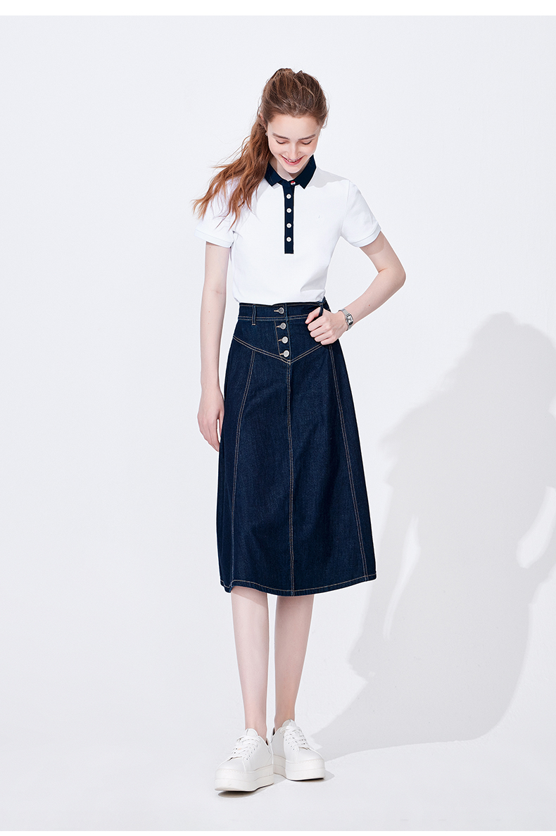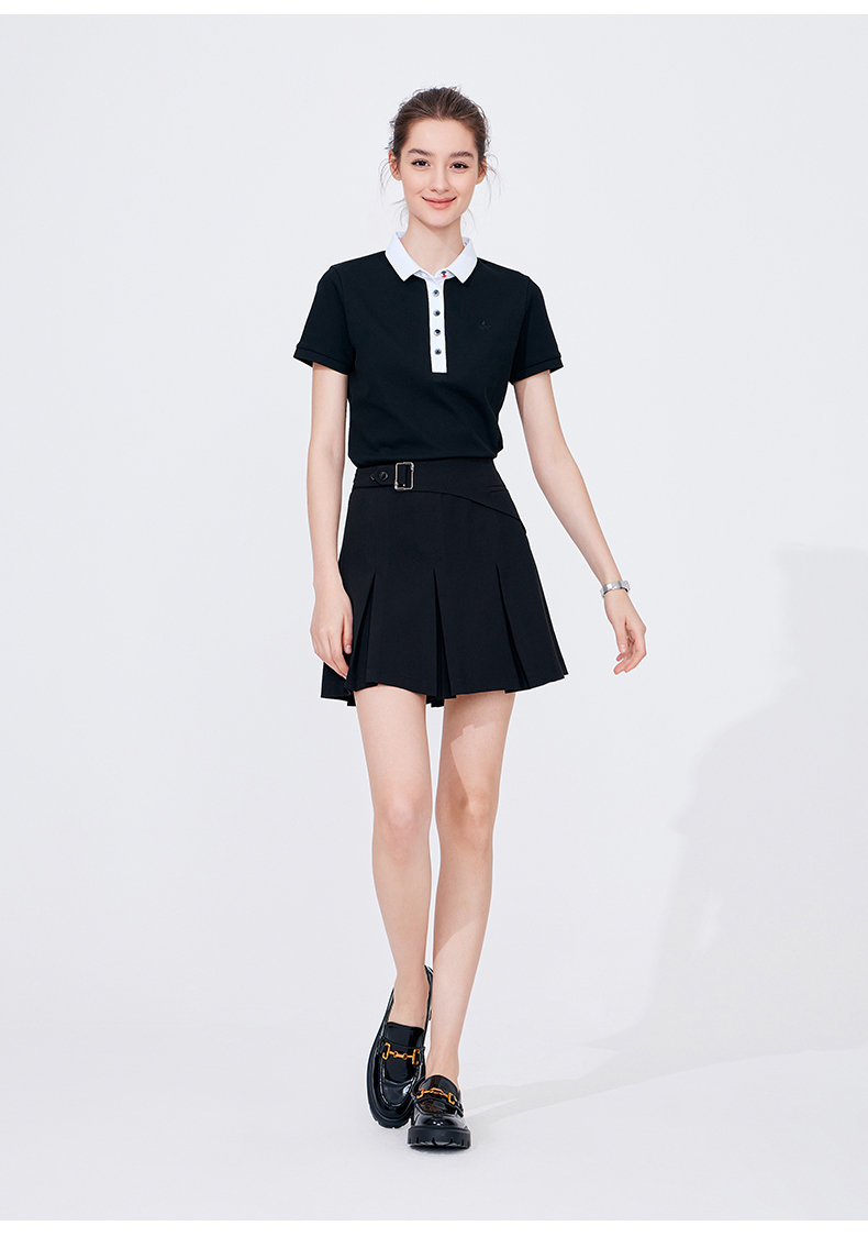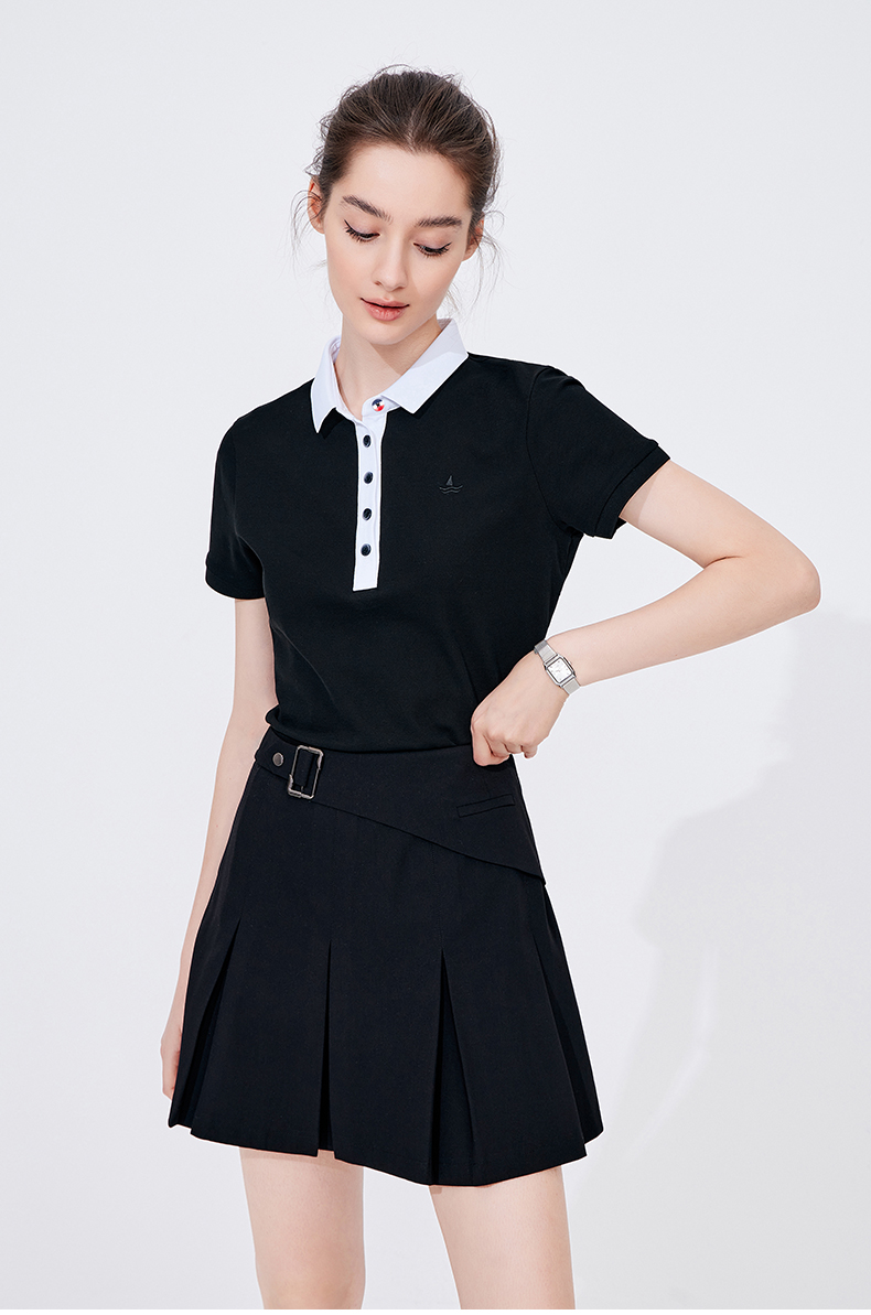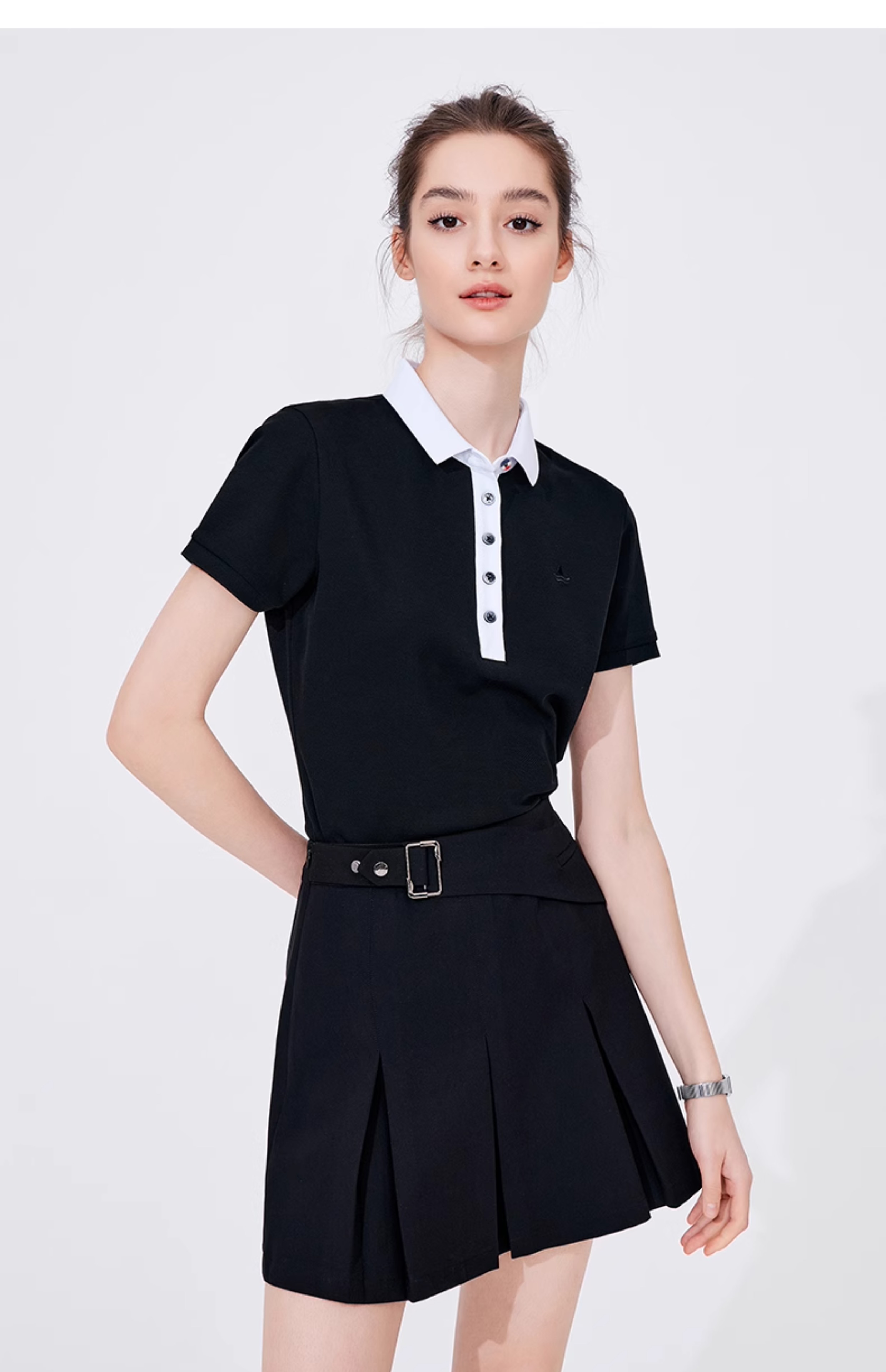 Navigare意大利小帆船修身女polo衫25夏季新款黑白撞色短袖T恤衫