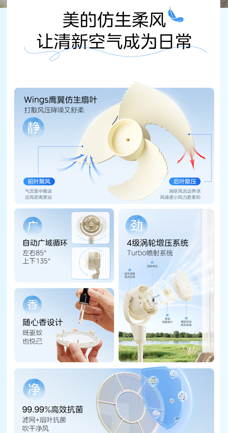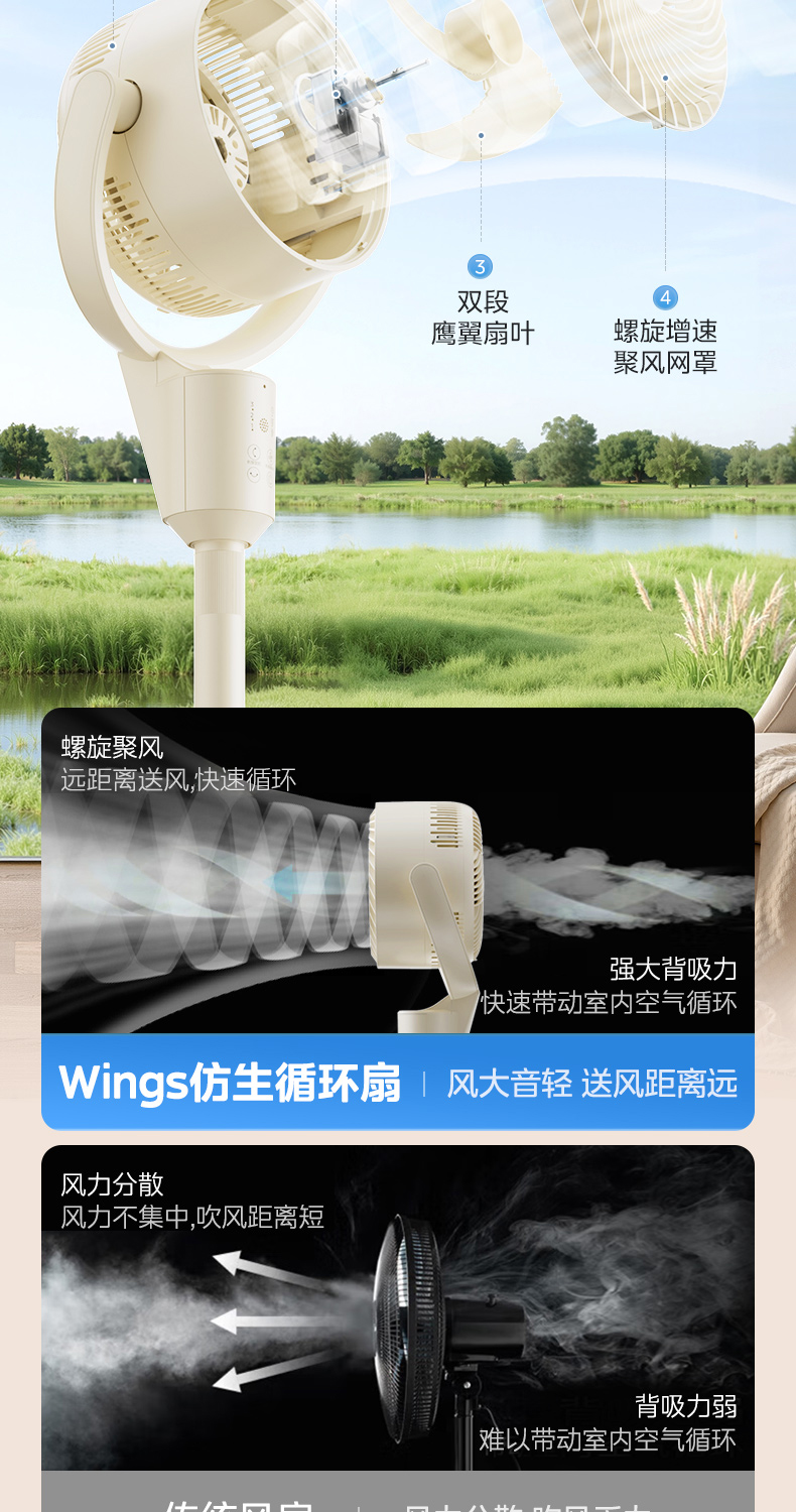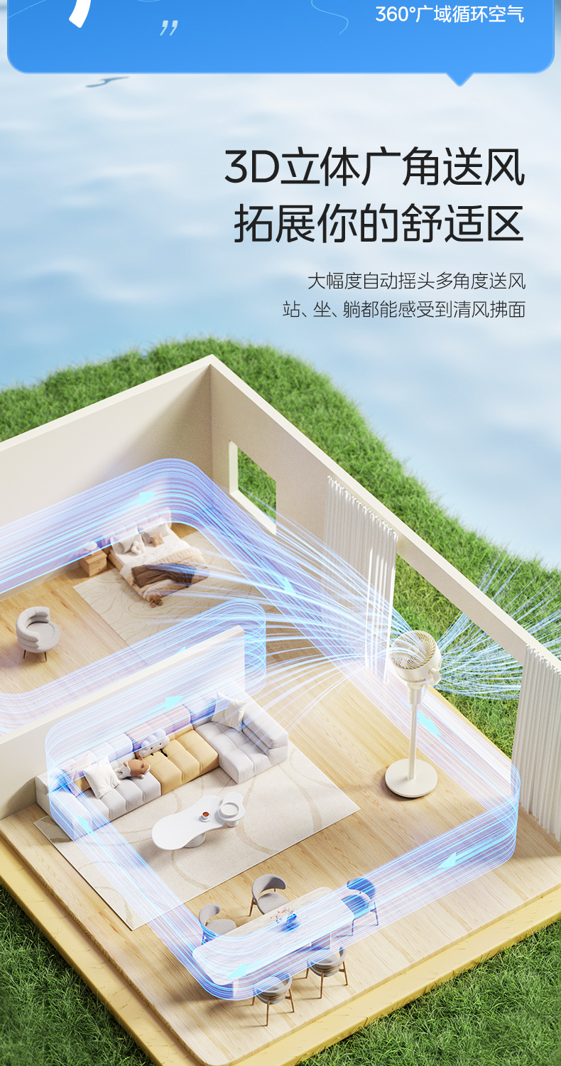 美的空气循环扇家用落地扇遥控台地强力节能音轻3D立体新款电风扇