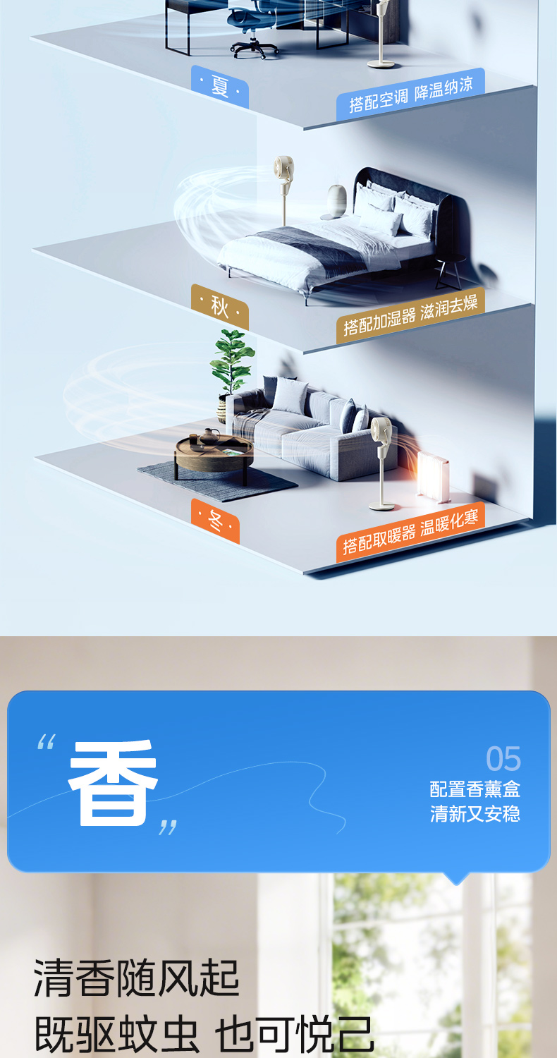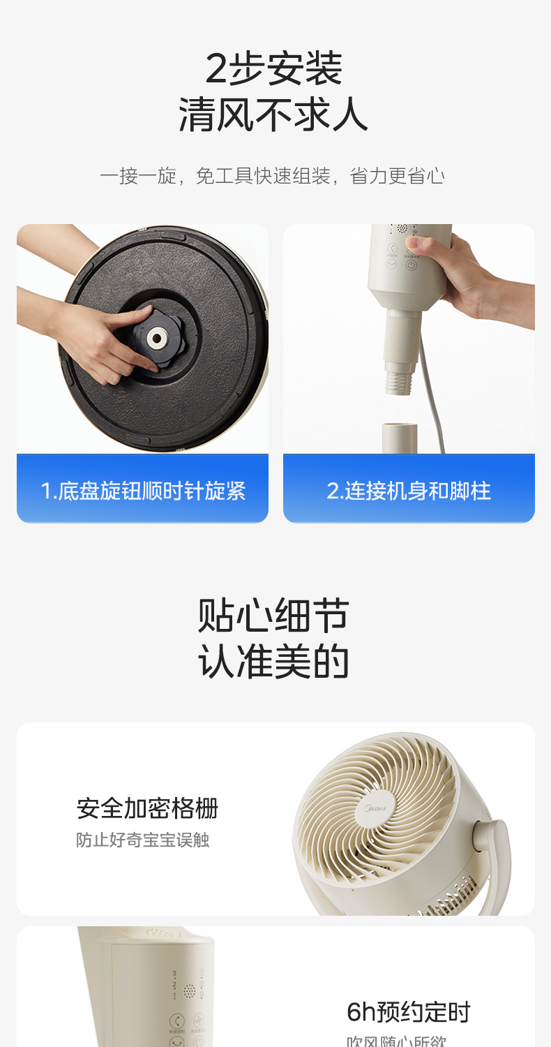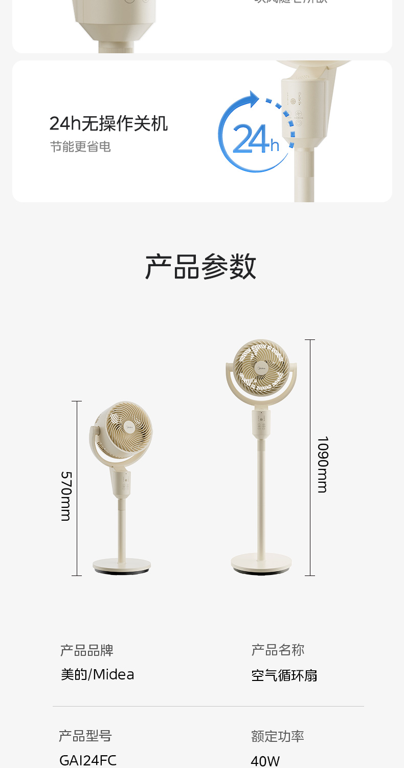 美的空气循环扇家用落地扇遥控台地强力节能音轻3D立体新款电风扇