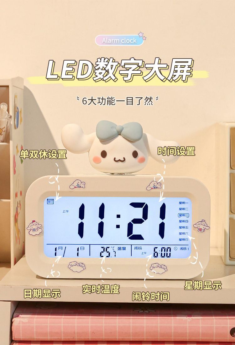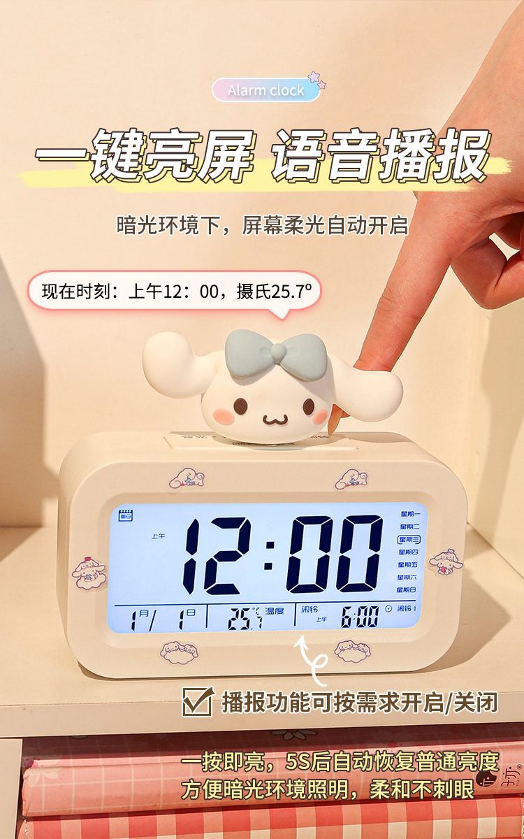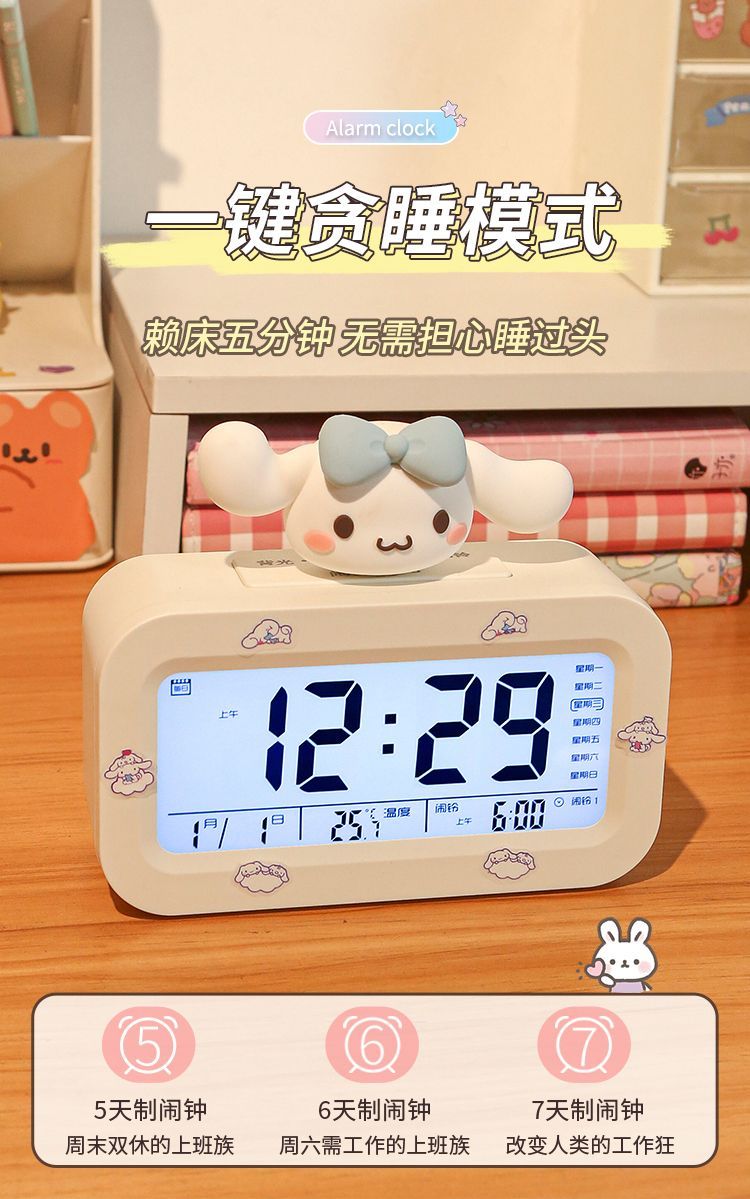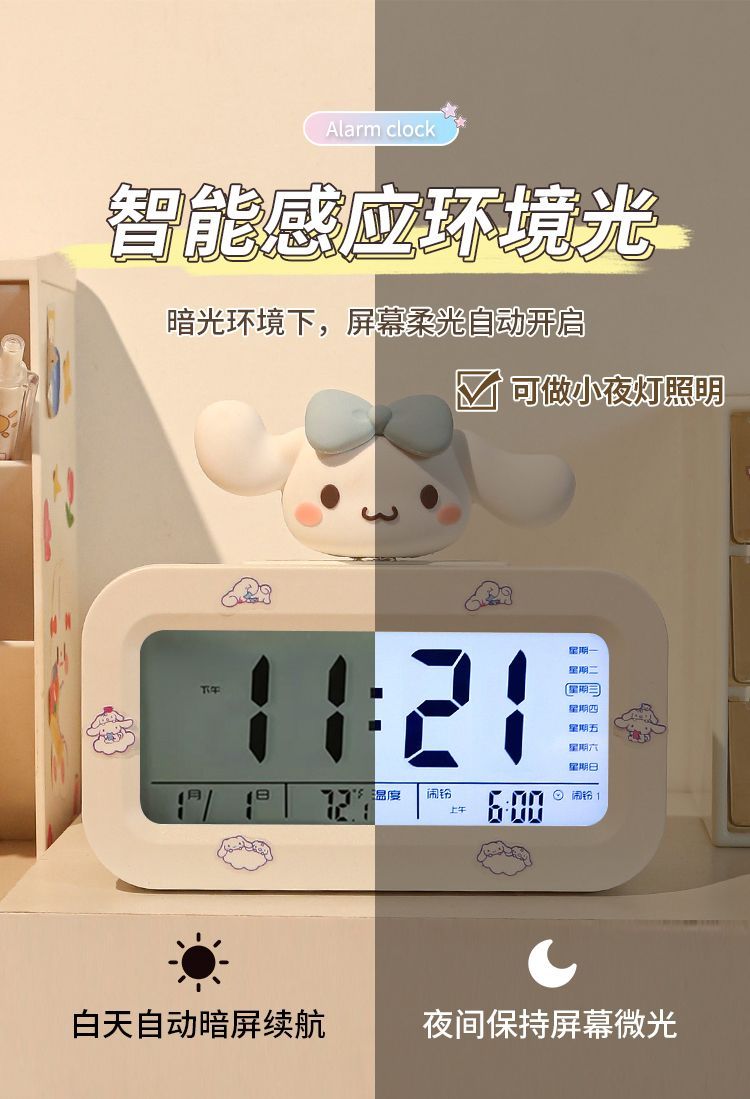 新款三丽鸥桌面闹钟儿童男孩小学生专用起床神器女孩摆台式时钟表