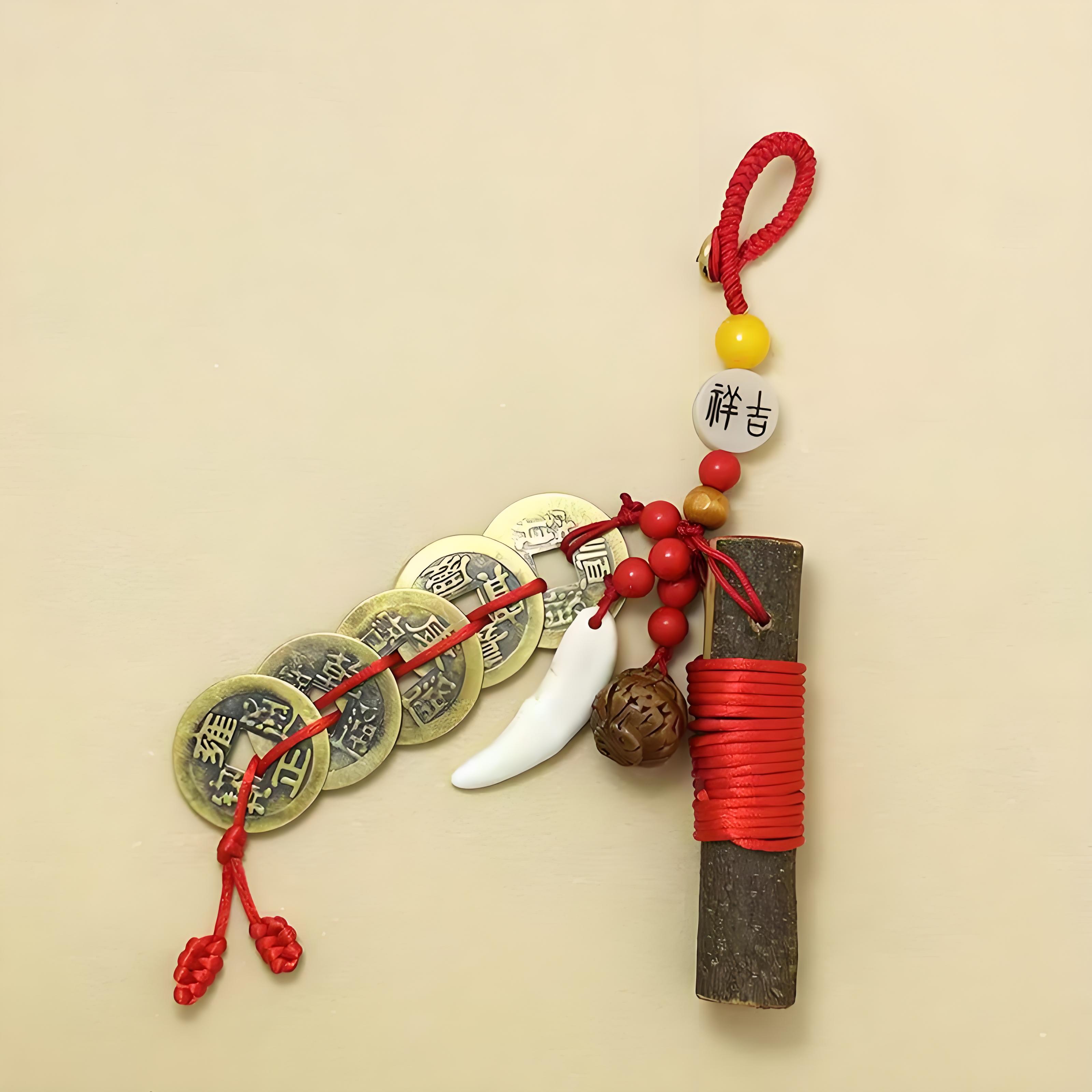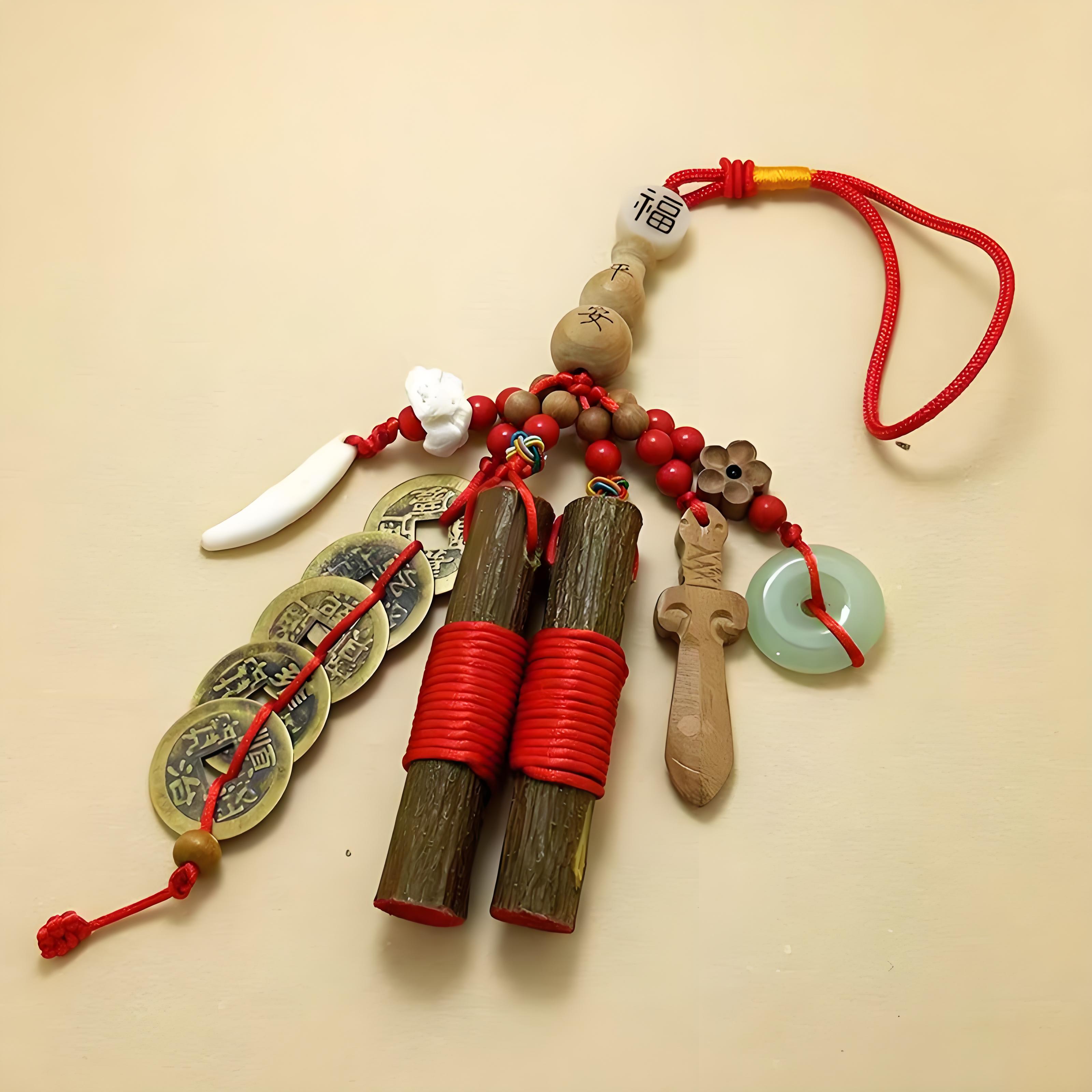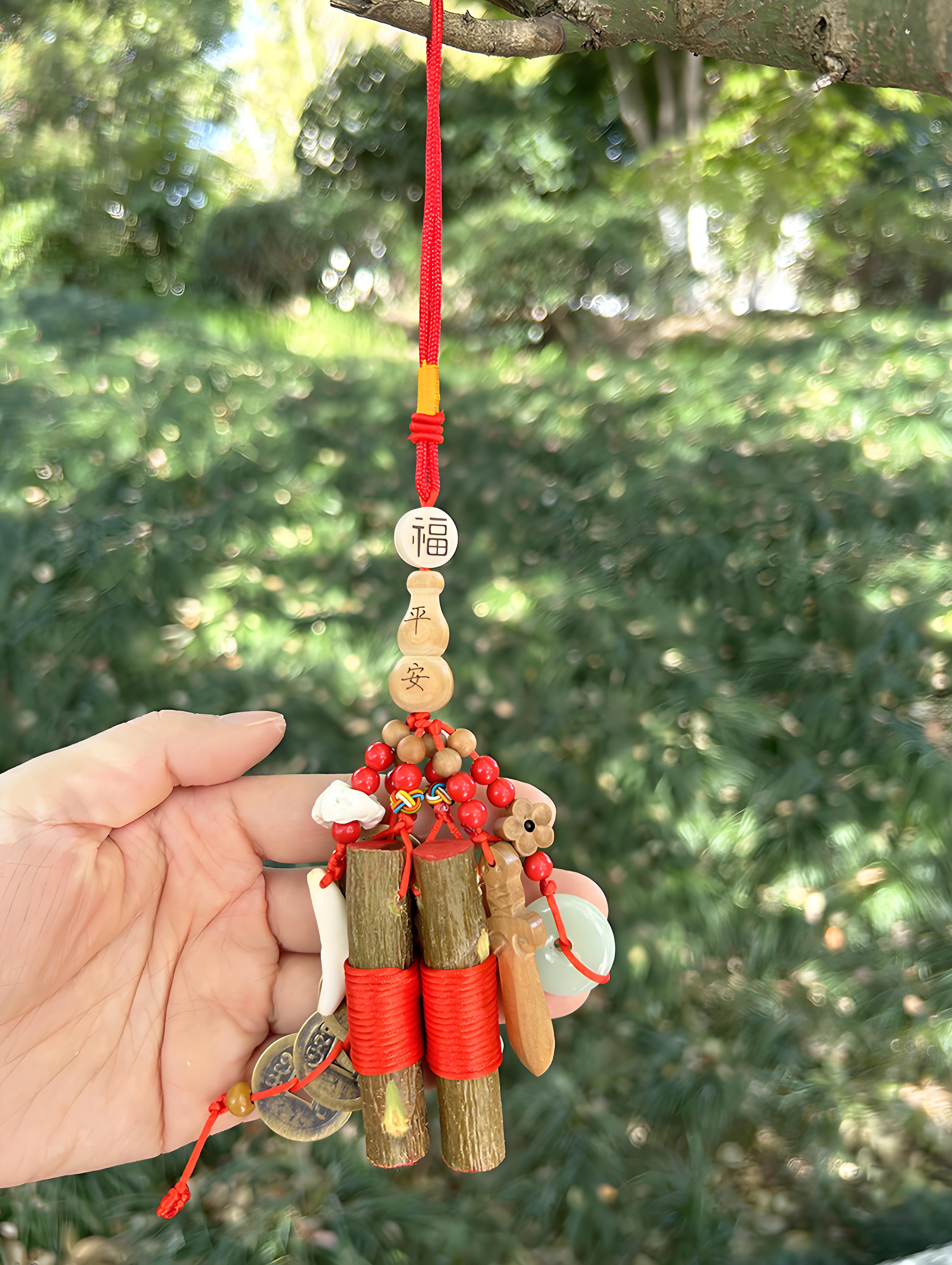 九华山直发宝宝婴幼儿孕妇出行推车天然桃木剑惊吓五帝钱桃木挂件