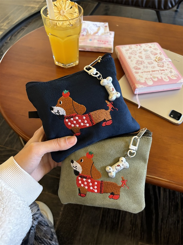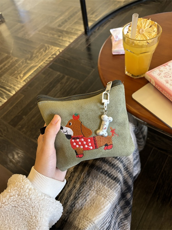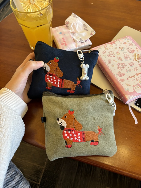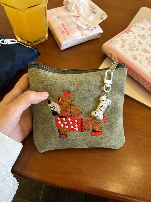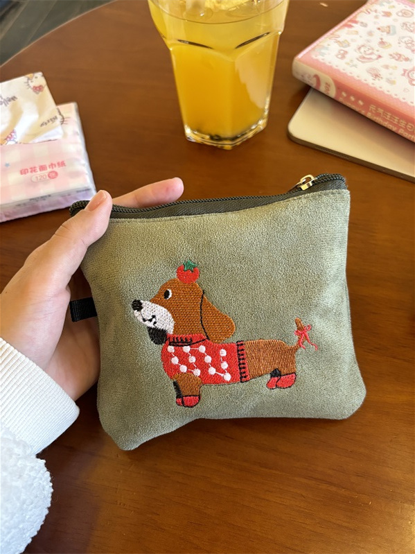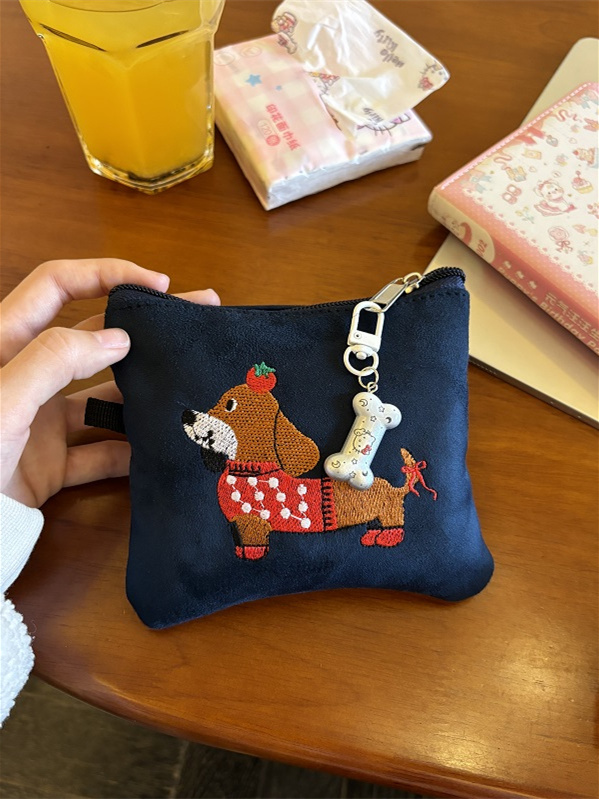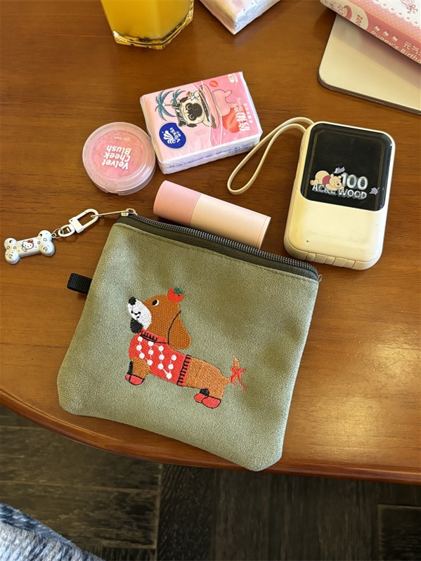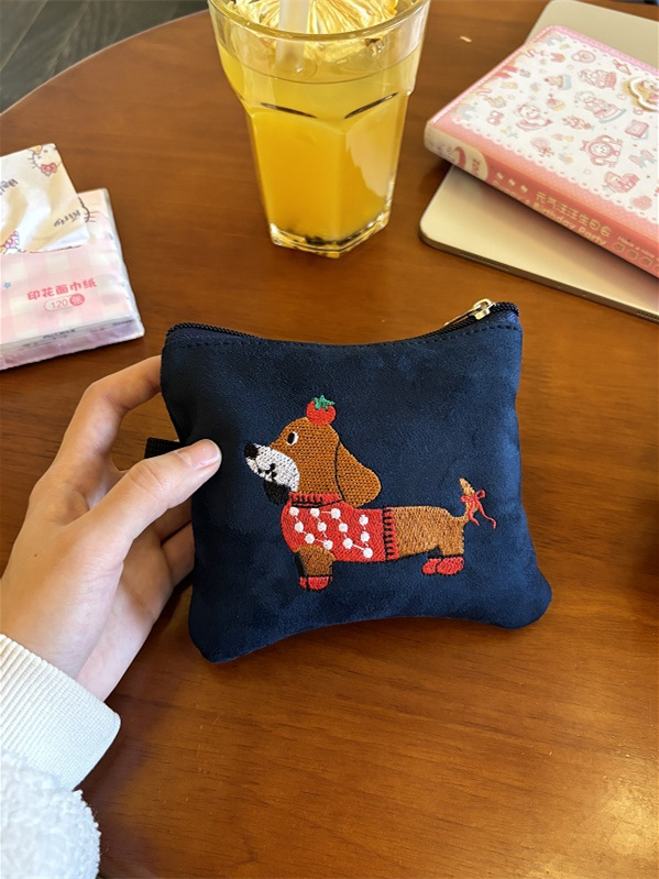 可爱麂皮绒腊肠狗卡包收纳包外出便携随身包耳机口红姨妈巾收纳包