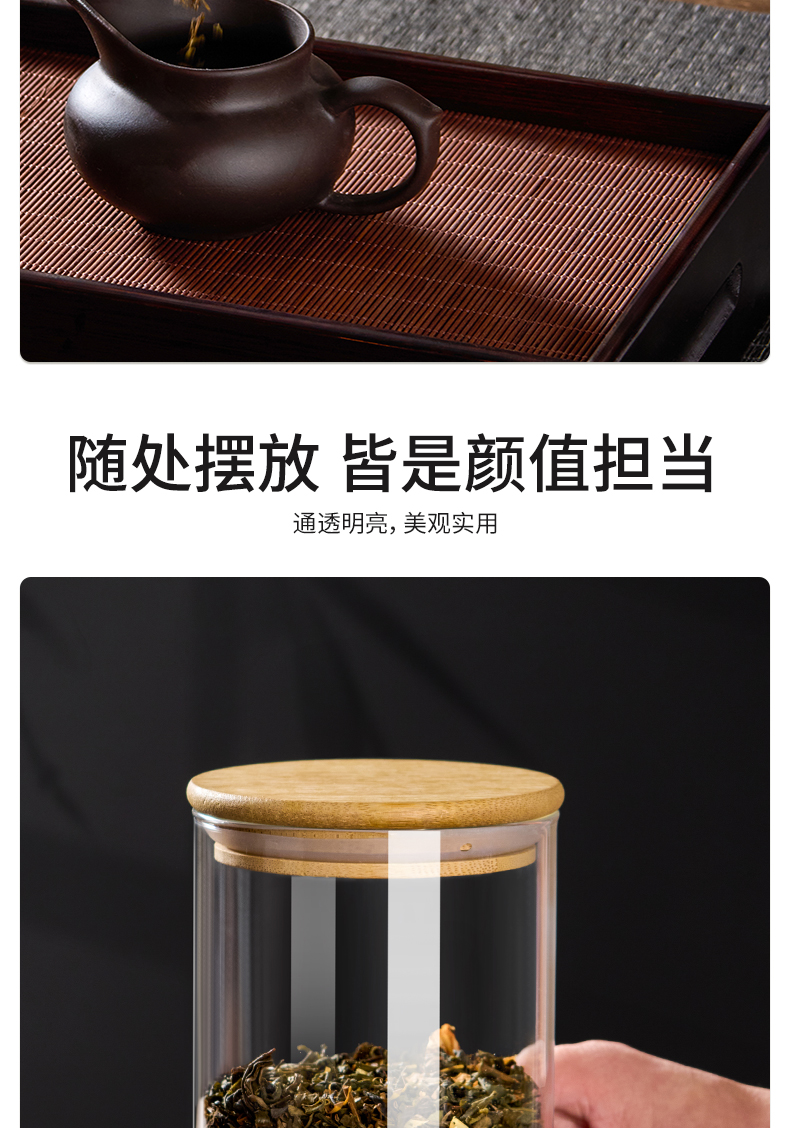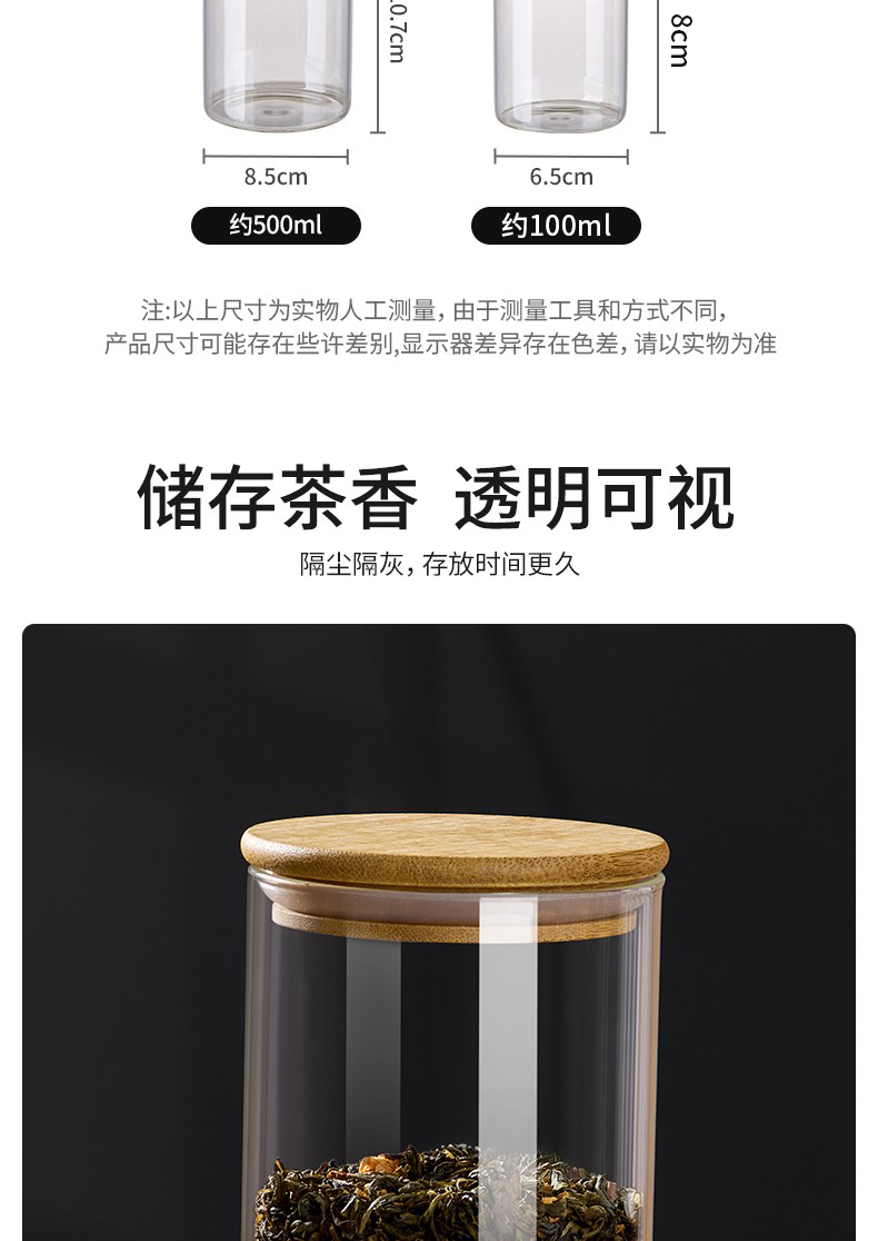 玻璃茶叶罐密封罐透明小瓶子小号储物罐花茶罐红茶收纳储存罐茶罐