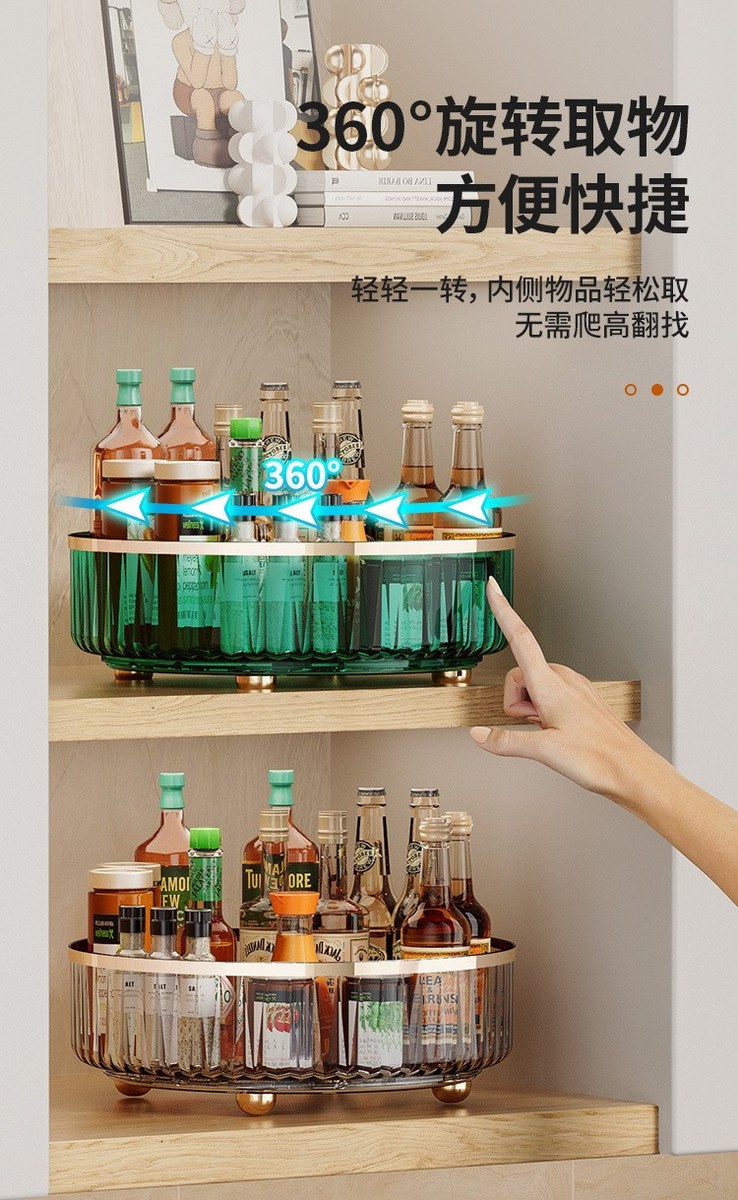 轻奢旋转 置物架 厨房转盘透明佐料调味瓶调料架客厅桌面储物收纳