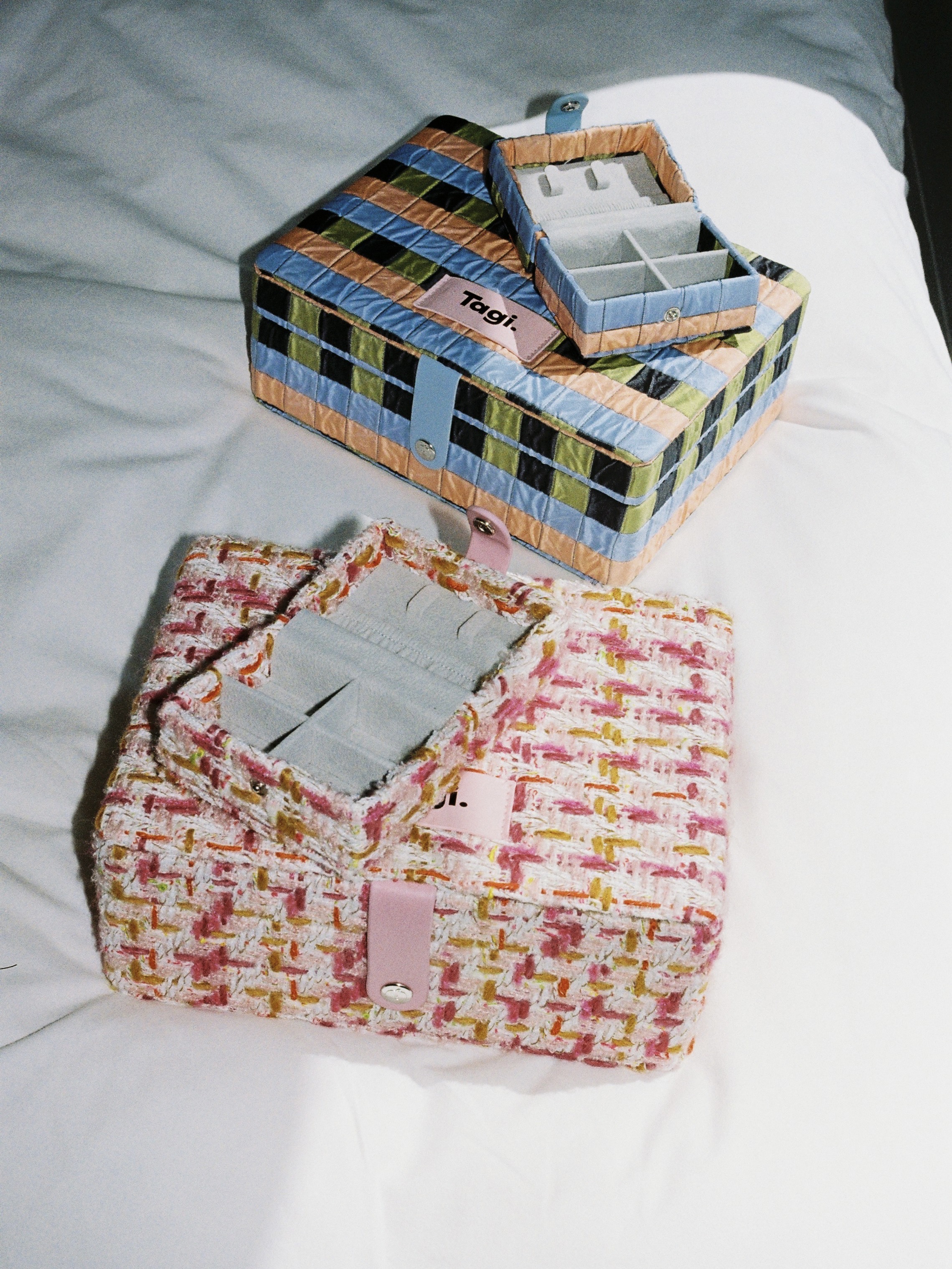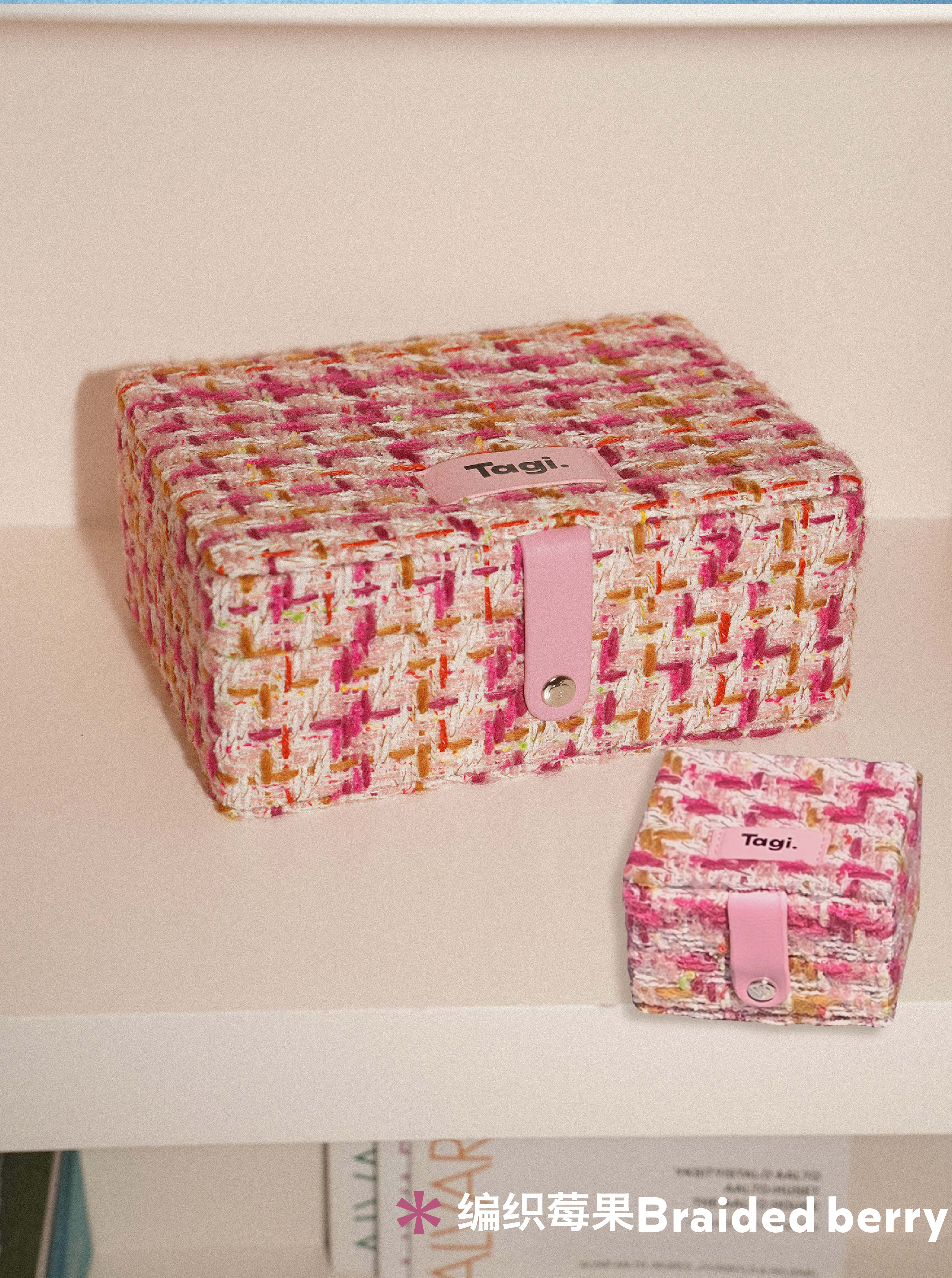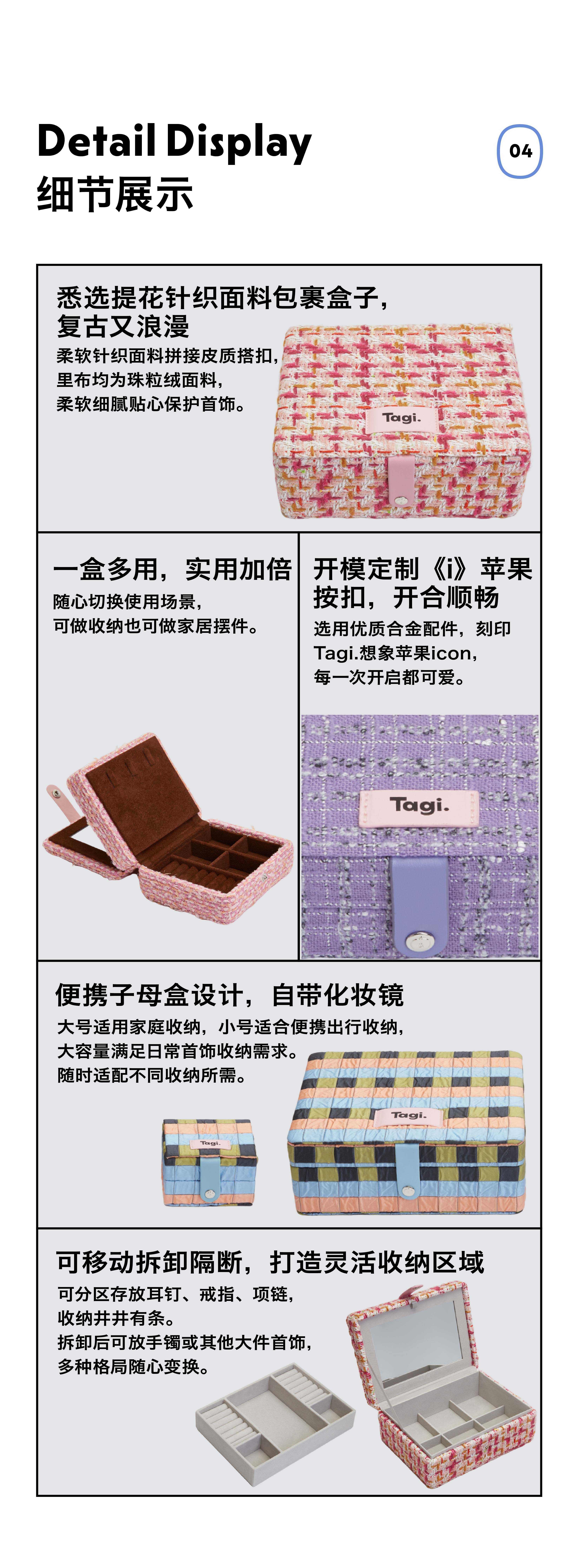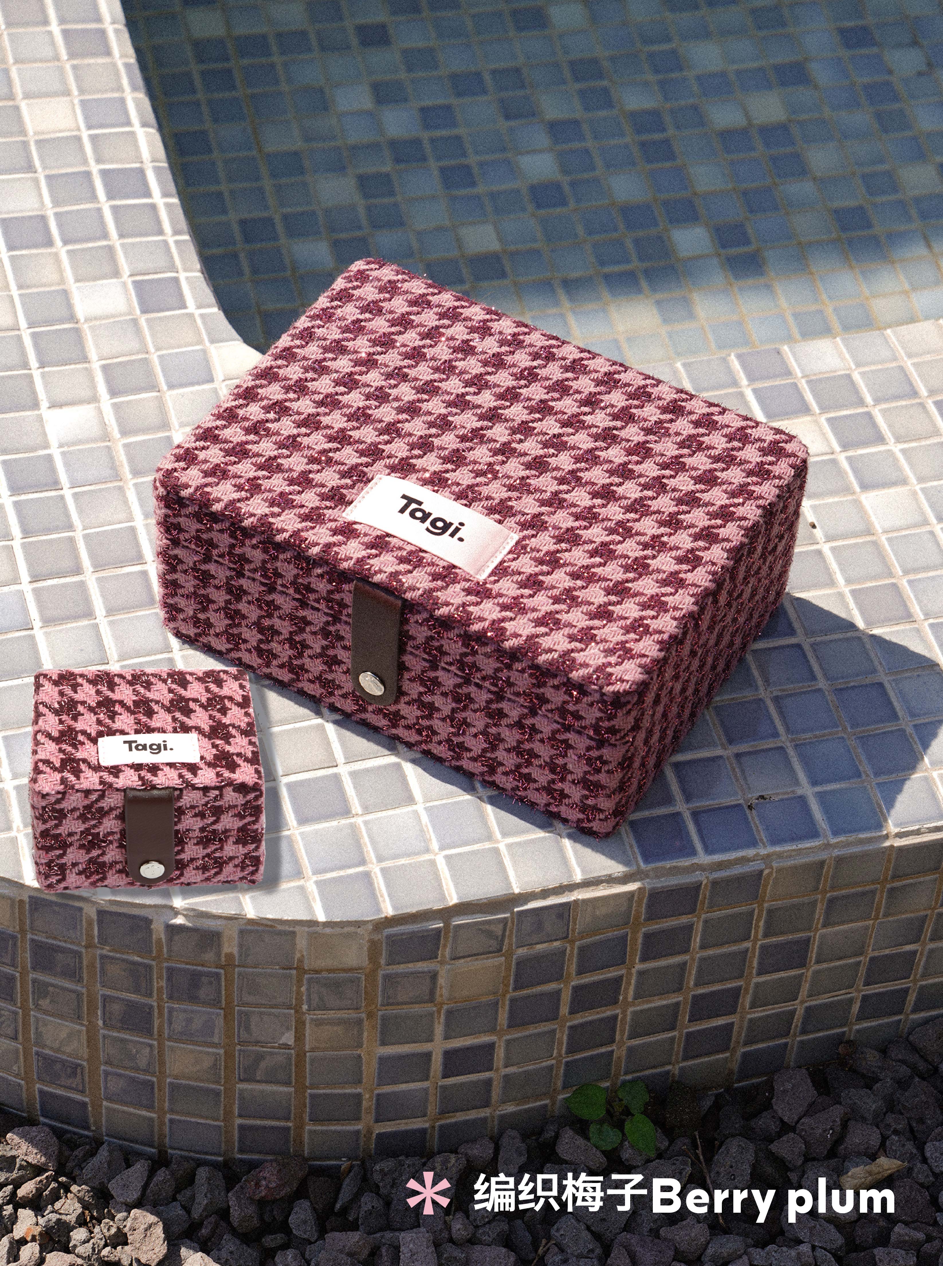 Tagi.首饰枕头提花首饰盒大容量复古便携mini双层子母收纳盒