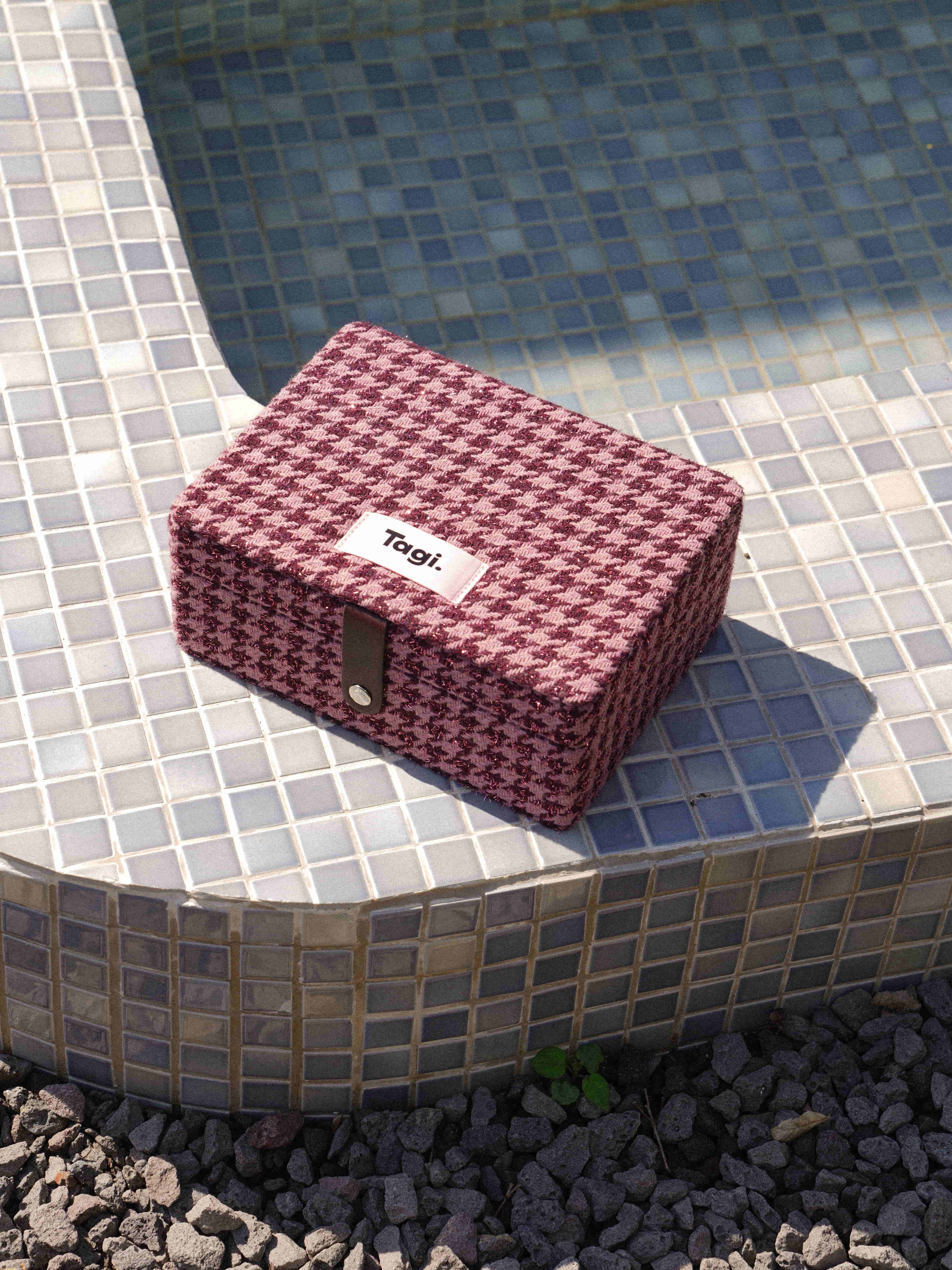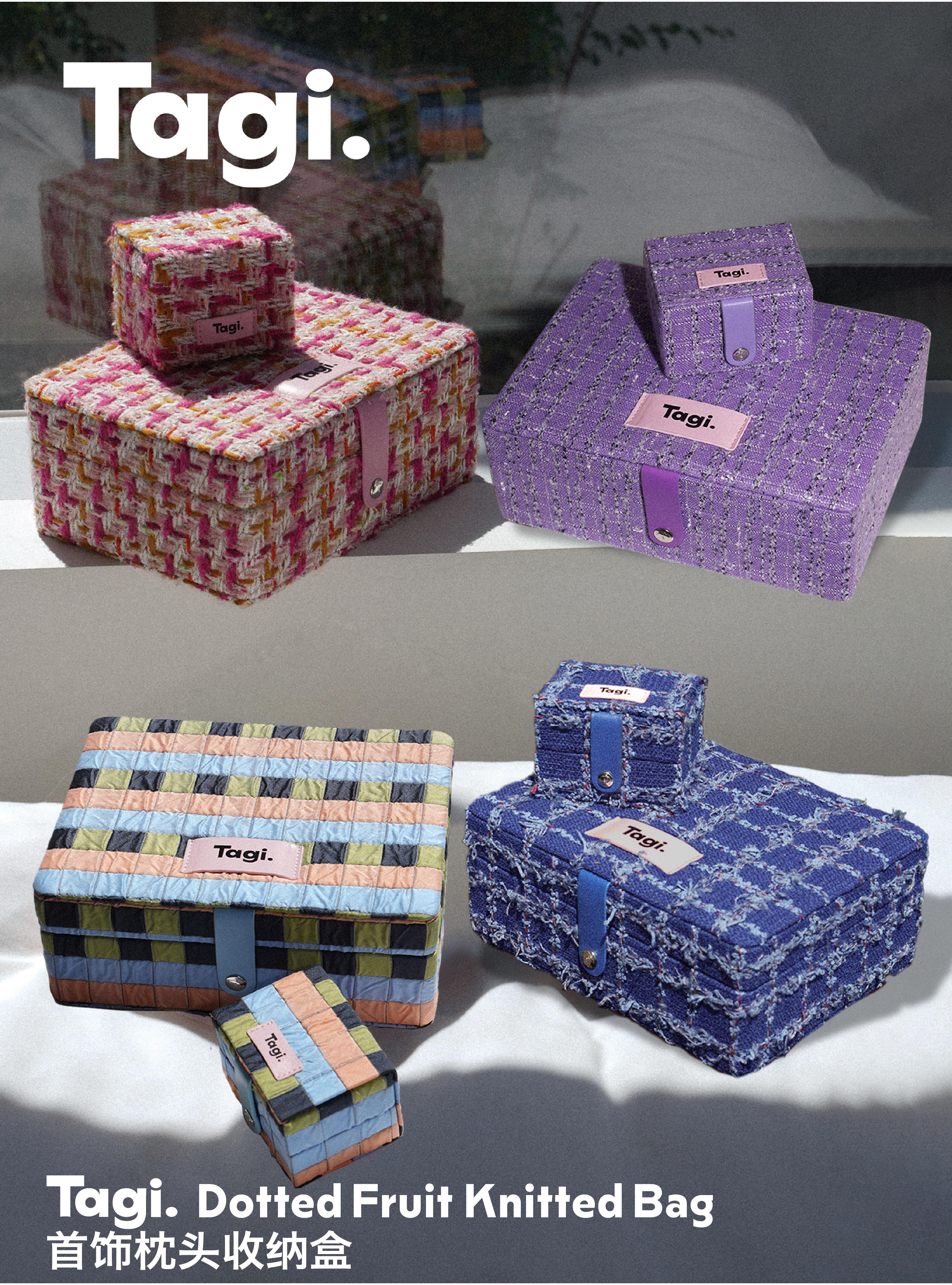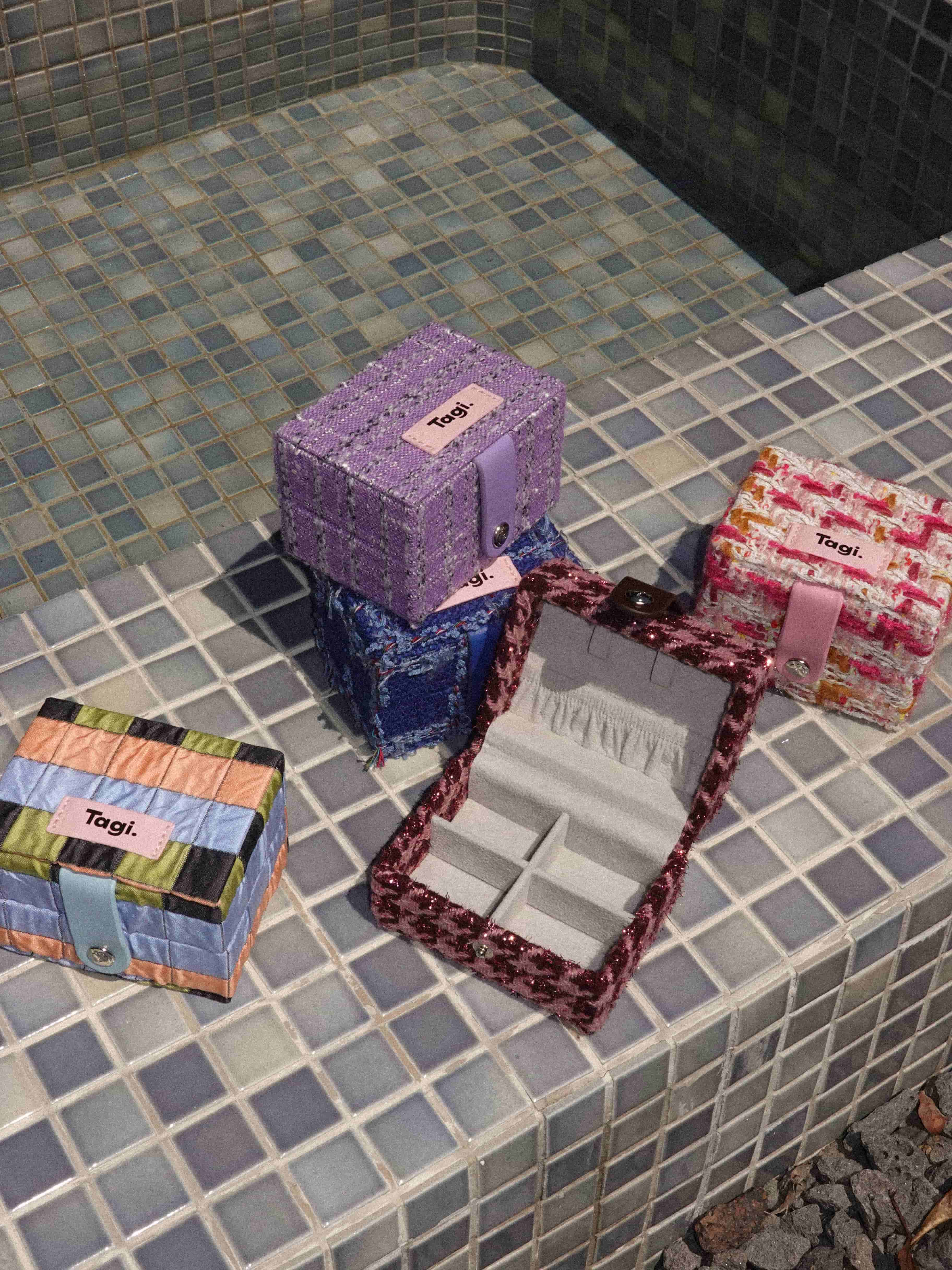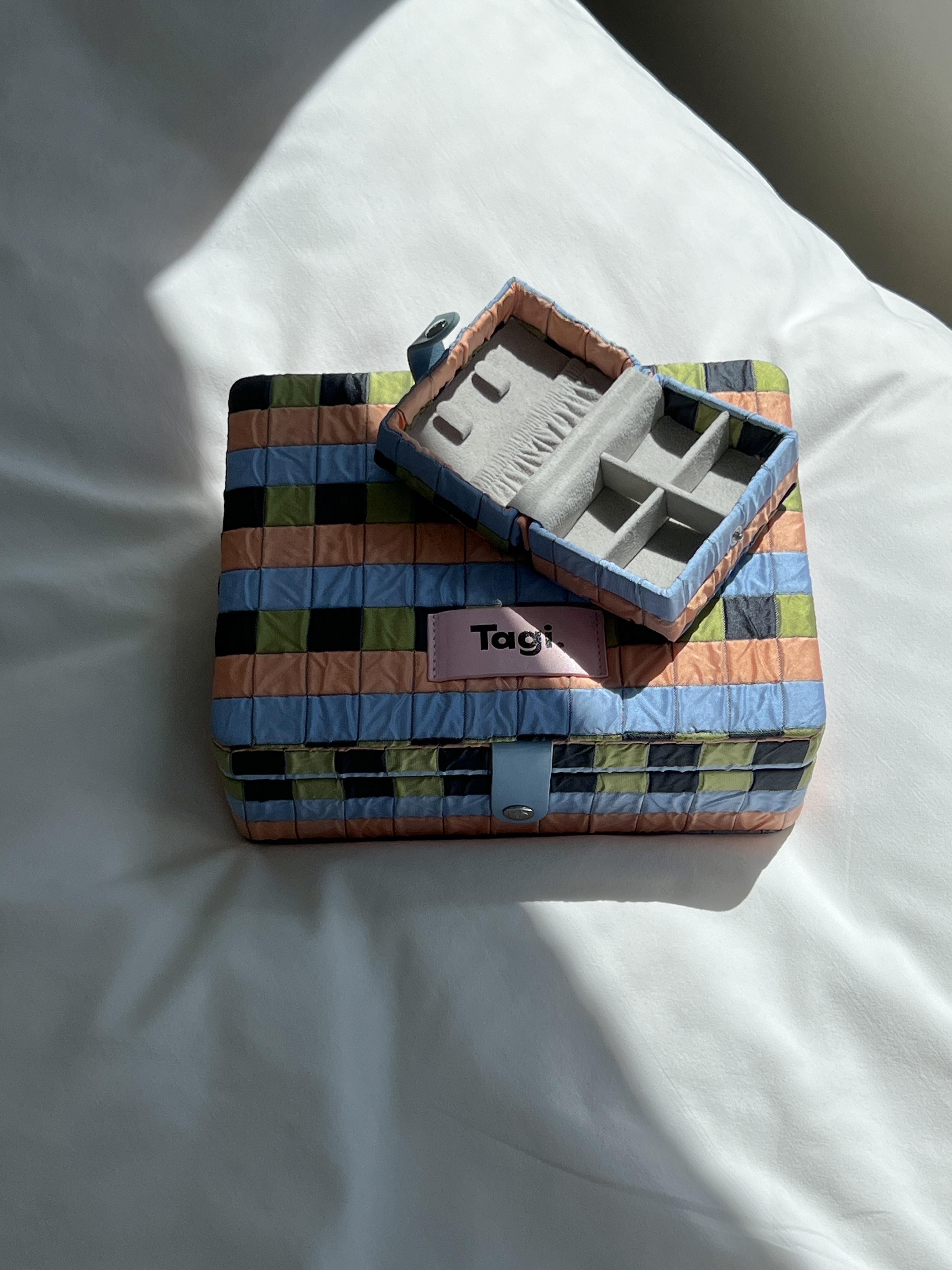 Tagi.首饰枕头提花首饰盒大容量复古便携mini双层子母收纳盒