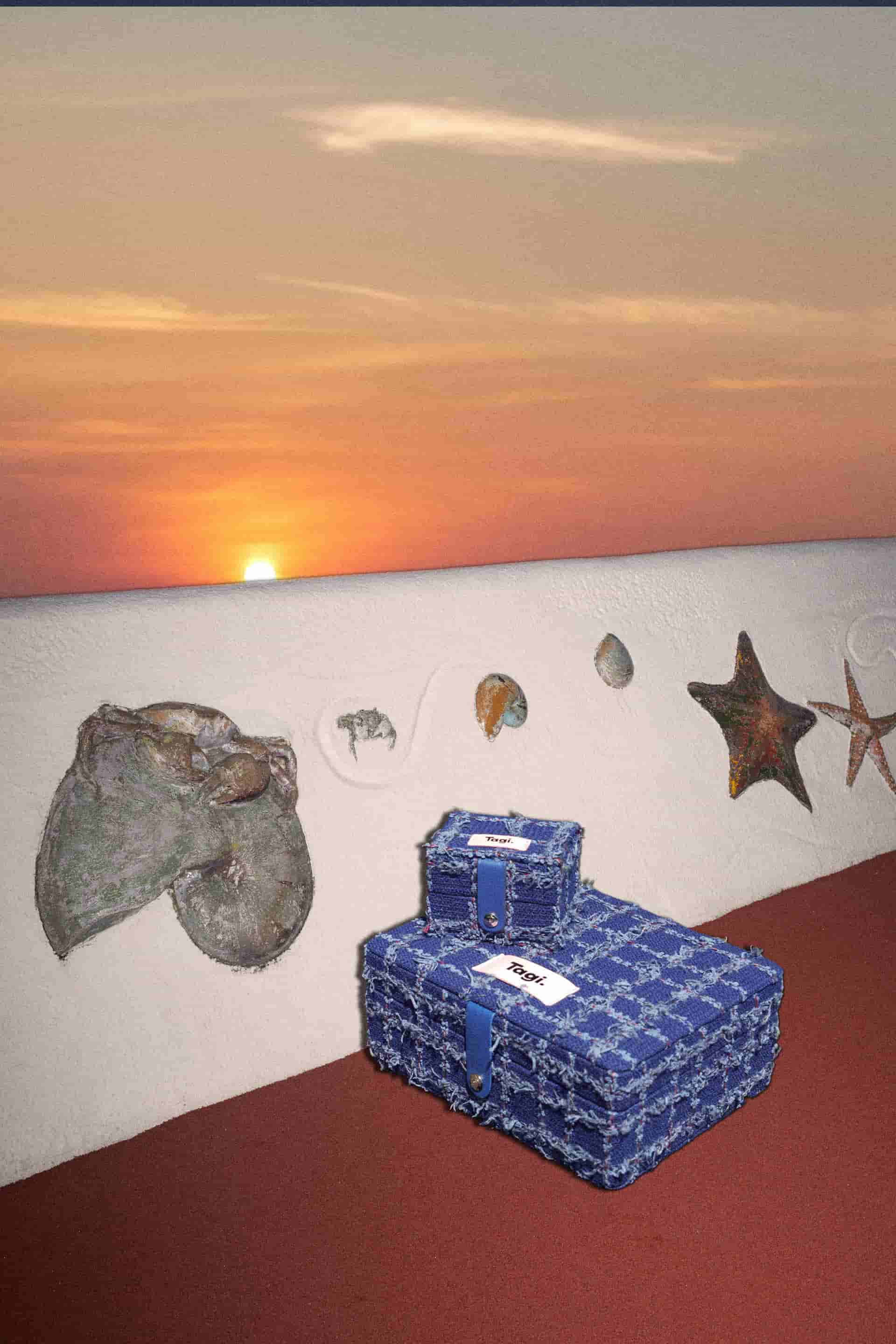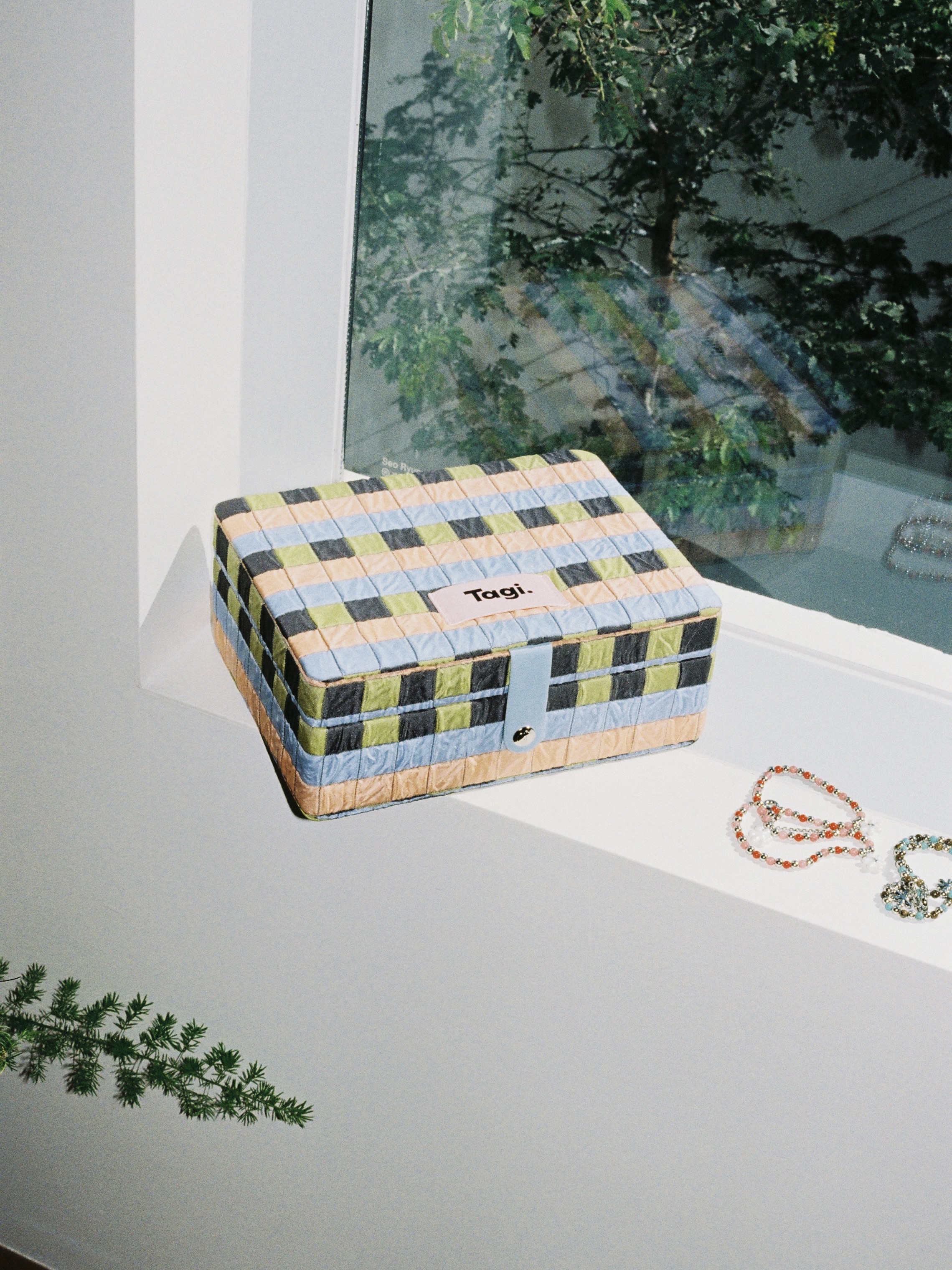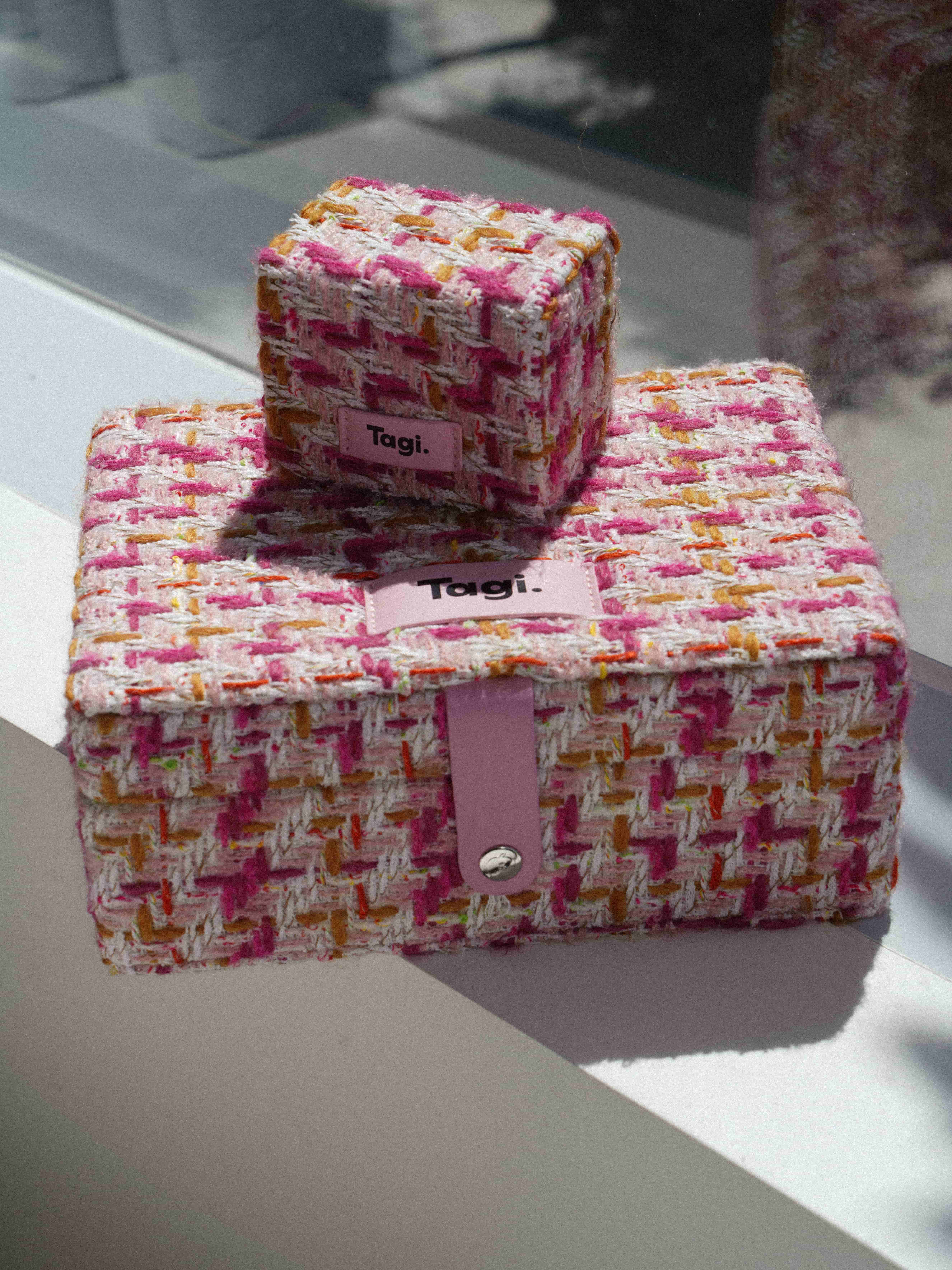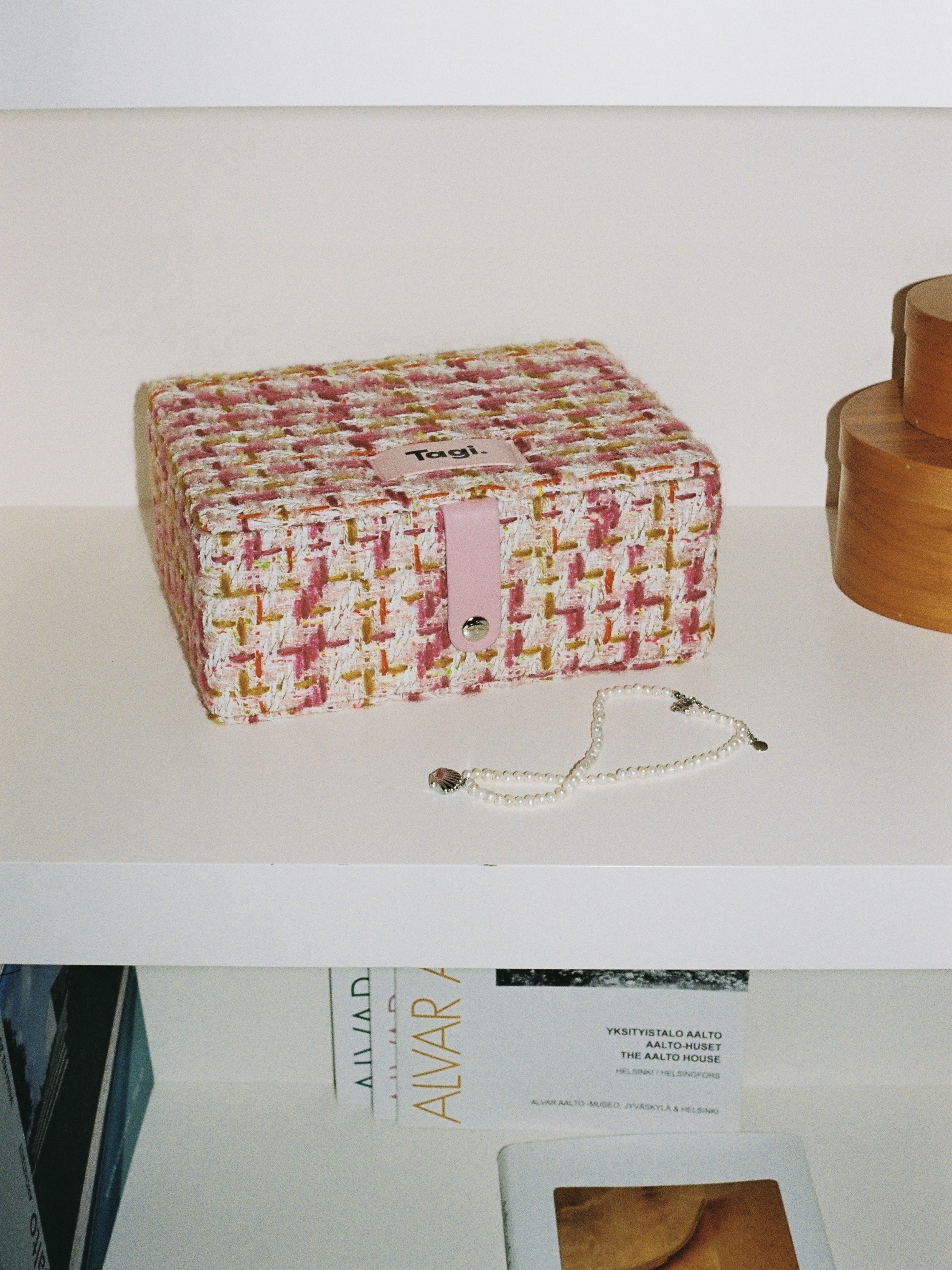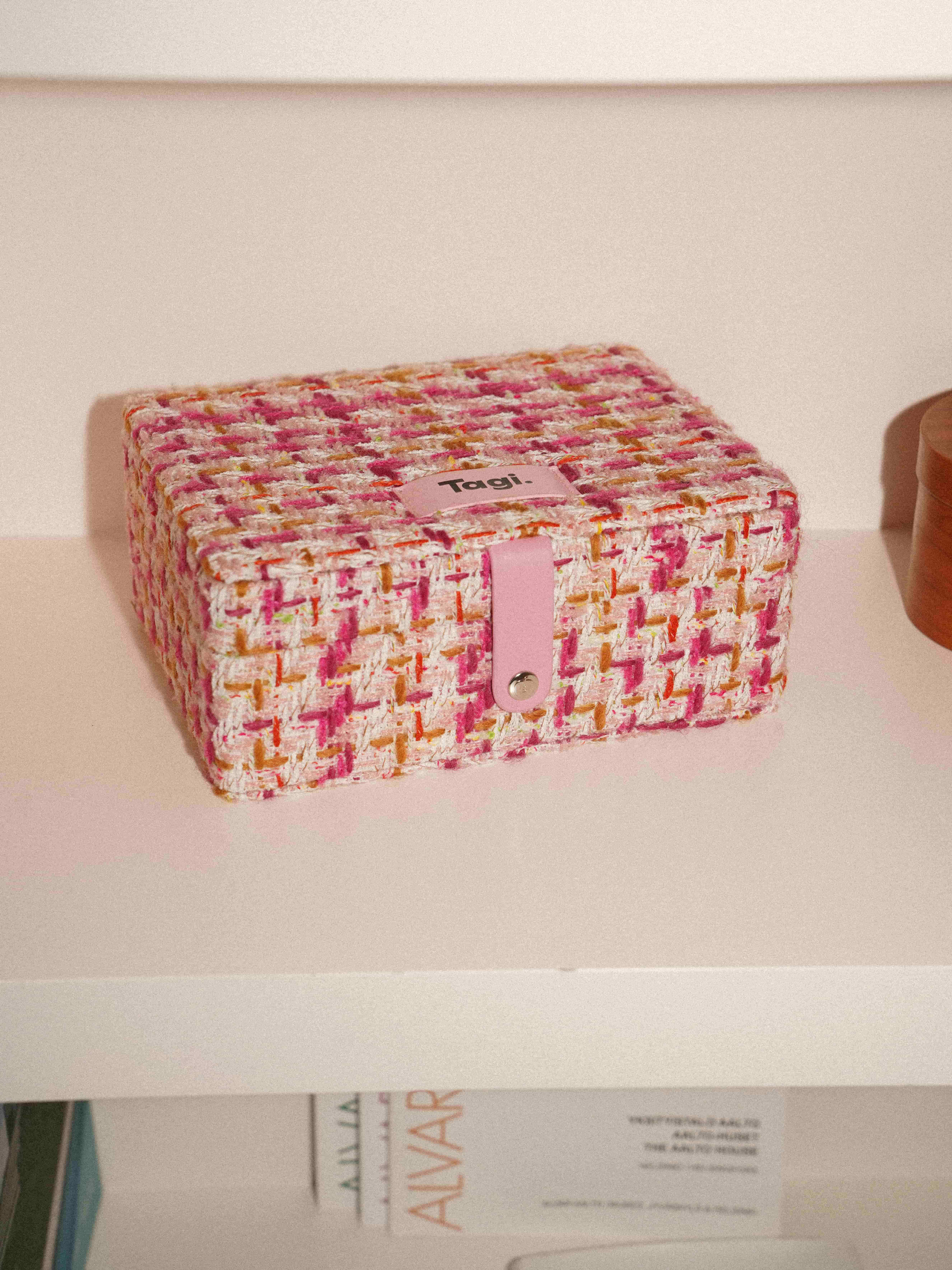 Tagi.首饰枕头提花首饰盒大容量复古便携mini双层子母收纳盒