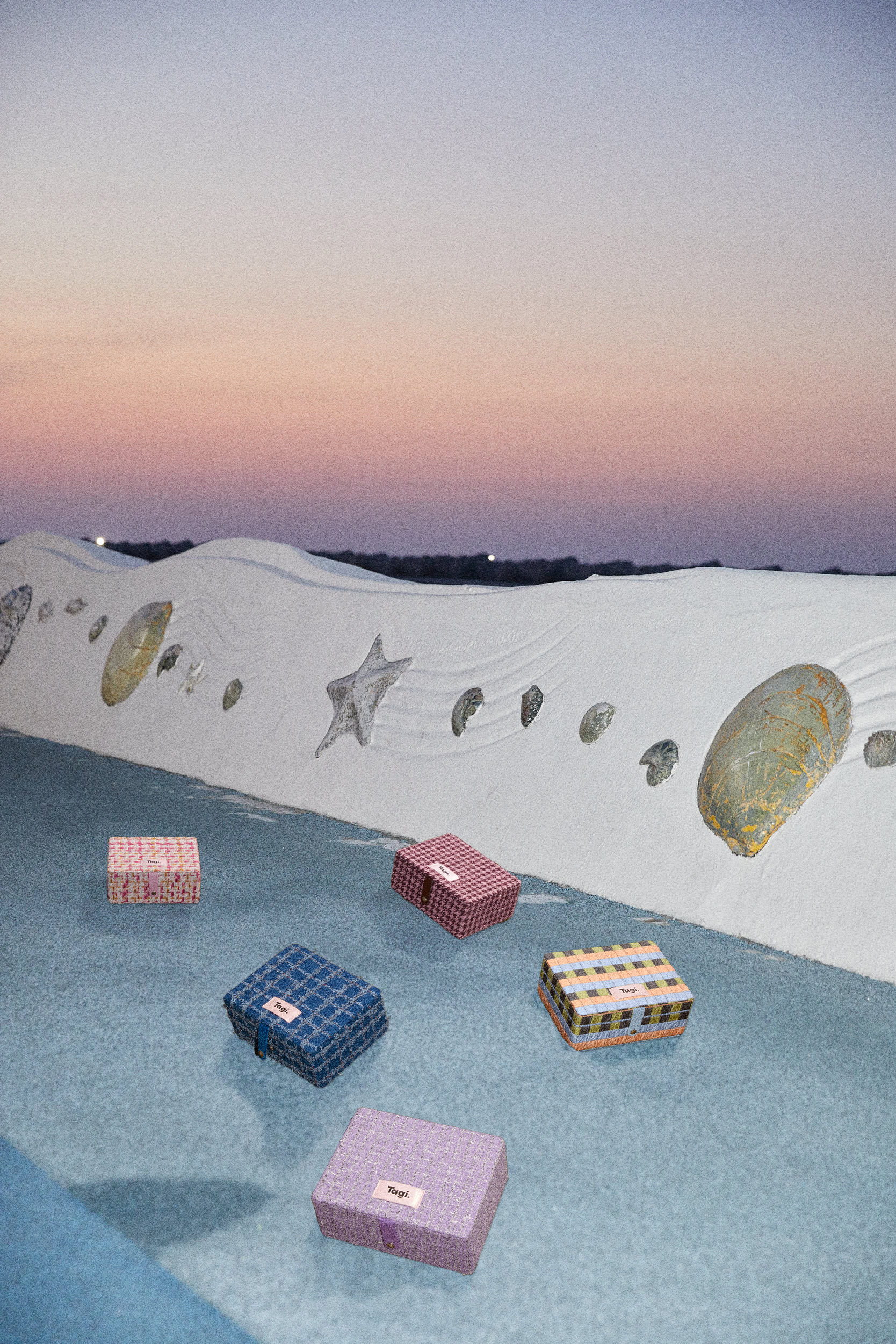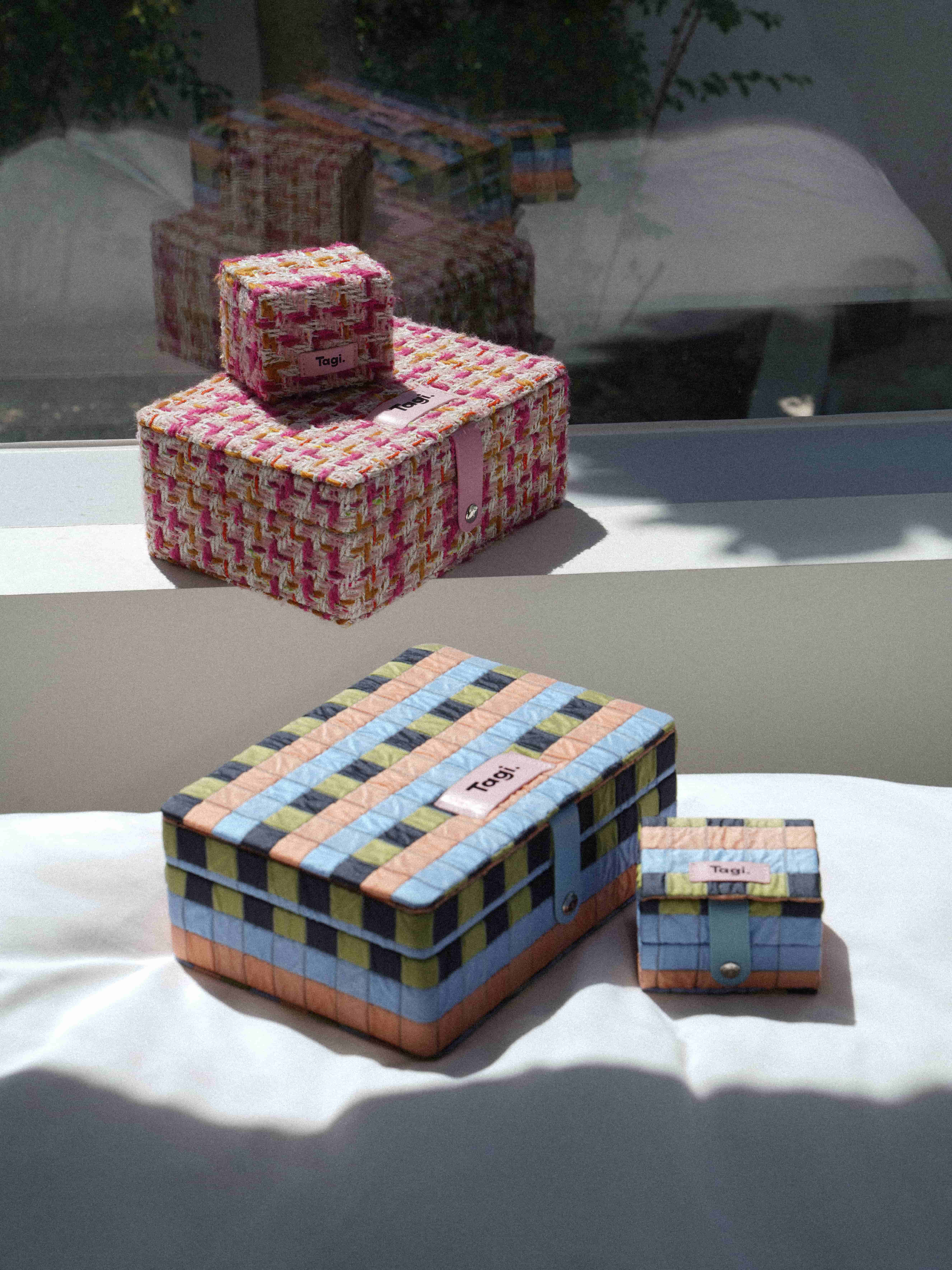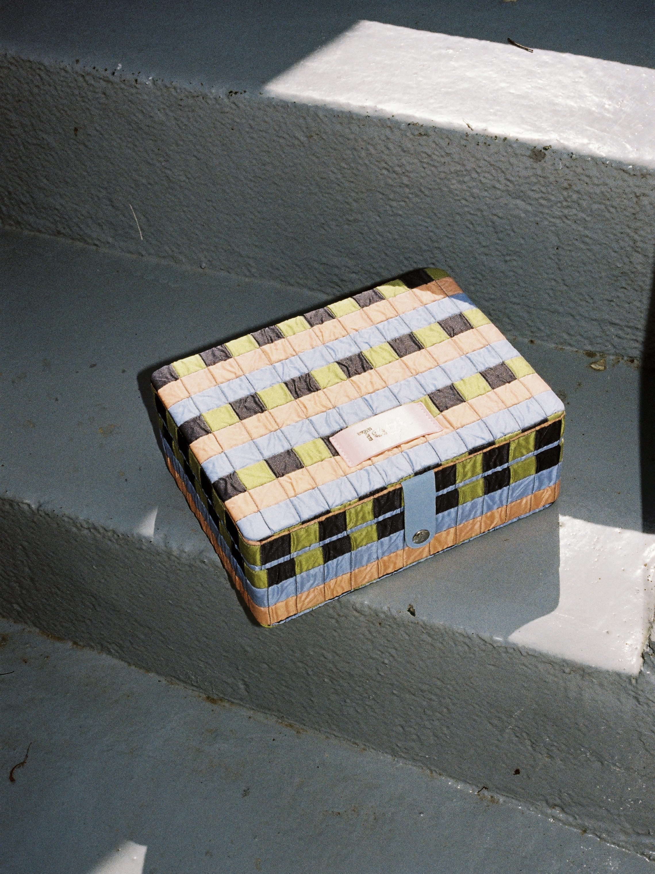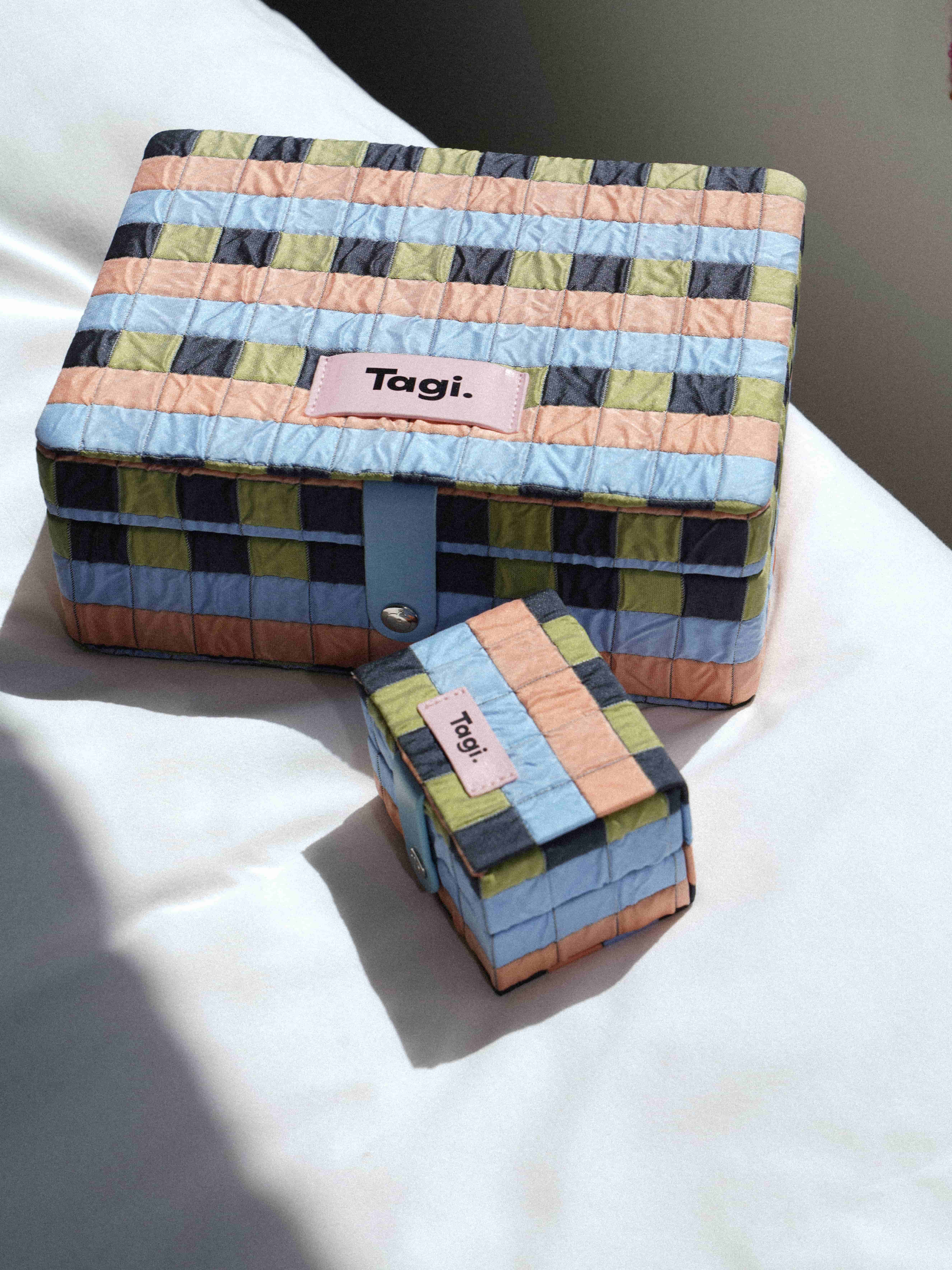 Tagi.首饰枕头提花首饰盒大容量复古便携mini双层子母收纳盒