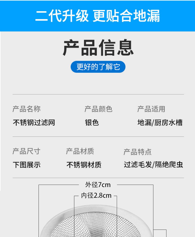 地漏不锈钢过滤网厕所卫生间浴室头发垃圾下水道水槽防虫防堵盖塞