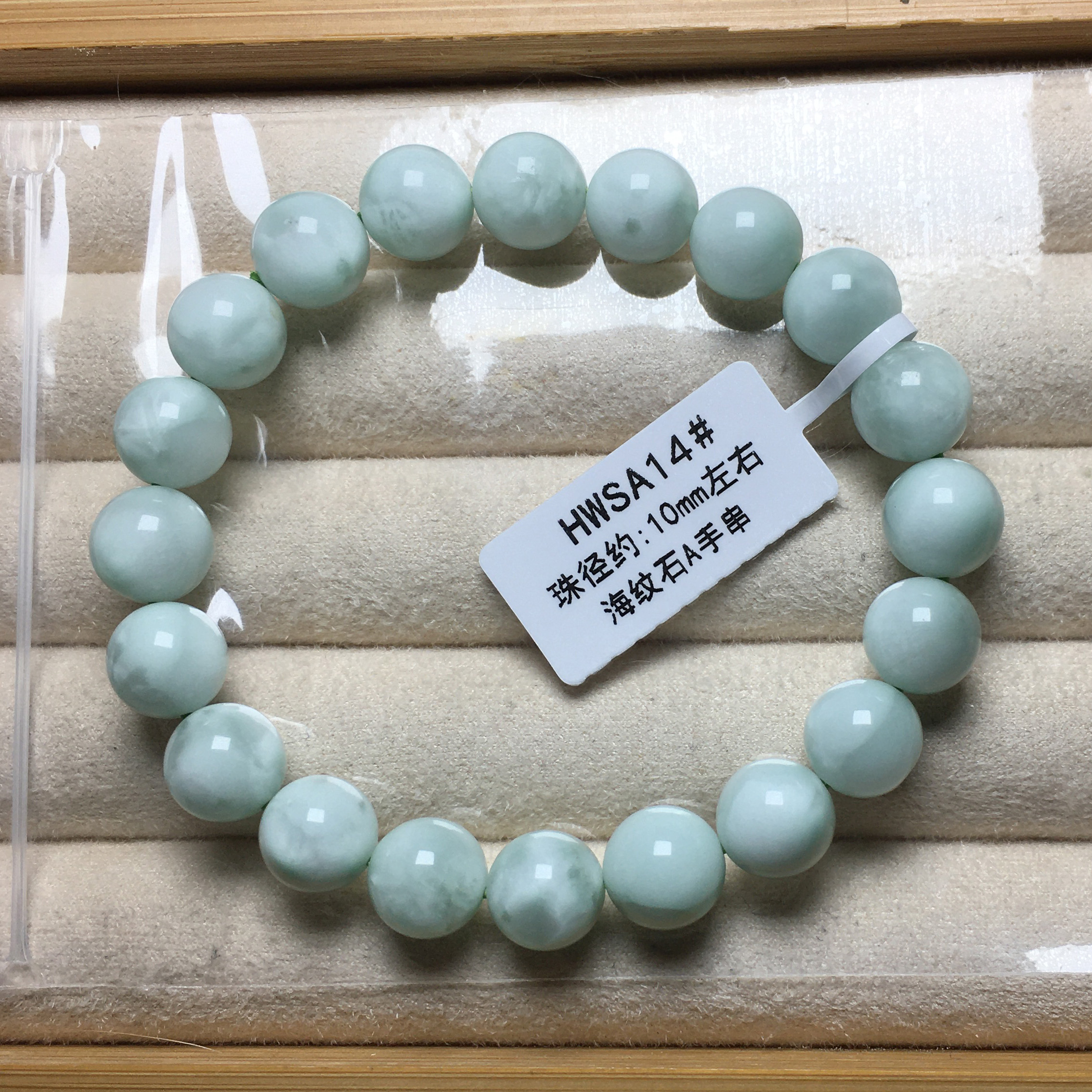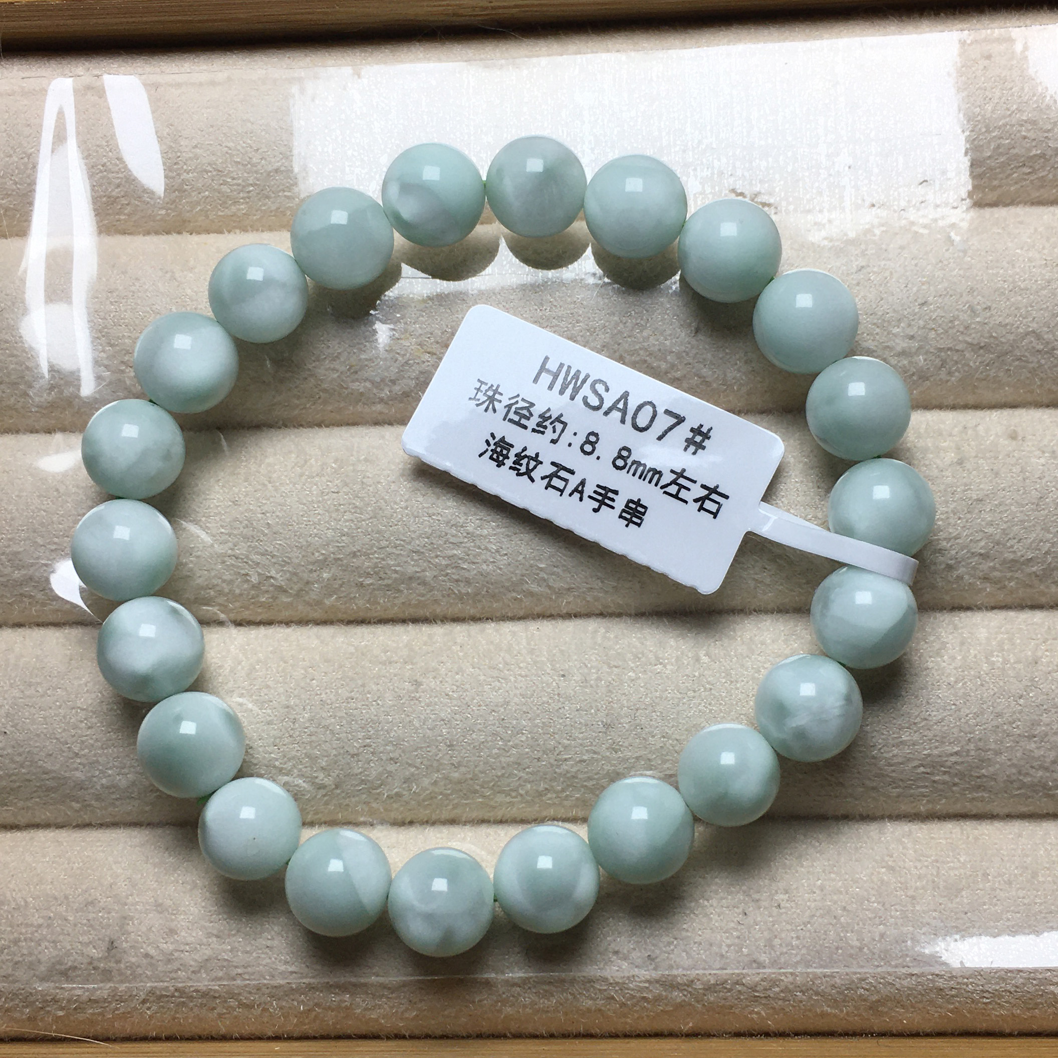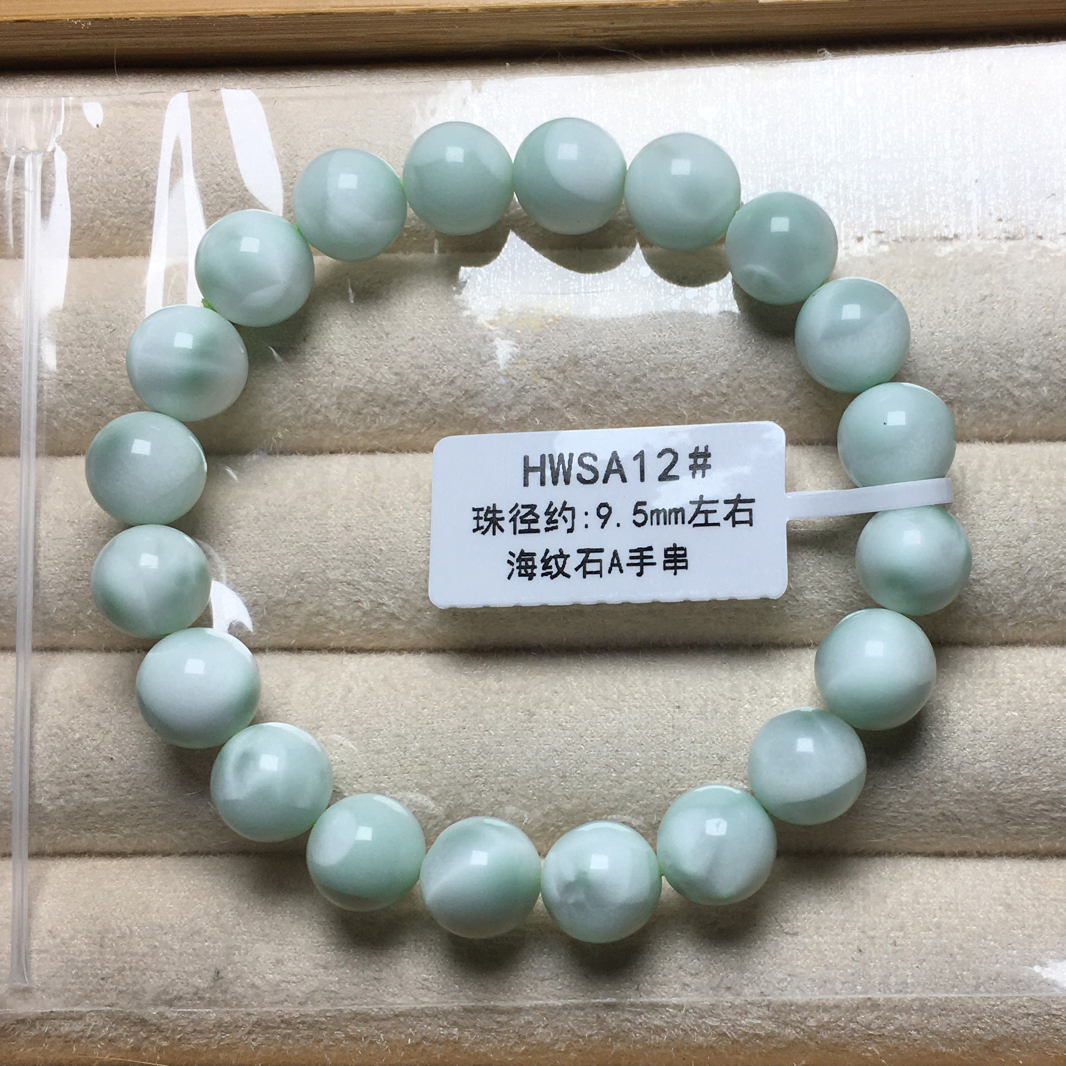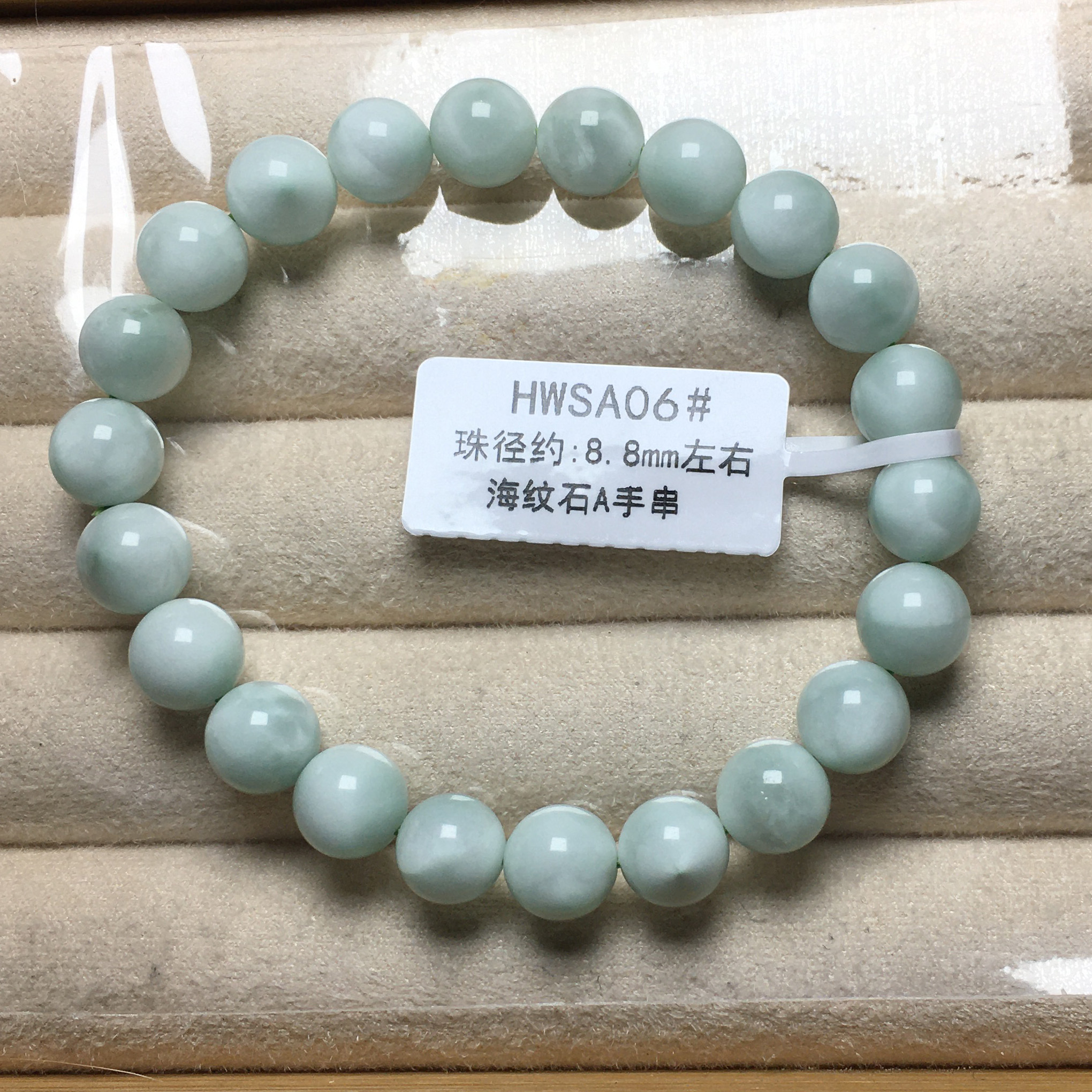 天然绿海纹石单圈绿天使飘花圆珠薄荷绿清新手链男女款玉化手串
