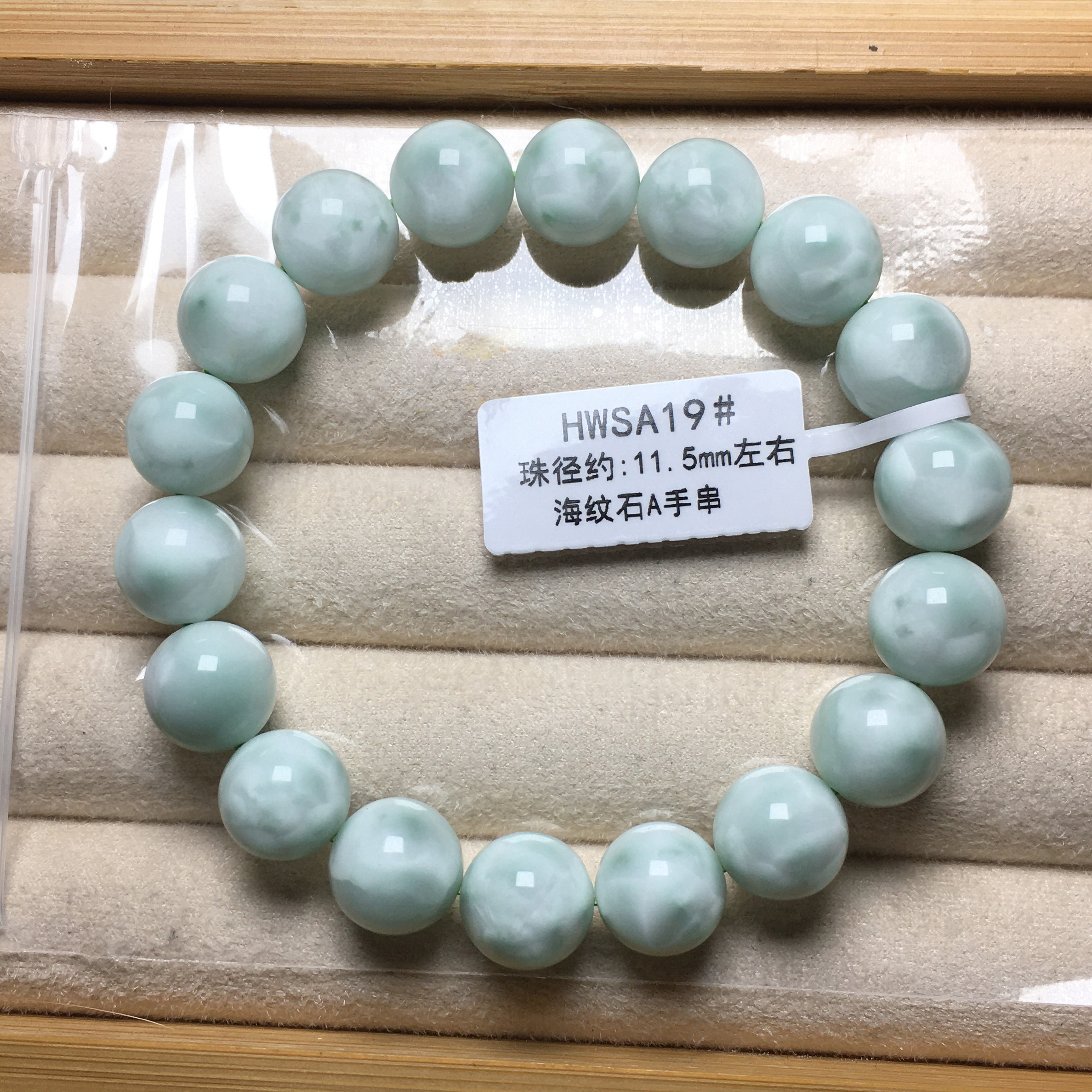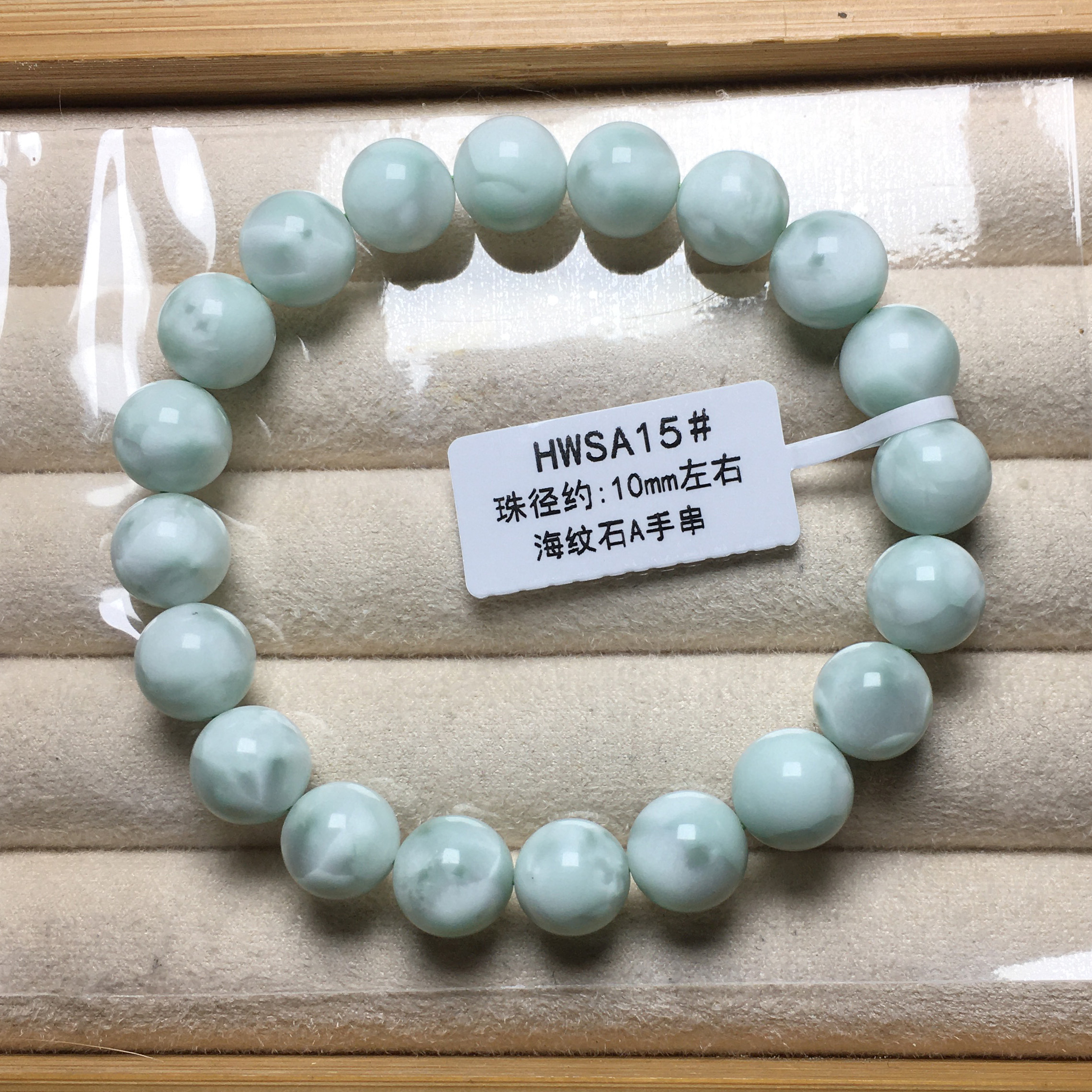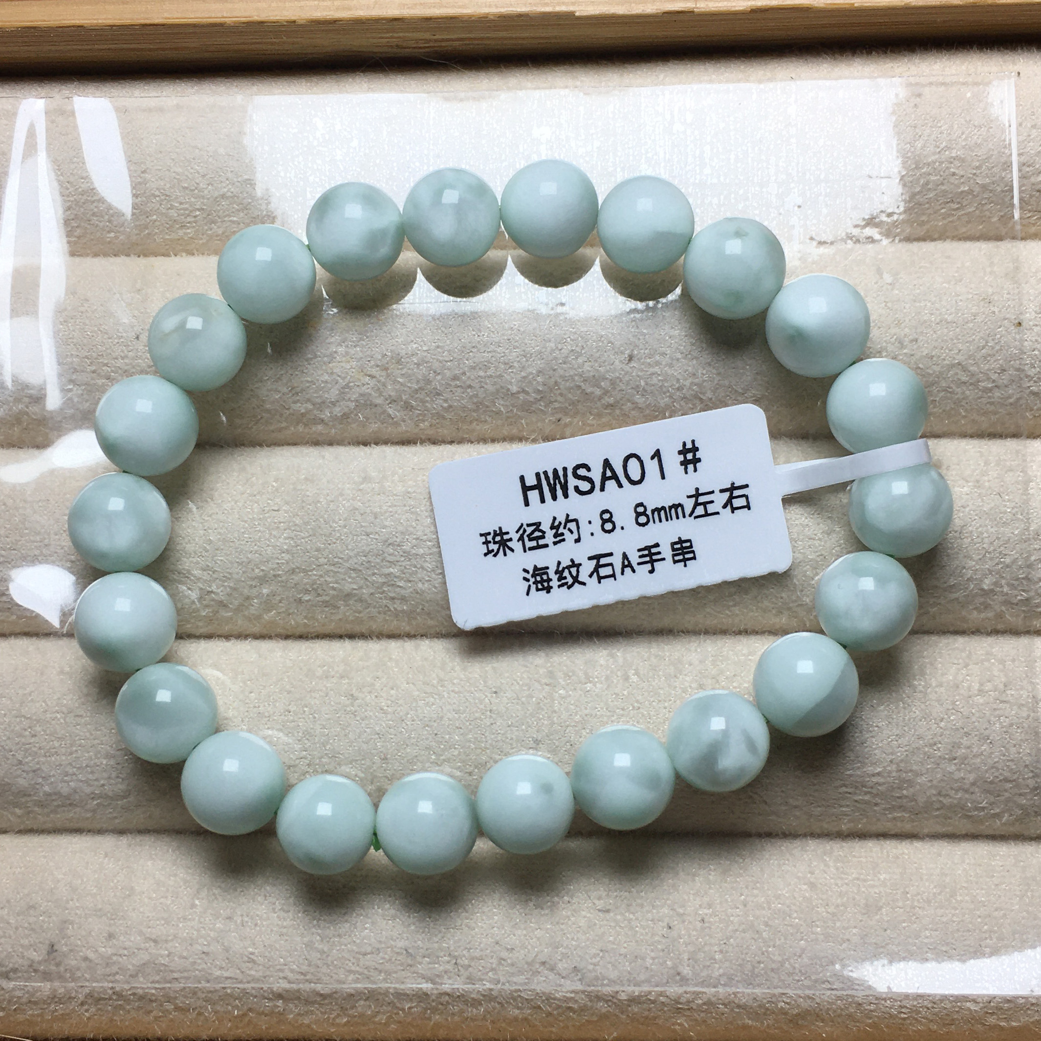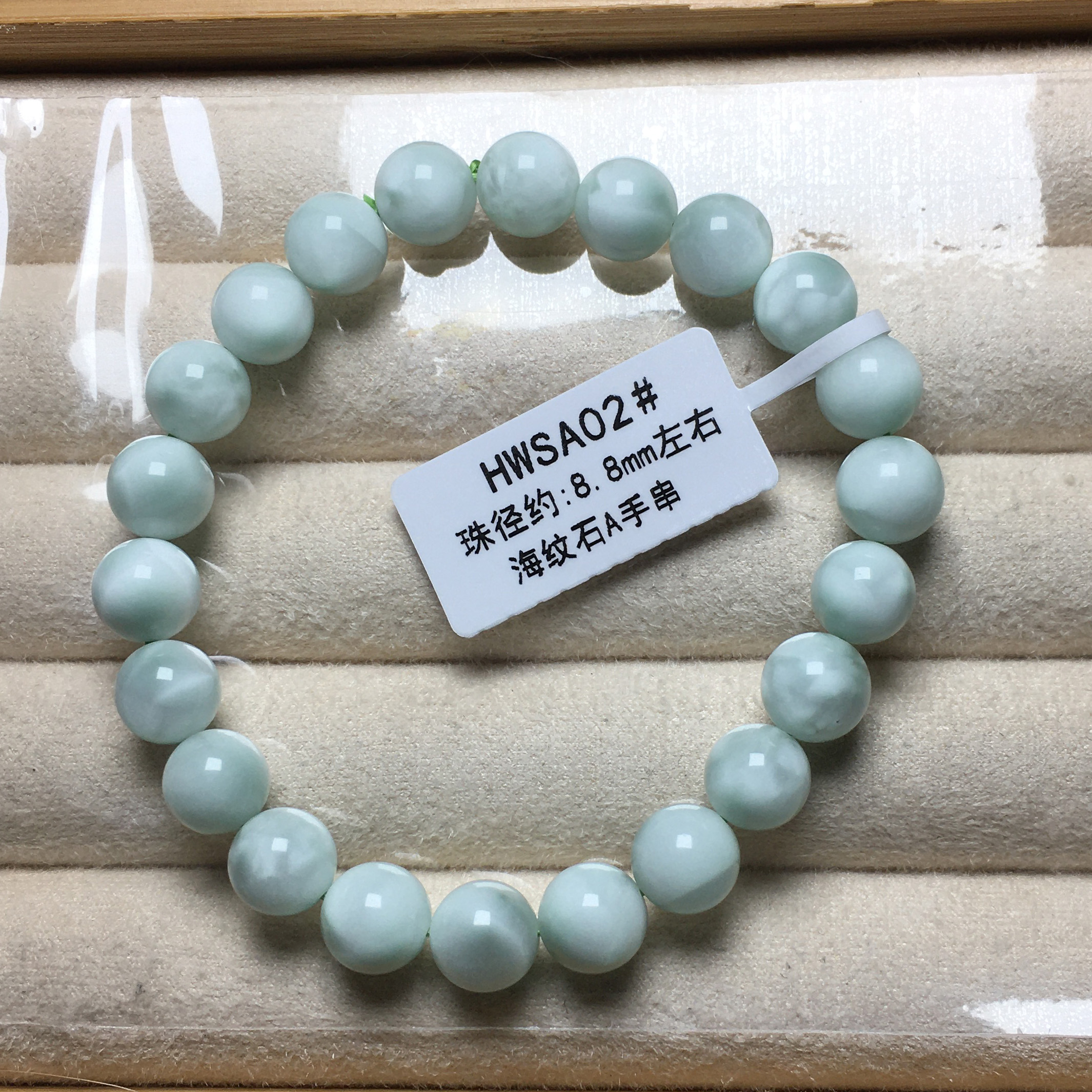 天然绿海纹石单圈绿天使飘花圆珠薄荷绿清新手链男女款玉化手串