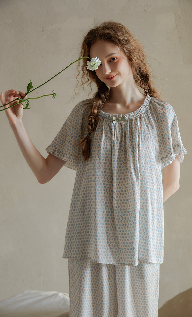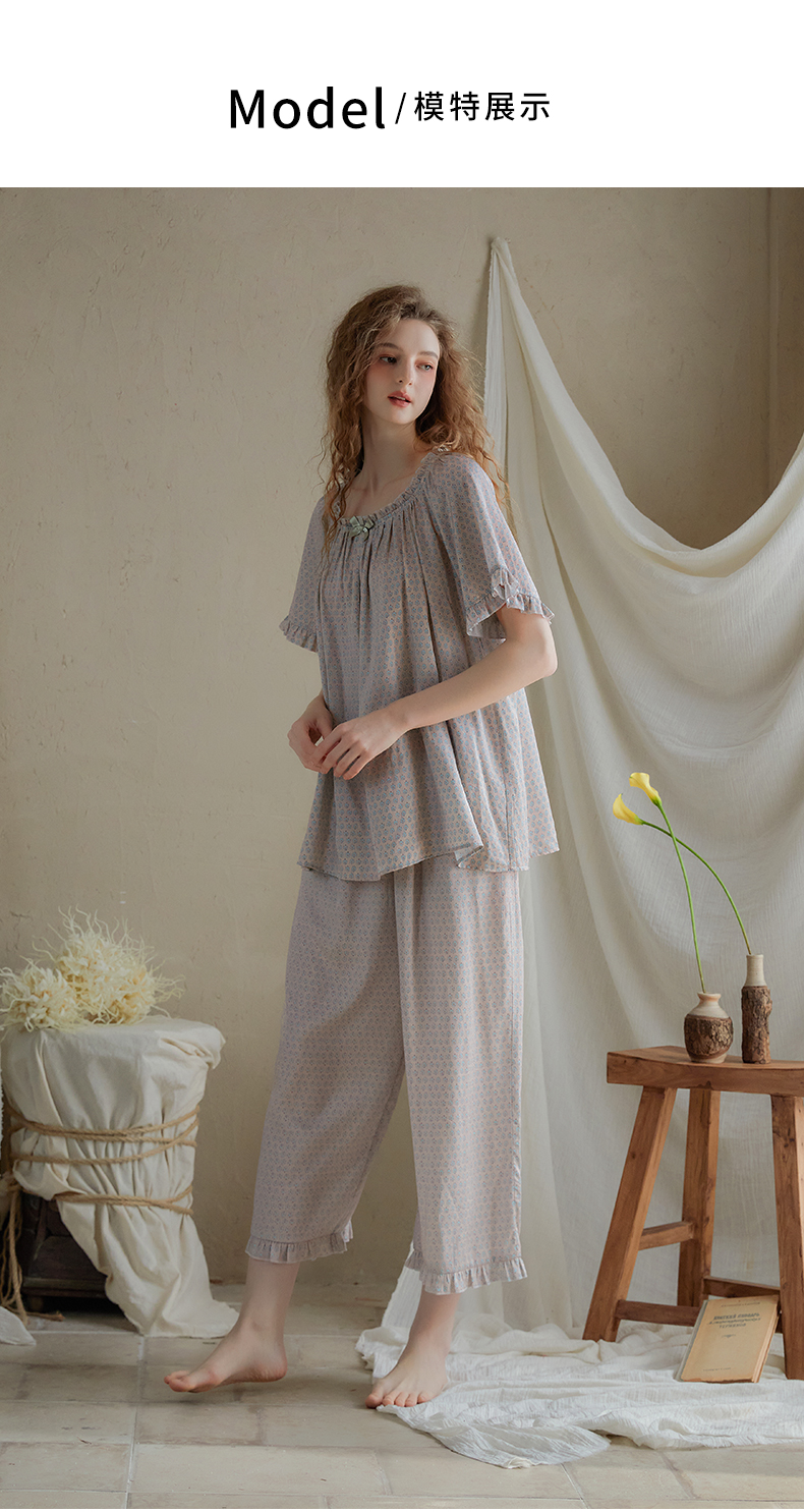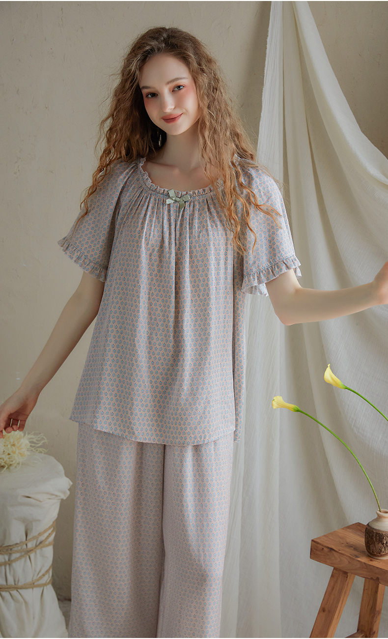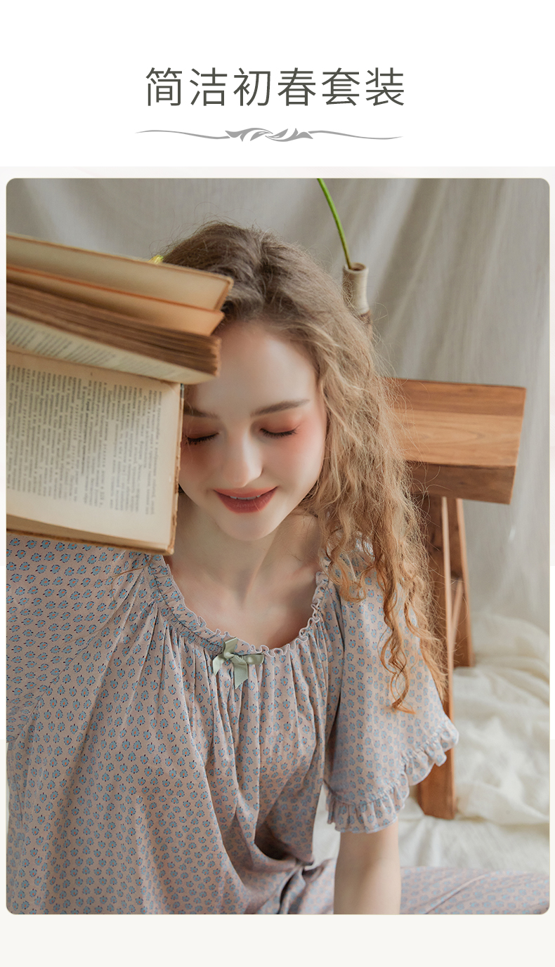 尘熙法式宫廷公主风夏季短袖长裤睡衣少女宽松家居服套装薄款印花