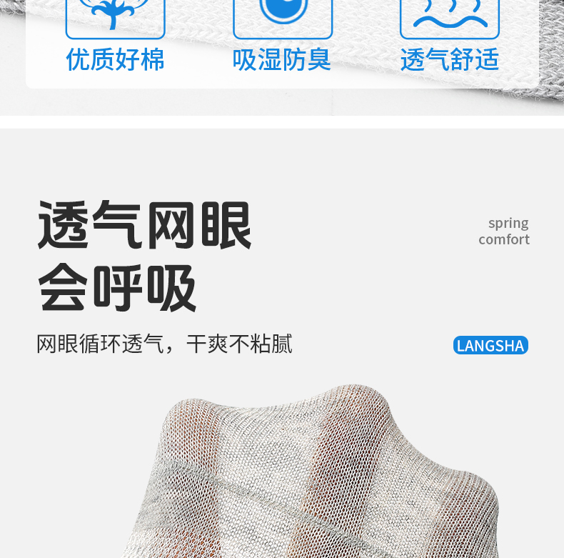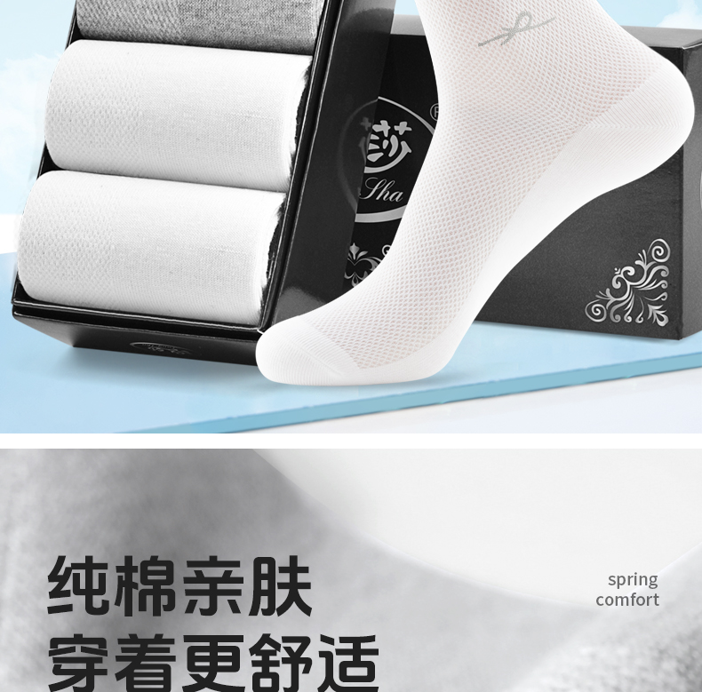 浪莎夏天袜子鞋男士纯棉防臭透气中筒袜商务春秋棉袜夏季薄款男袜