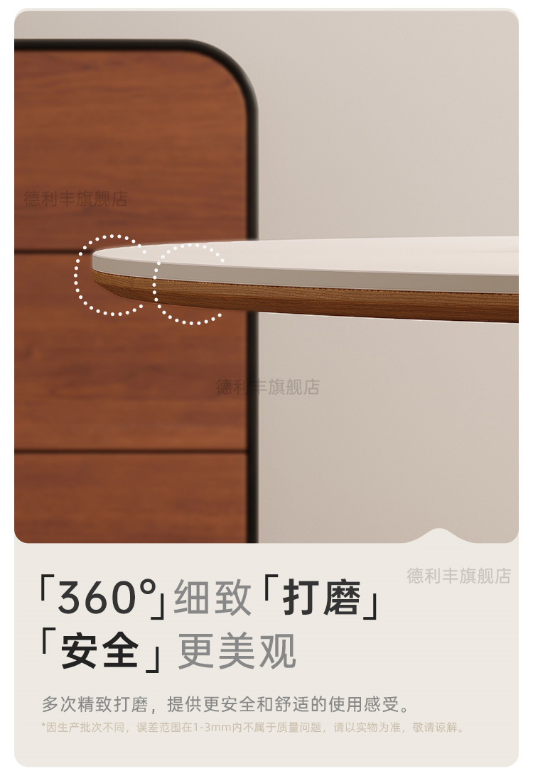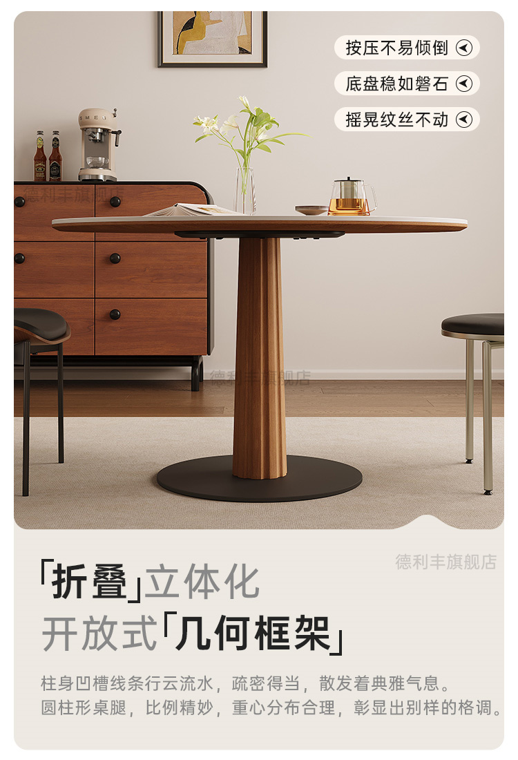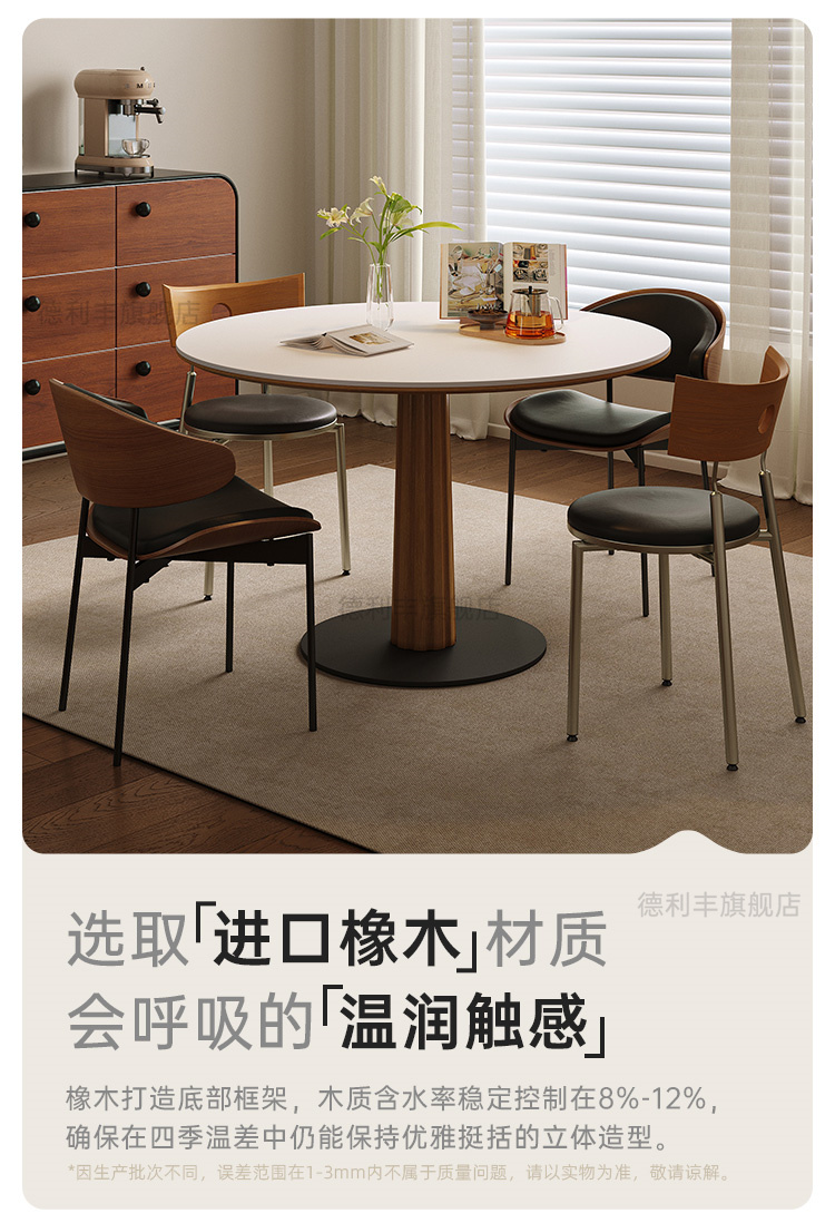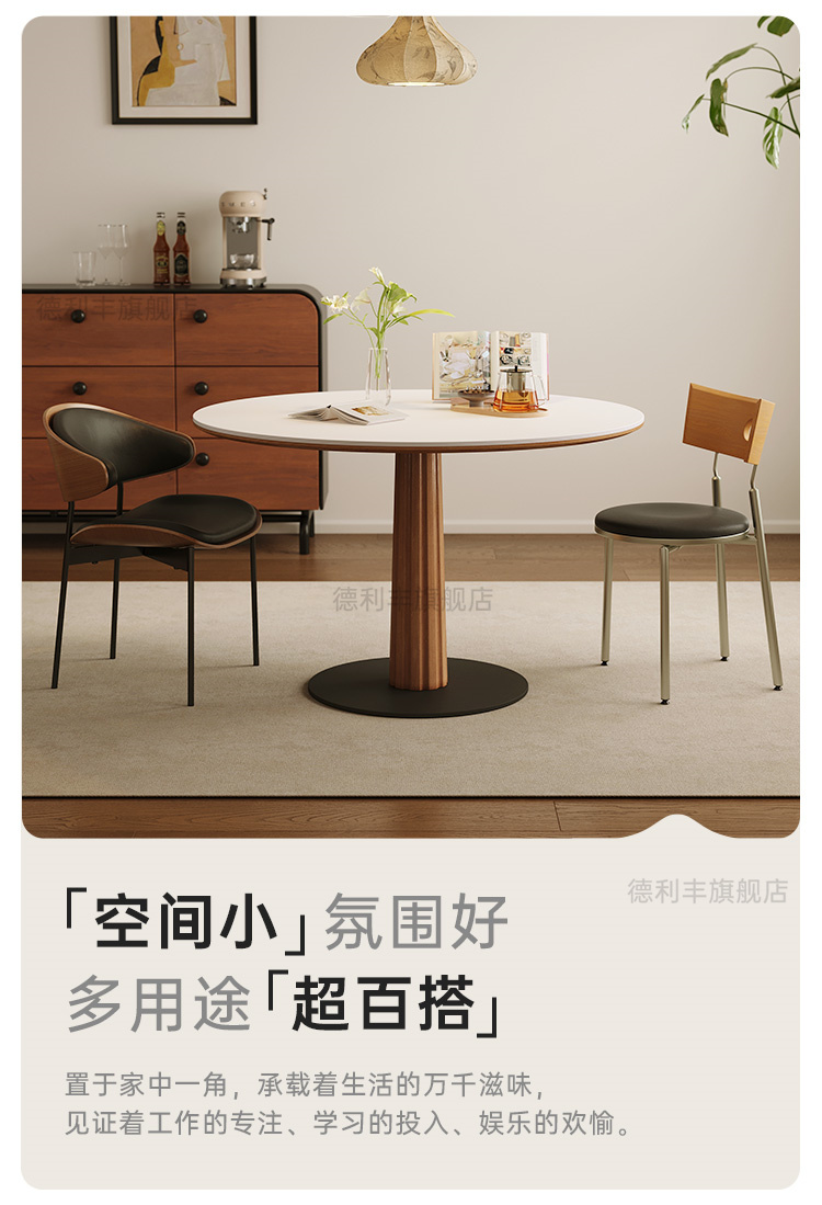 德利丰实木岩板餐桌全托中古风复古纯白家用小户型圆形饭桌洽谈桌