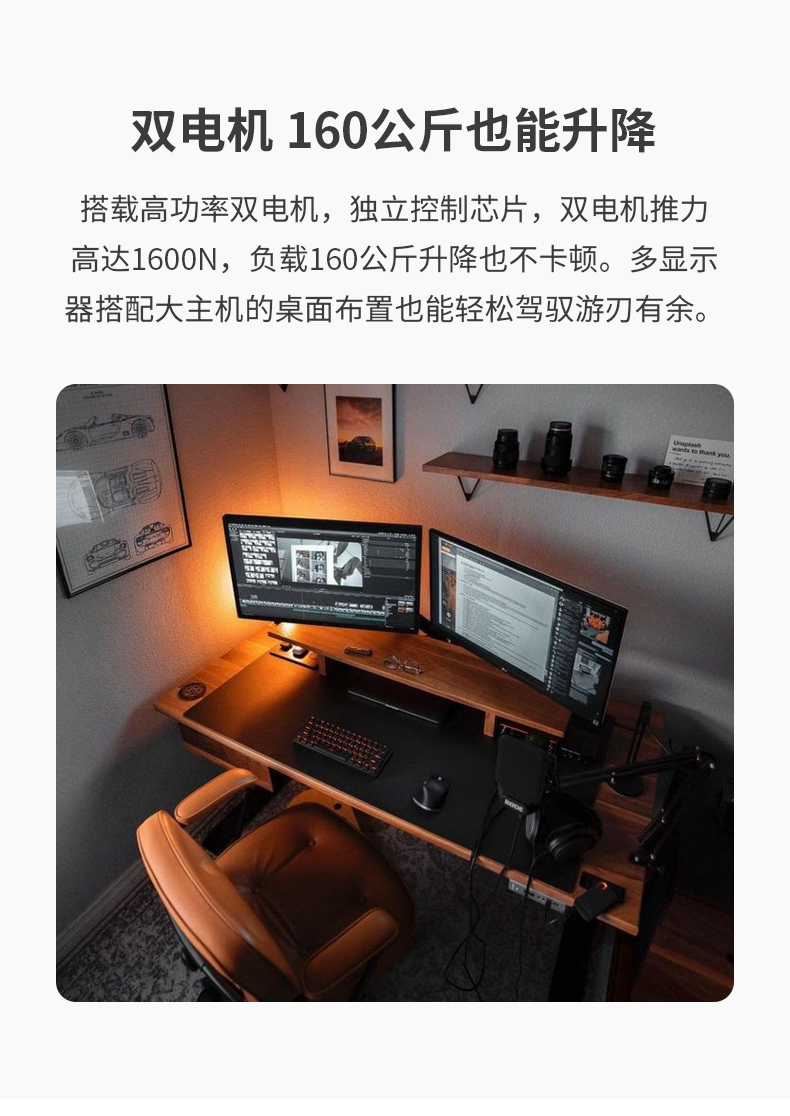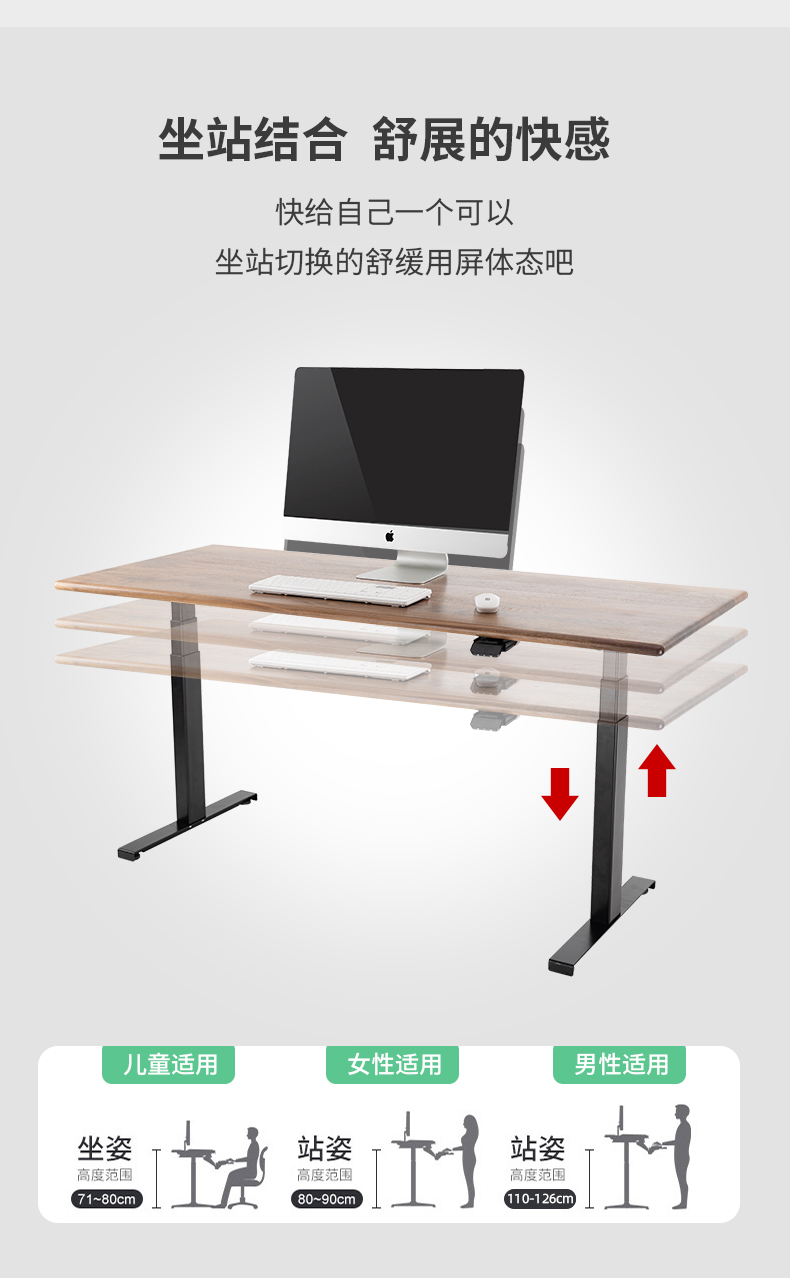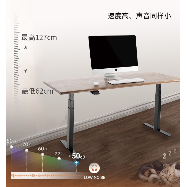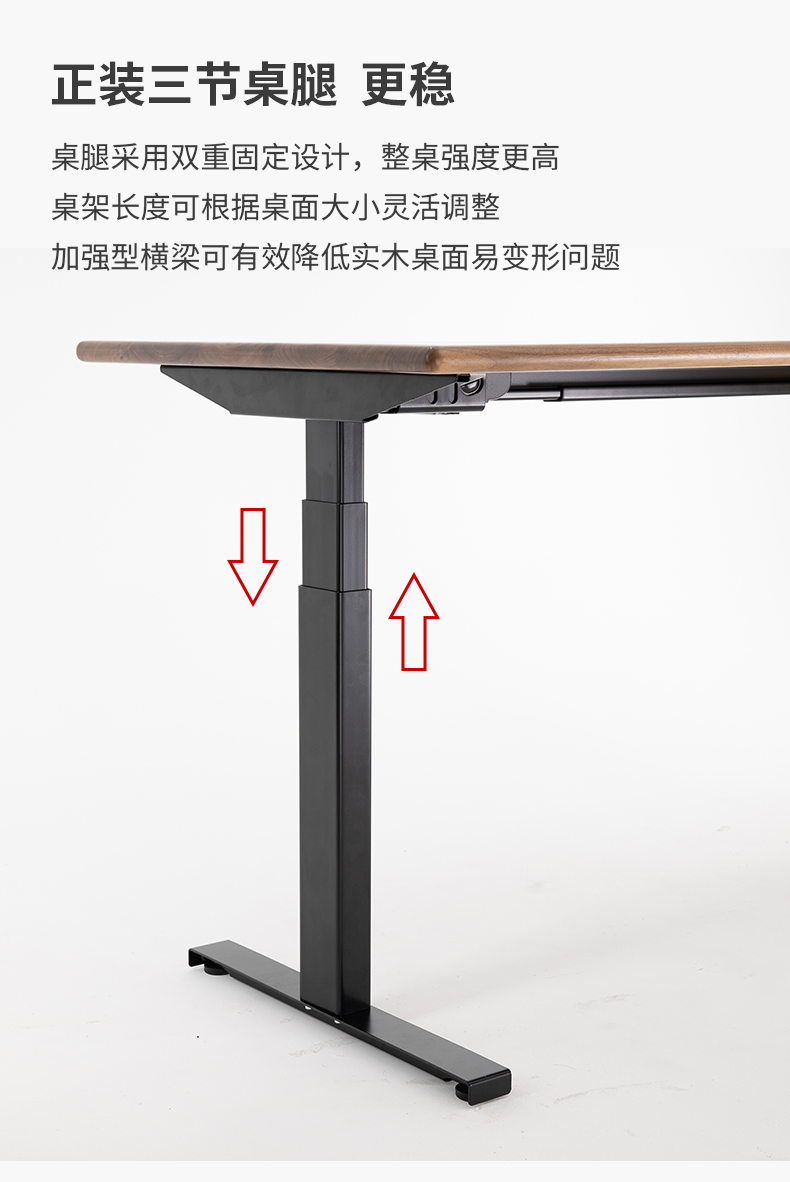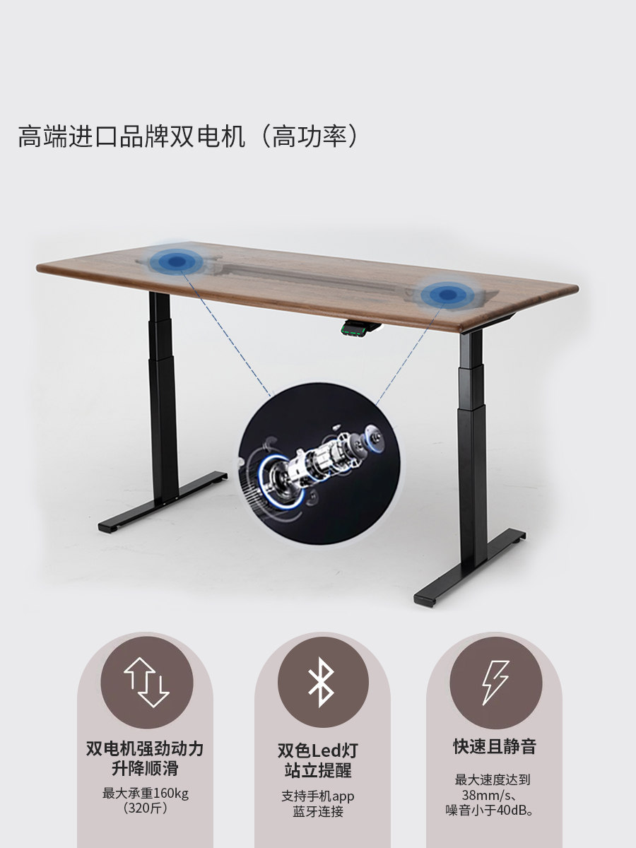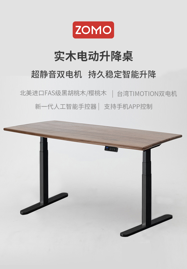ZOMO黑胡桃木电动升降桌站立电脑桌家用实木书桌智能办公桌长条桌