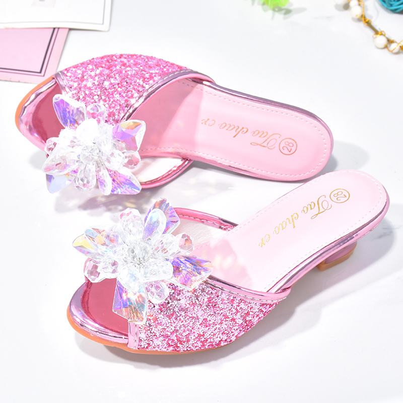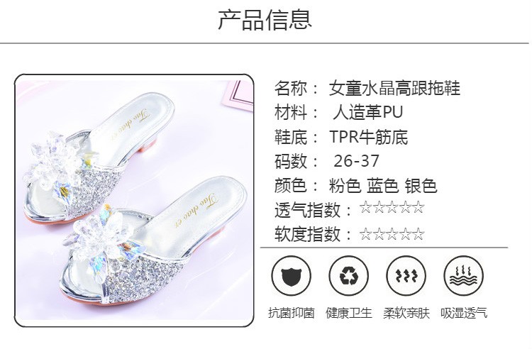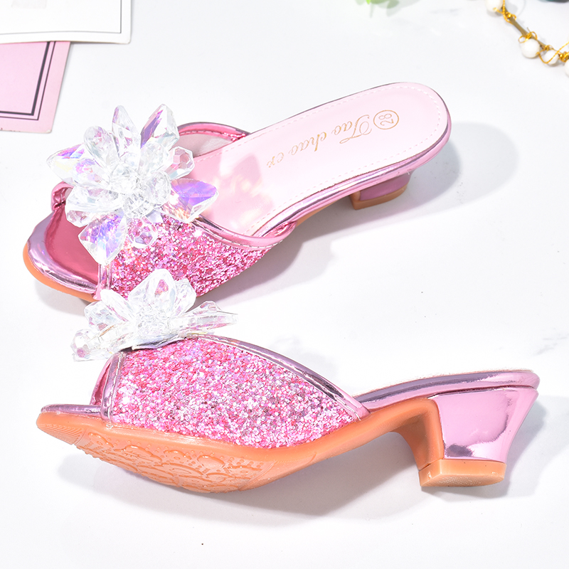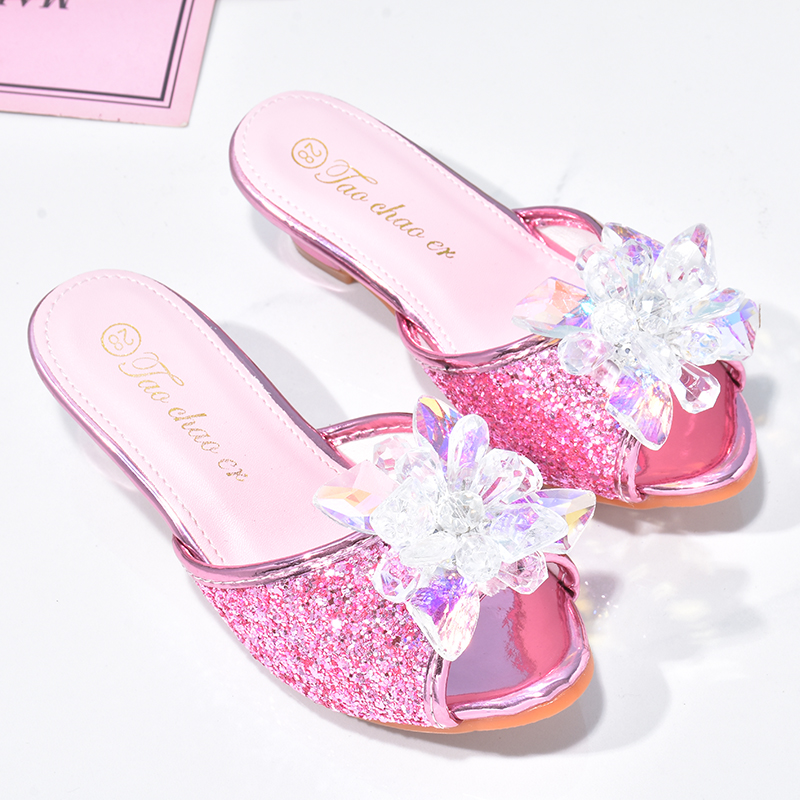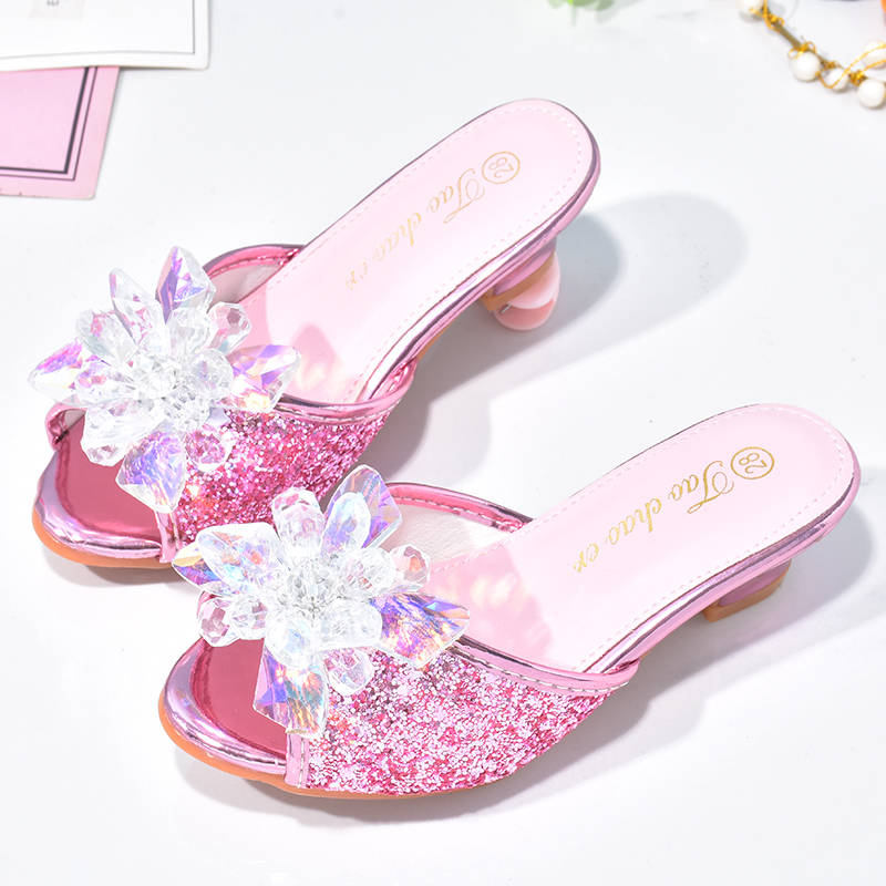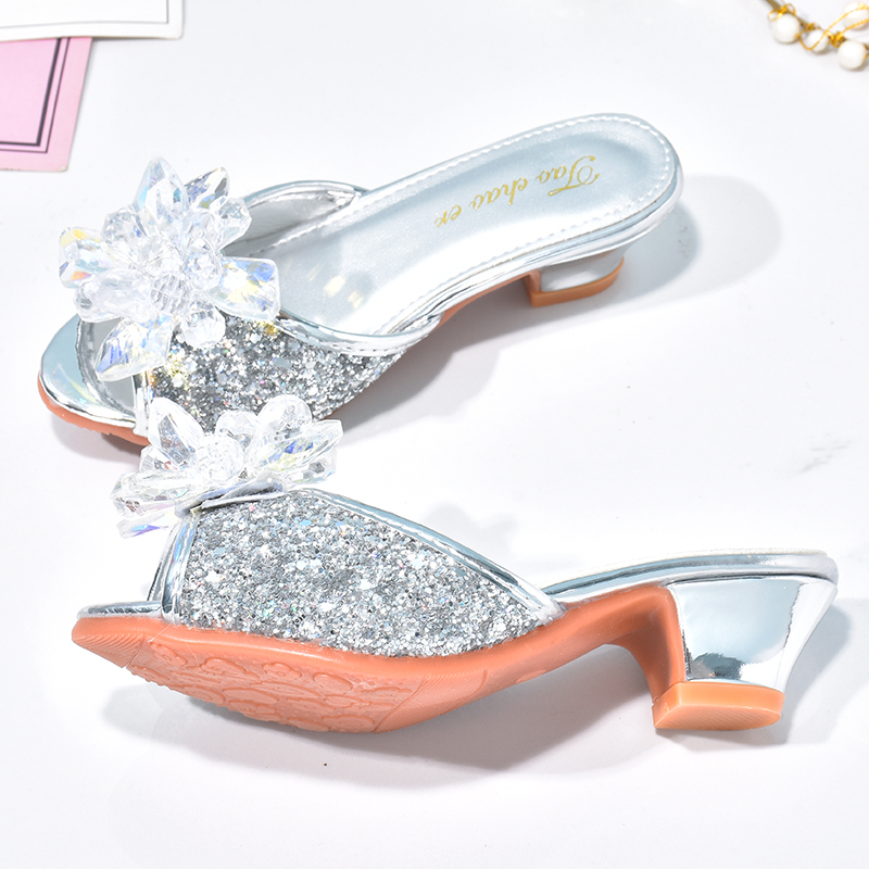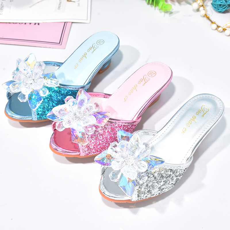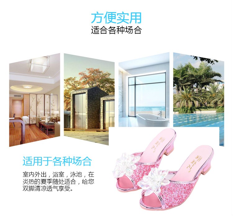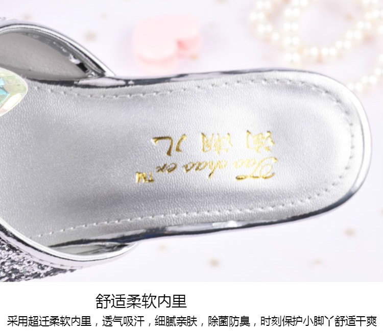 灰姑娘水晶鞋女童公主鞋夏季新款儿童小高跟拖鞋防滑外穿宝宝凉拖