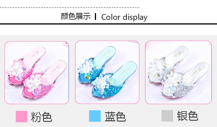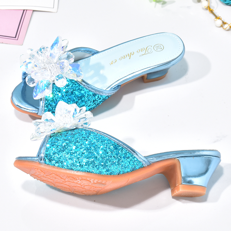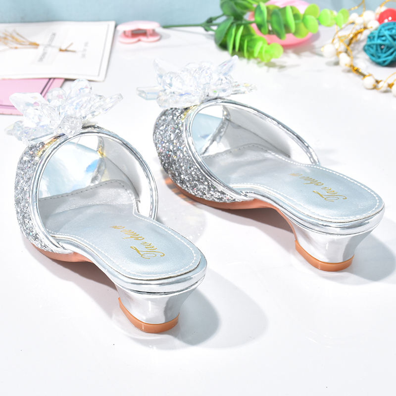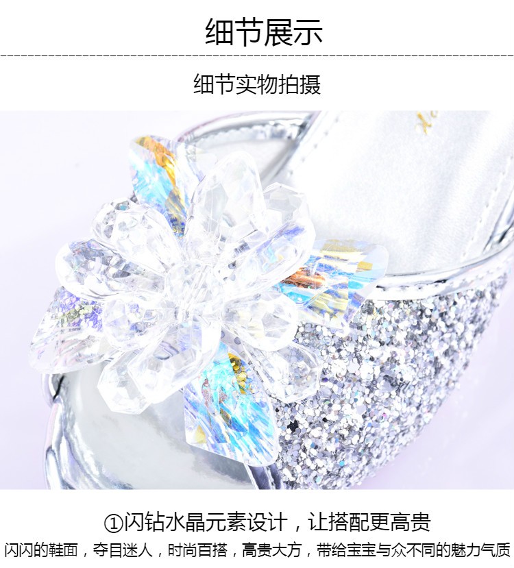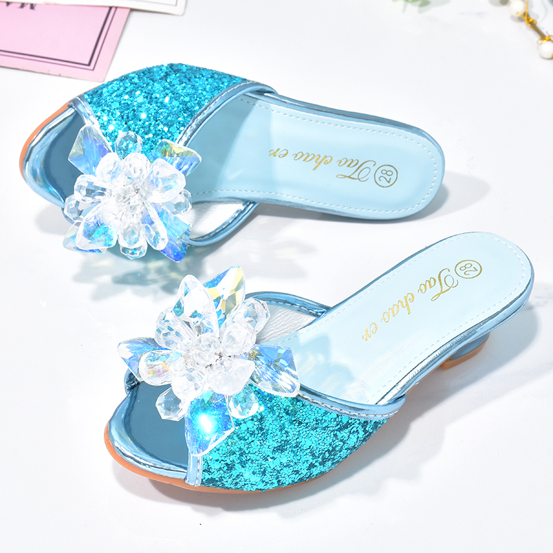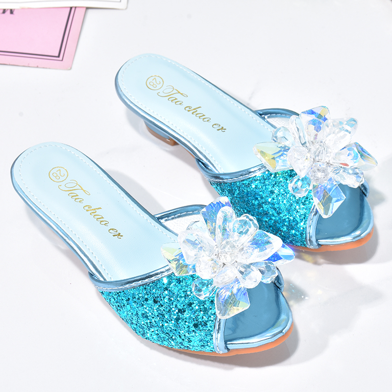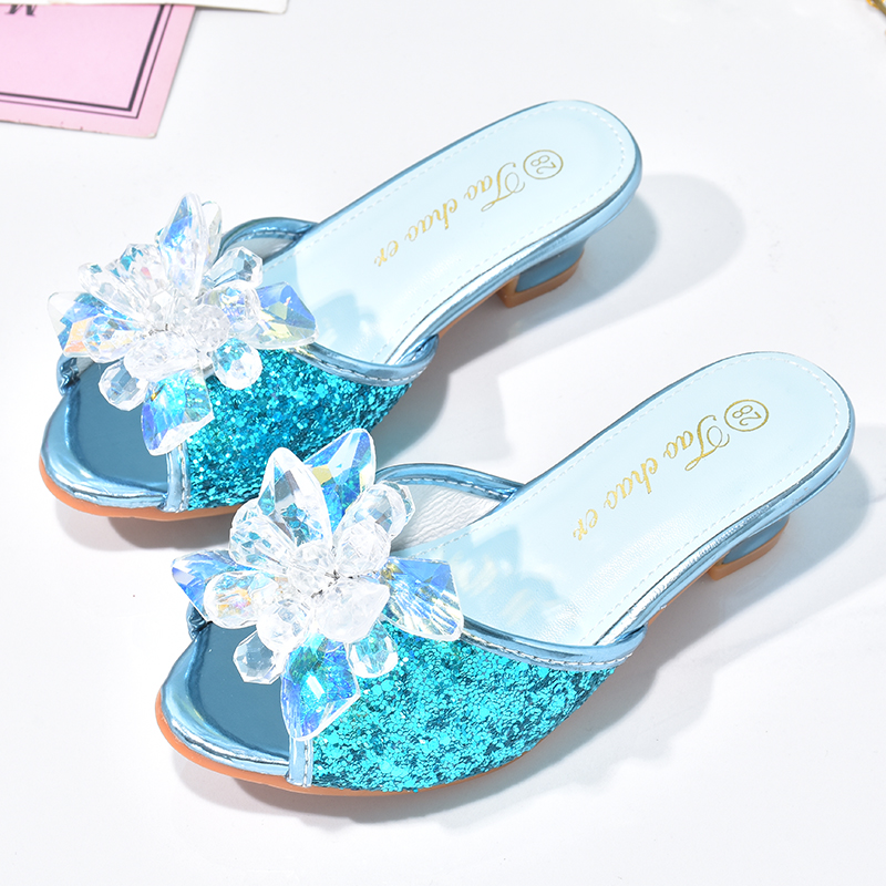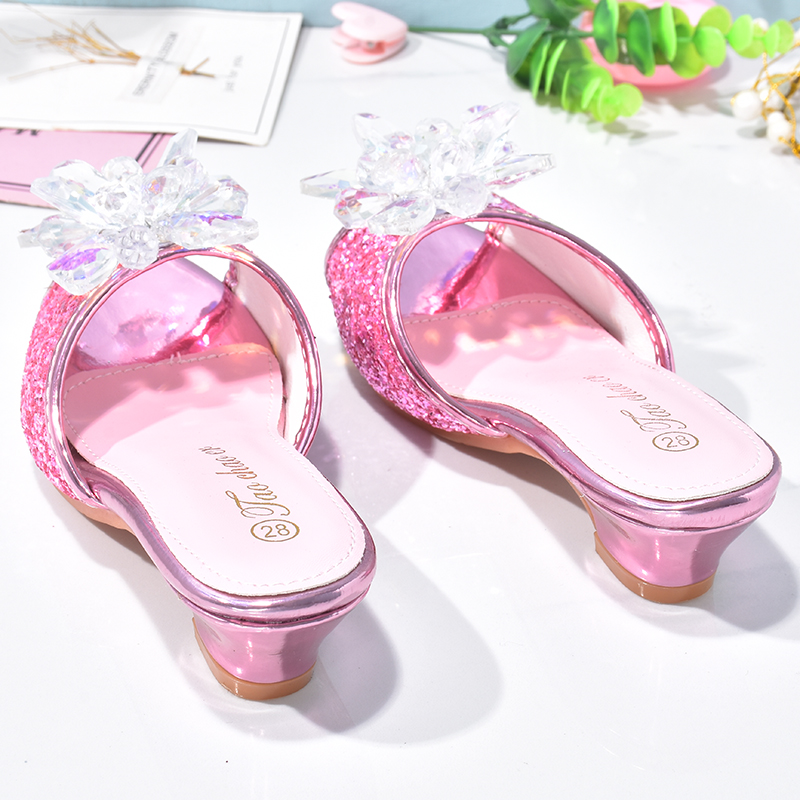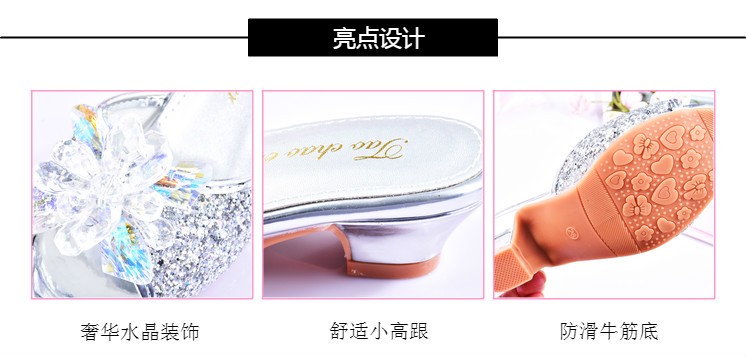 灰姑娘水晶鞋女童公主鞋夏季新款儿童小高跟拖鞋防滑外穿宝宝凉拖