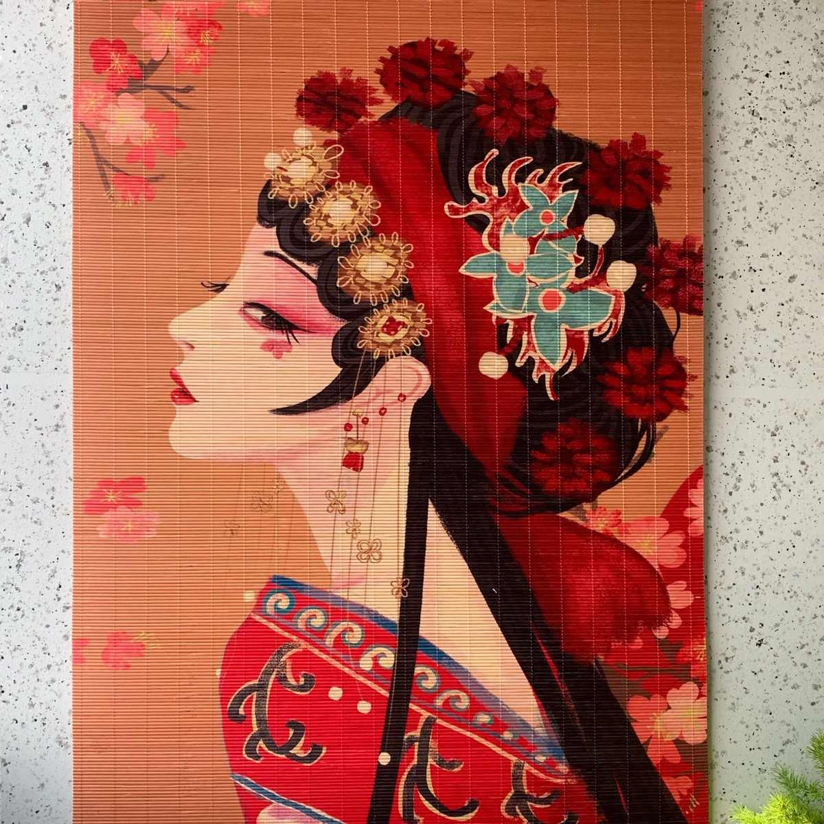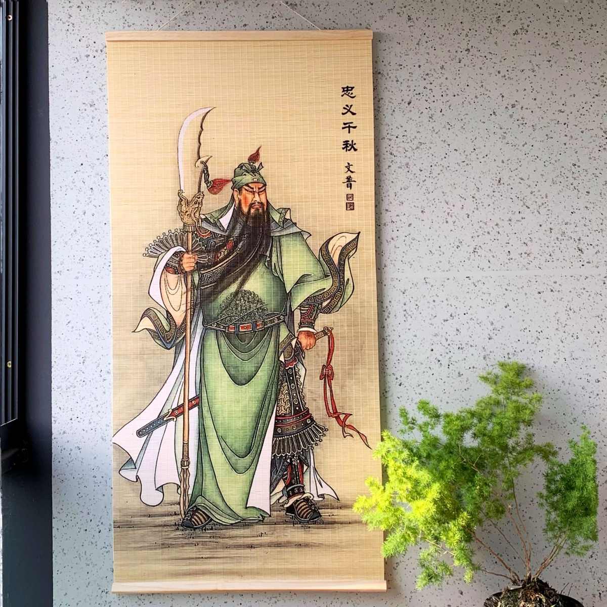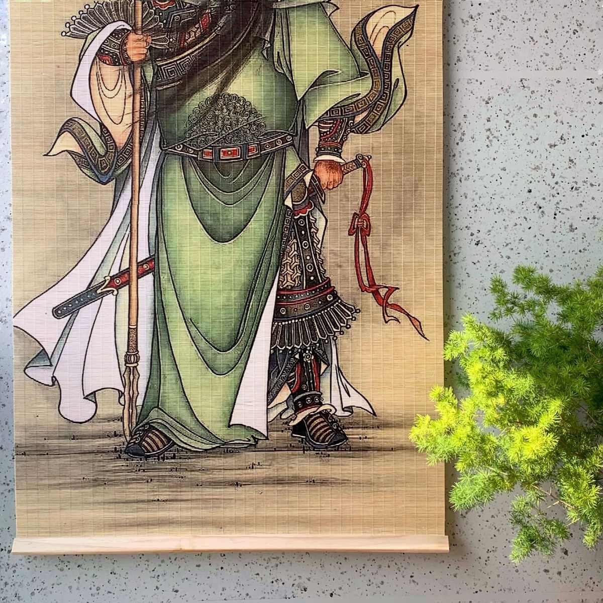 新中式竹帘窗帘卷帘茶室背景印花装饰隔断关公关羽民宿挂画门帘子
