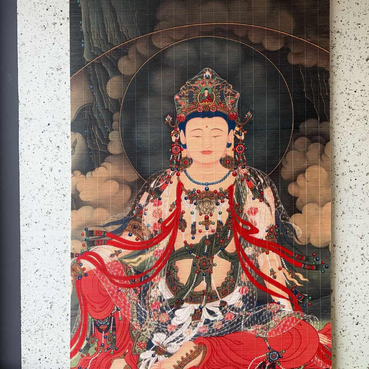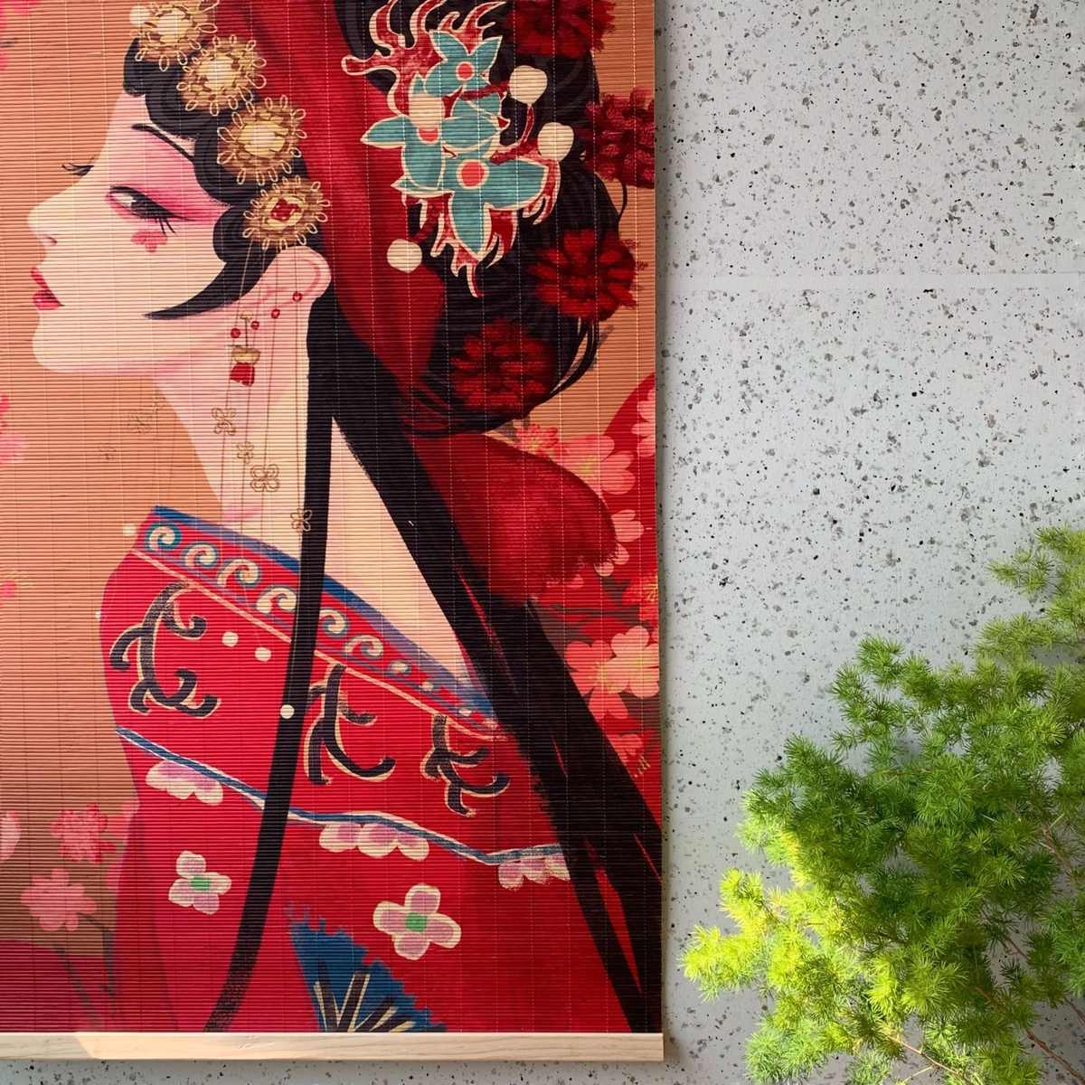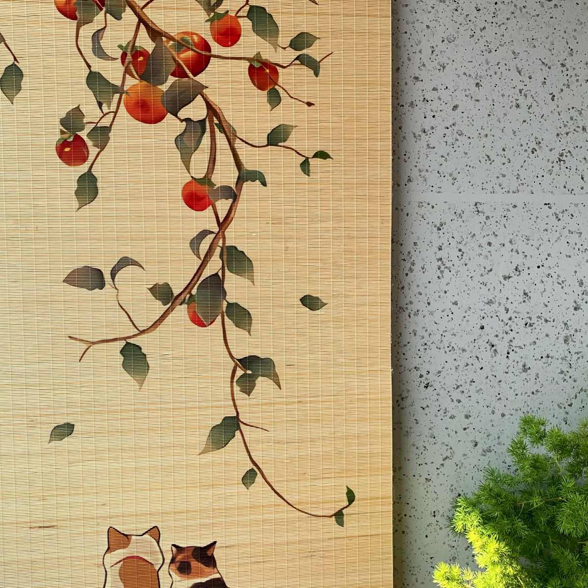 新中式竹帘窗帘卷帘茶室背景印花装饰隔断关公关羽民宿挂画门帘子