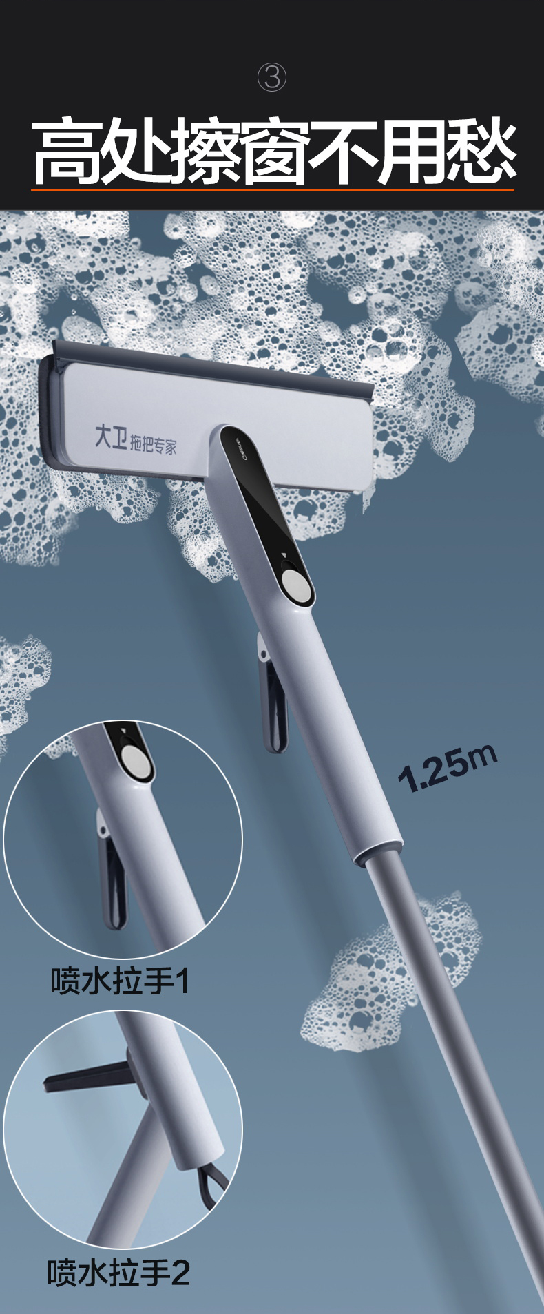 大卫擦玻璃神家用器高层喷雾搽洗外窗户清洁刮水器板双面专用工具