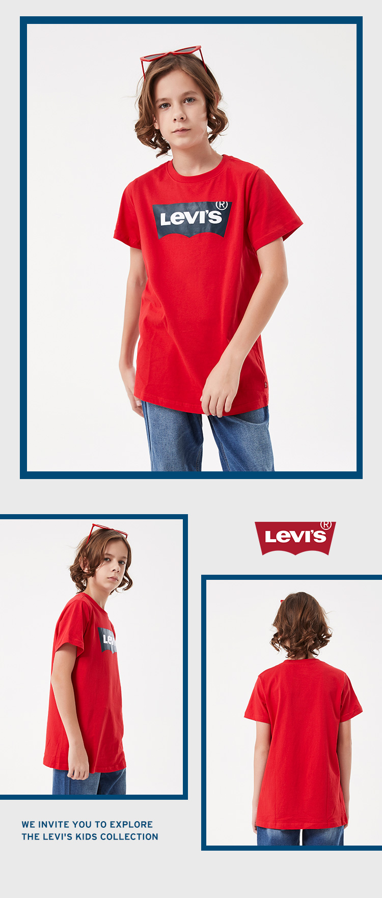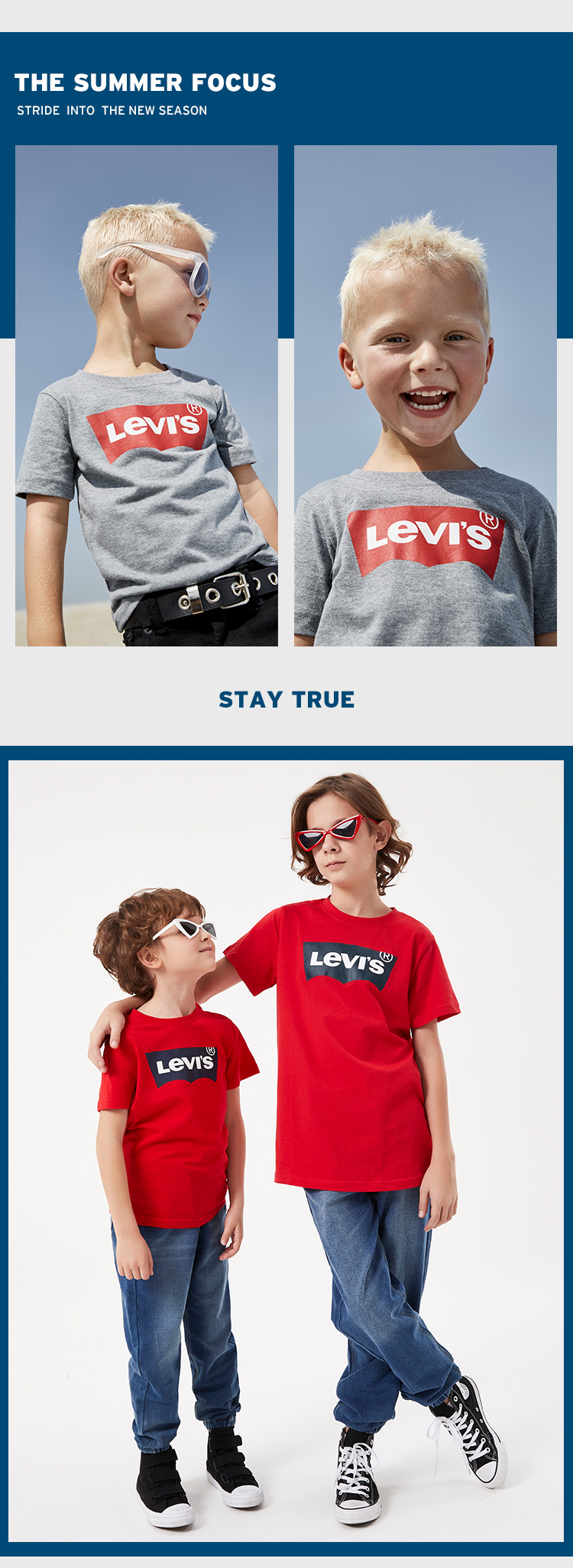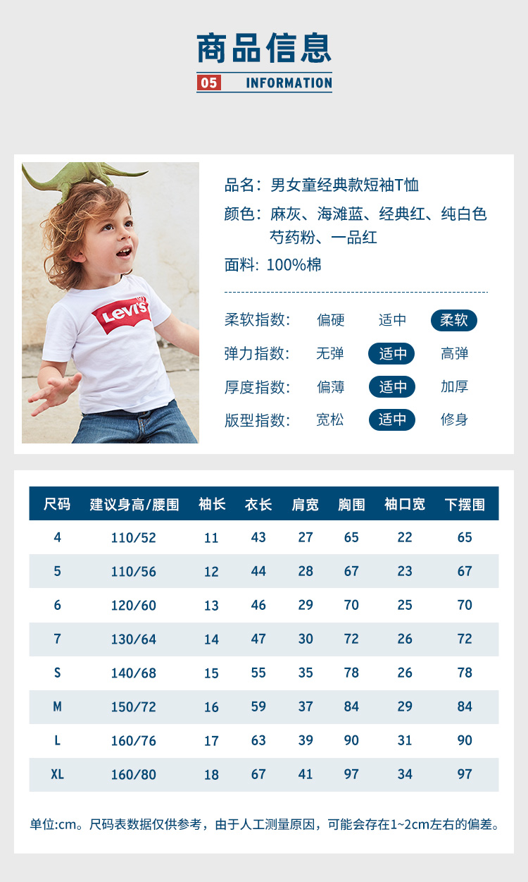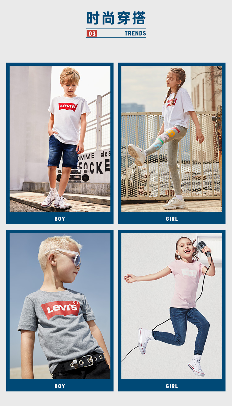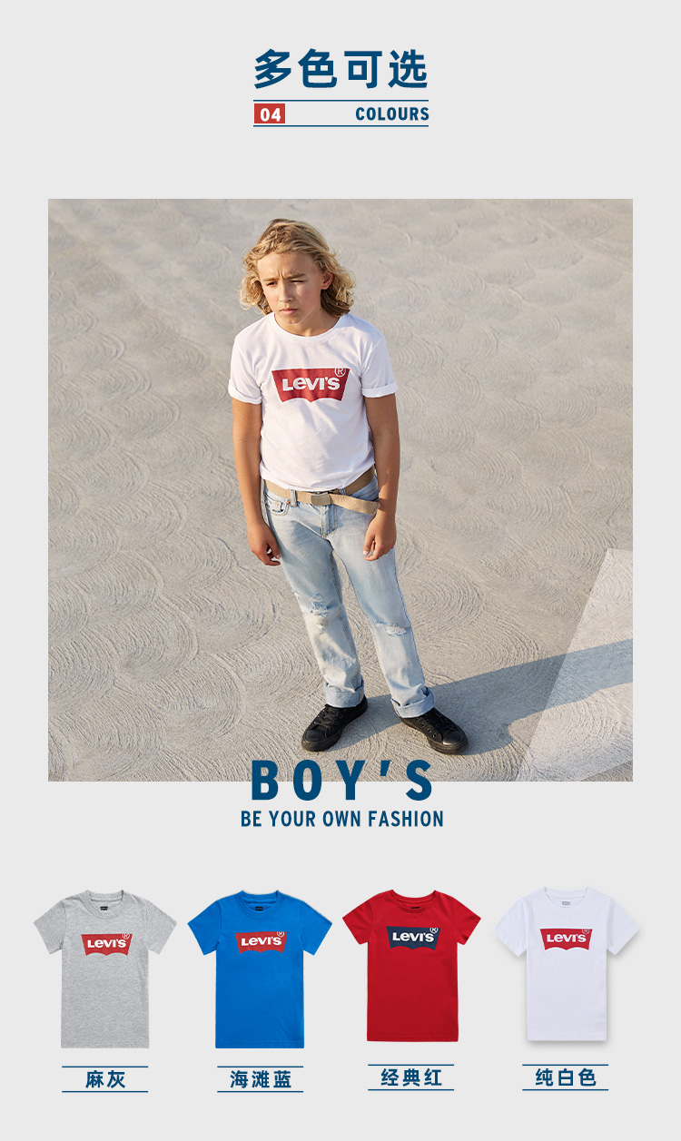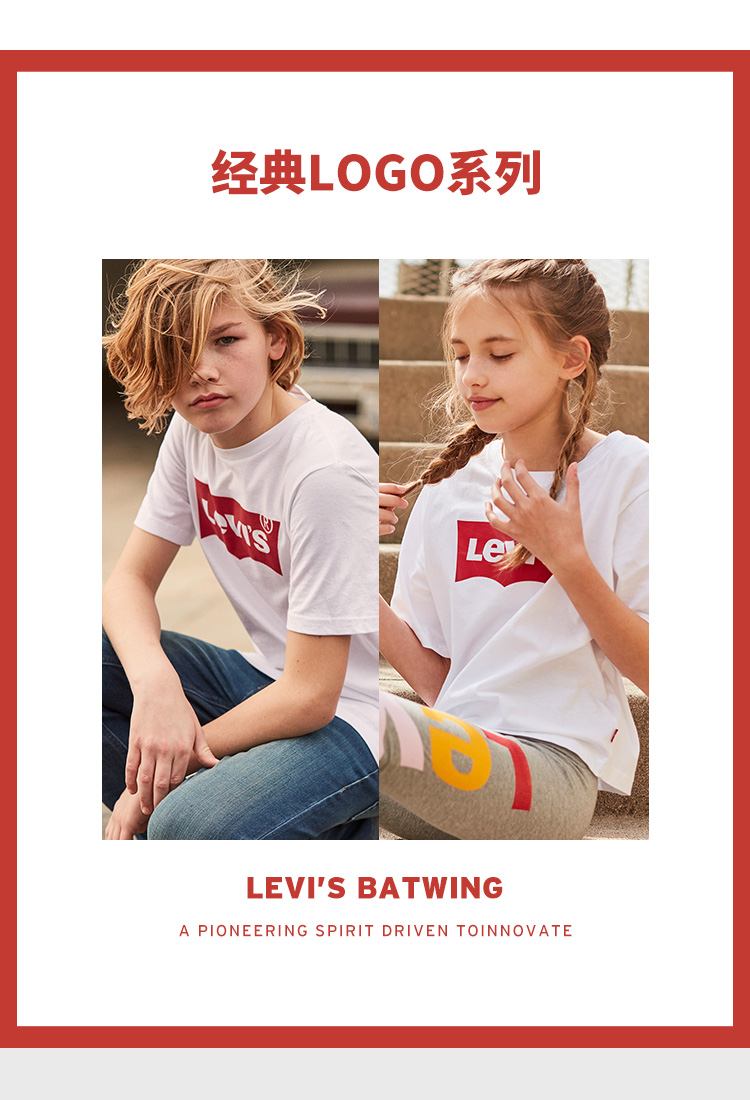 李维斯儿童装男童短袖T恤夏季新款中大童纯棉上衣女童半袖亲子装