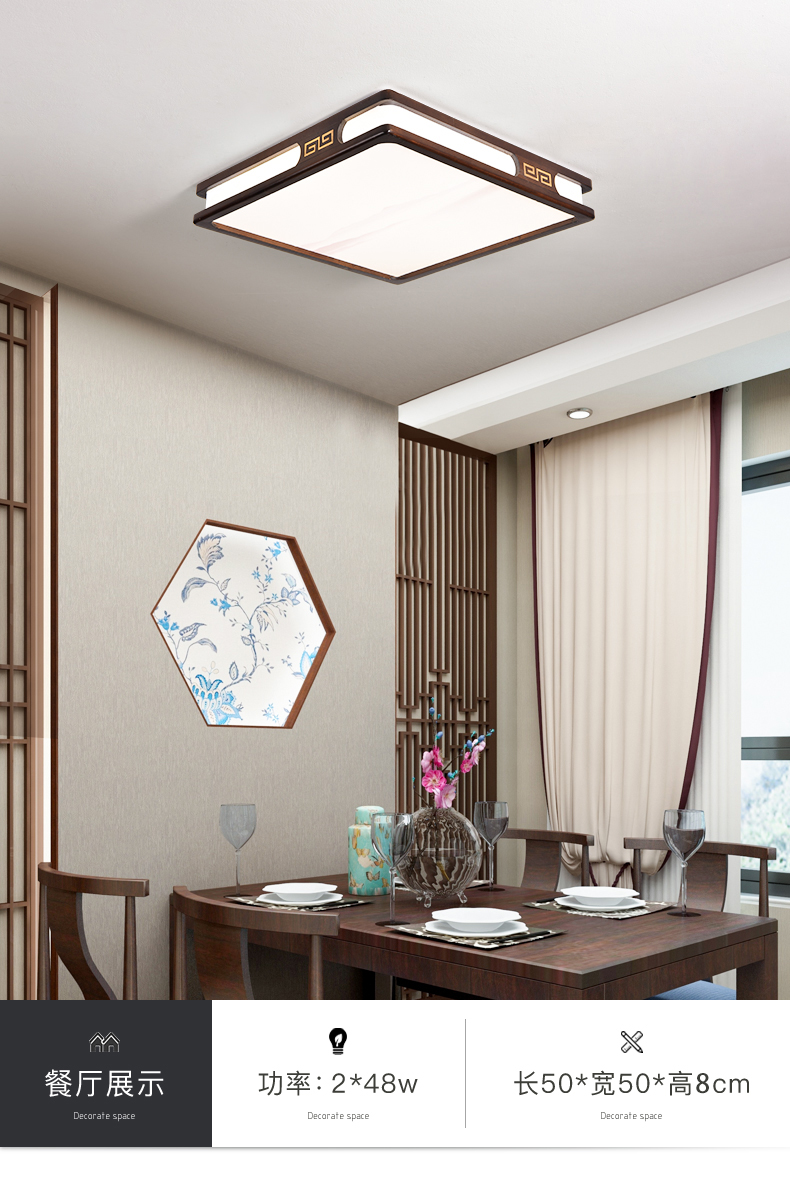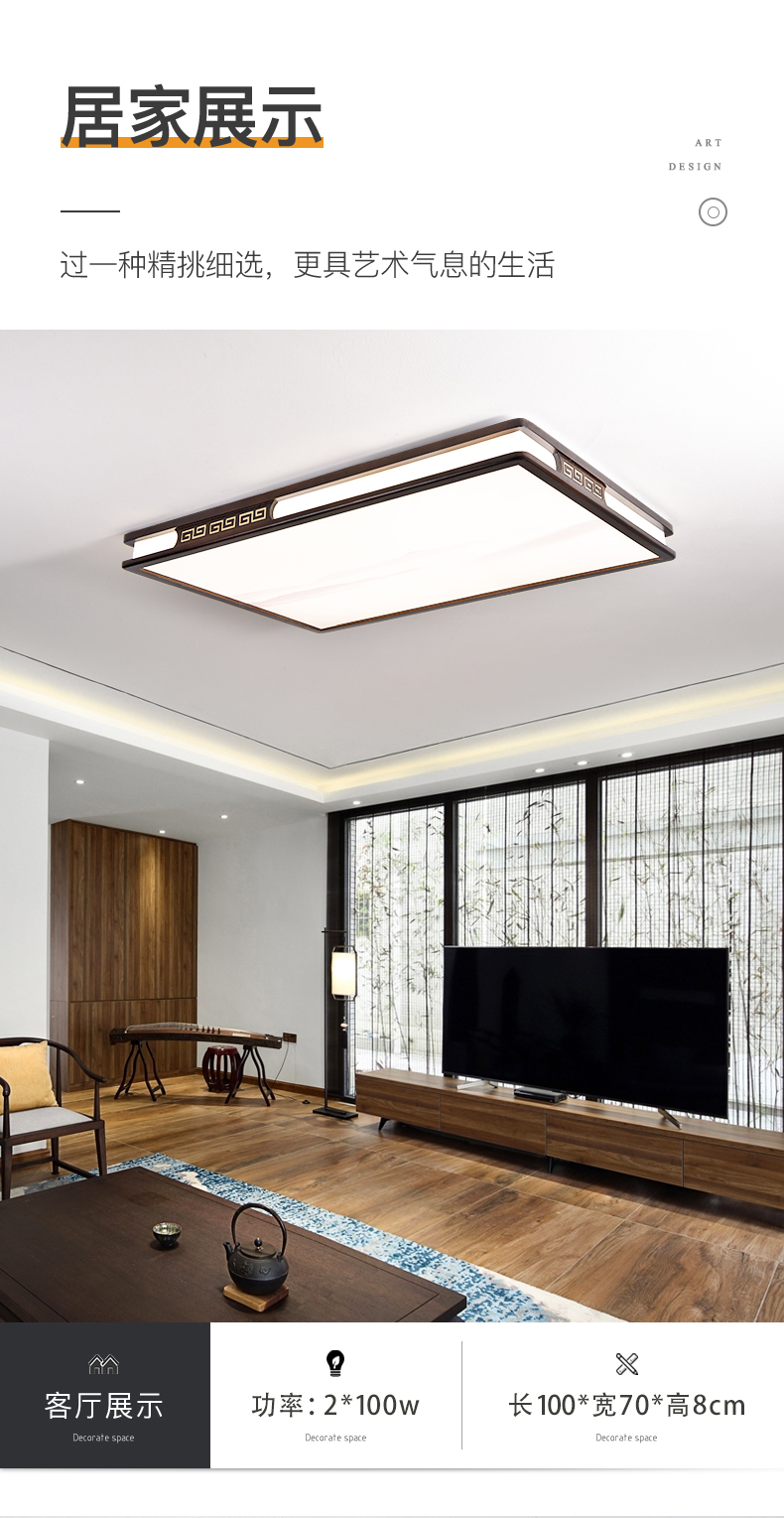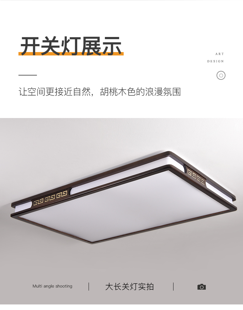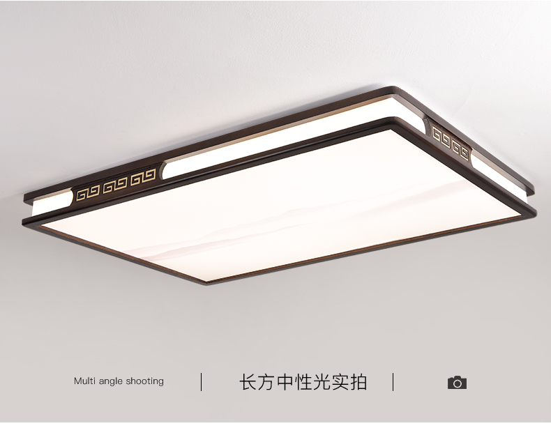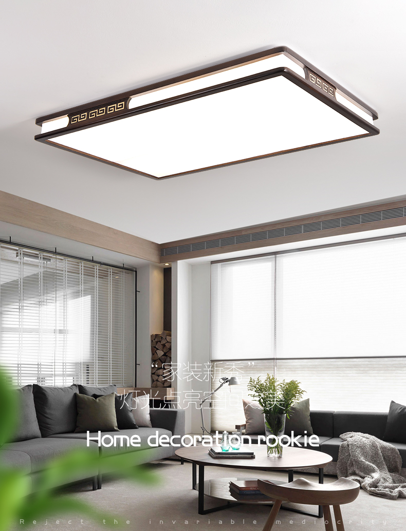 实木新中式客厅灯吸顶灯led超薄长方形厅灯橡木灯饰胡桃木色灯具