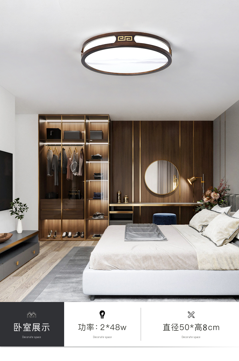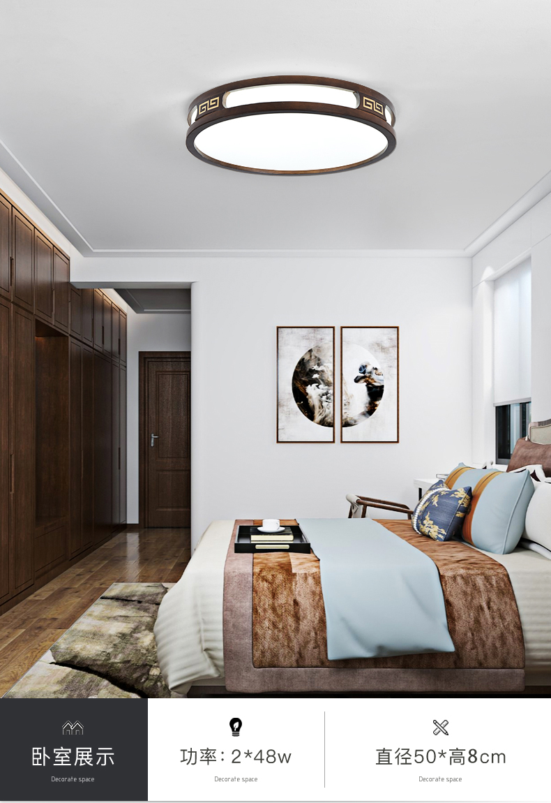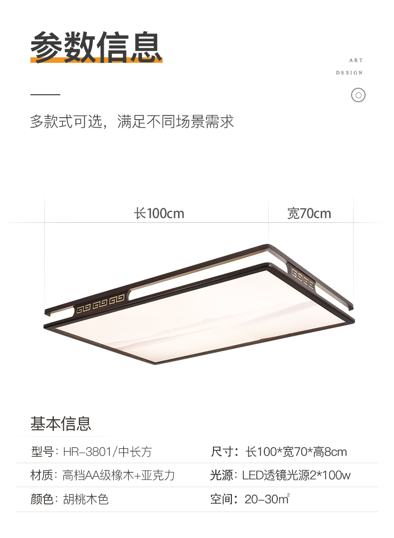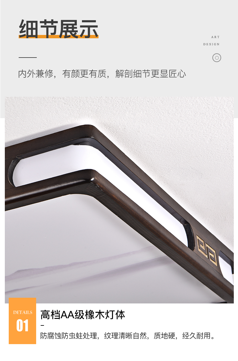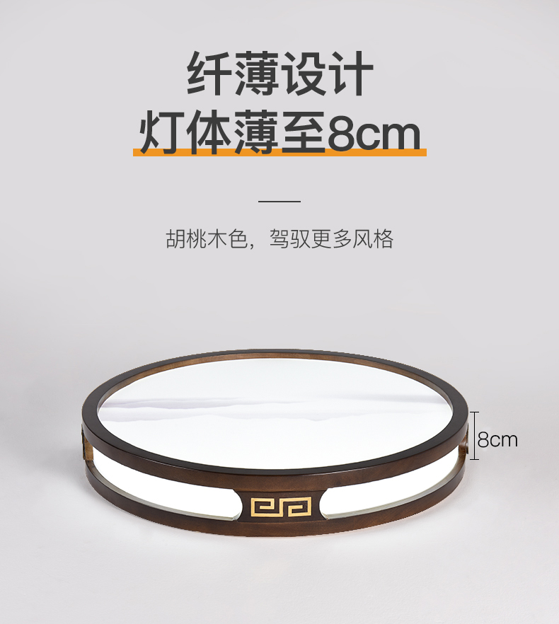 实木新中式客厅灯吸顶灯led超薄长方形厅灯橡木灯饰胡桃木色灯具