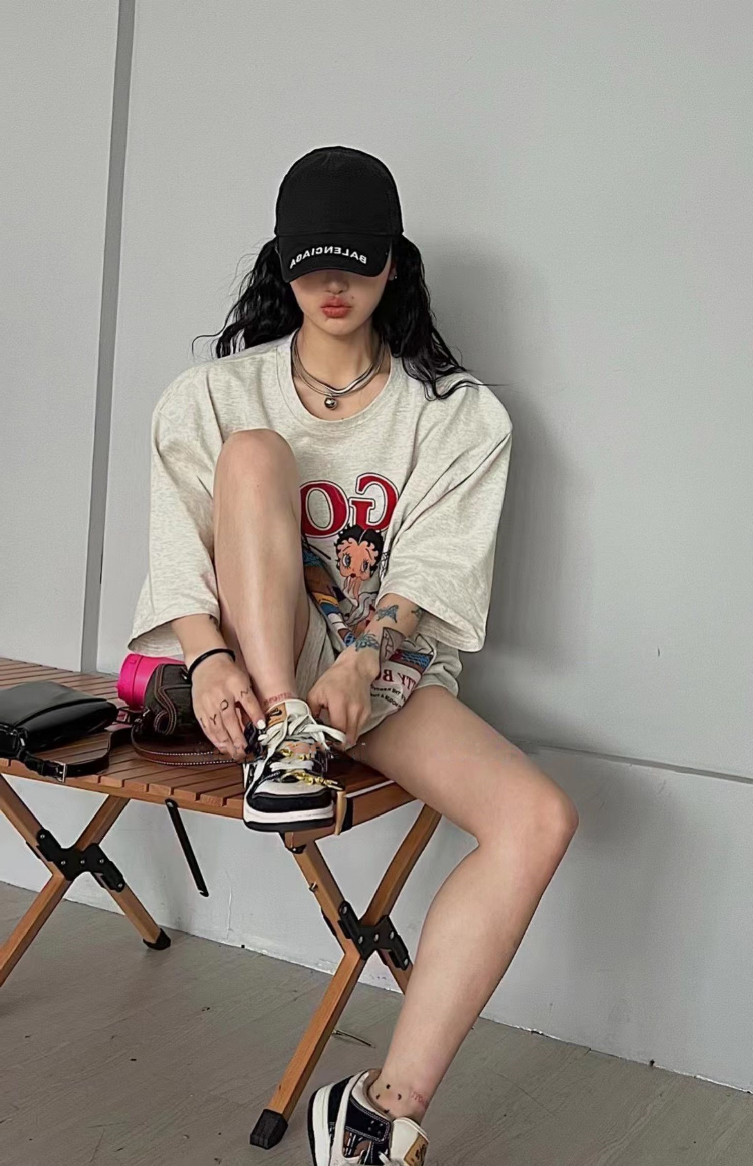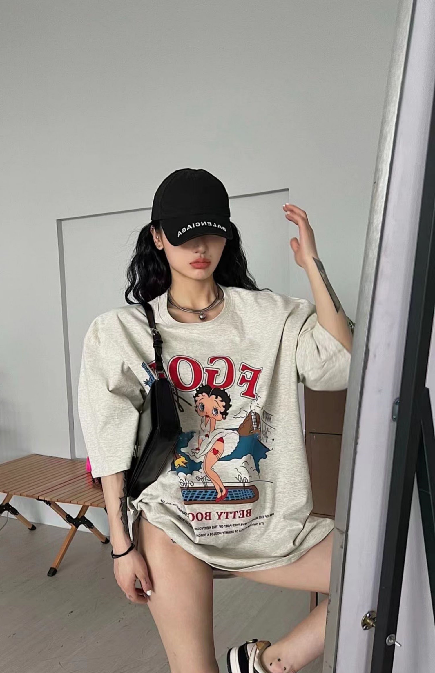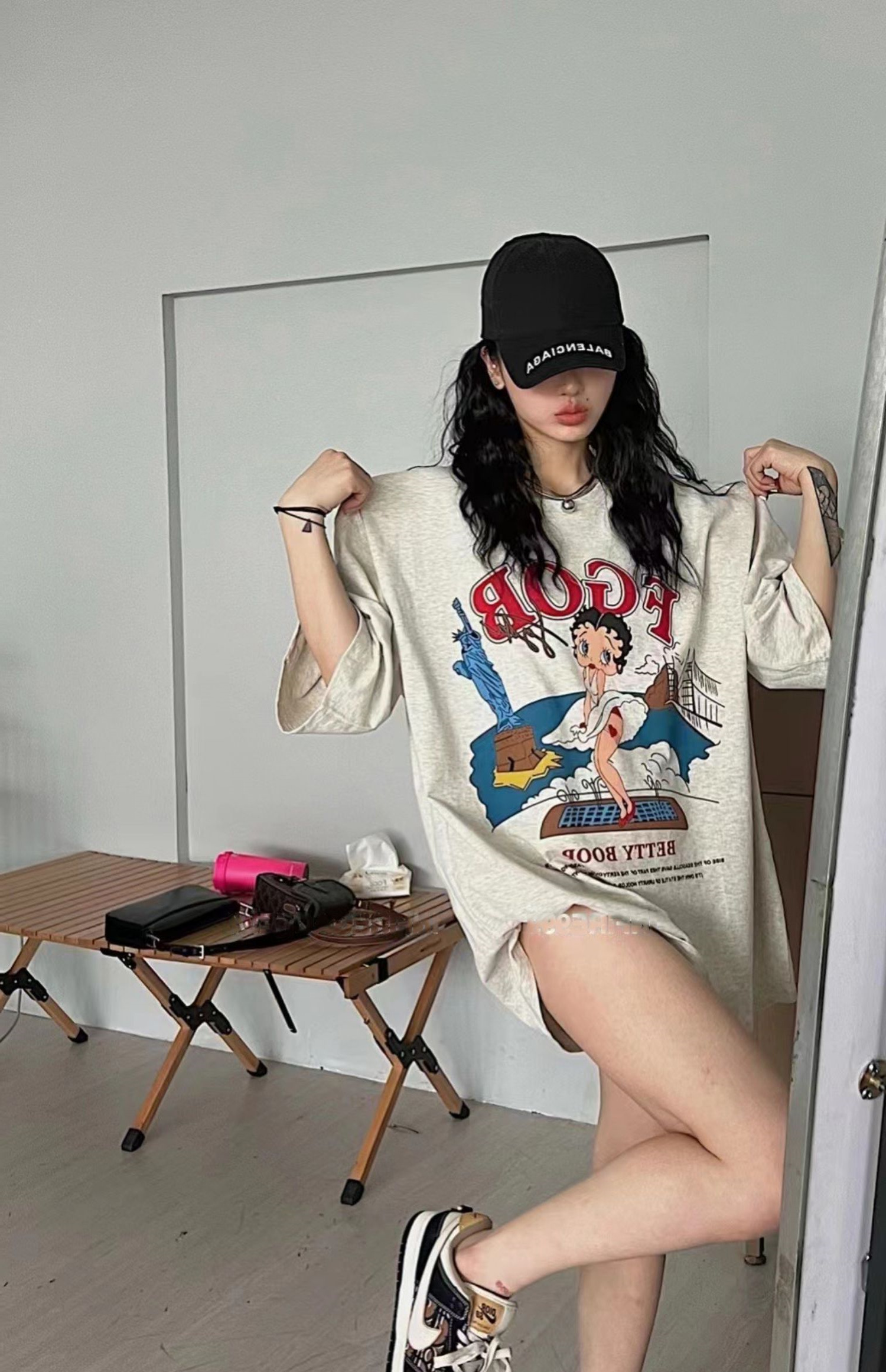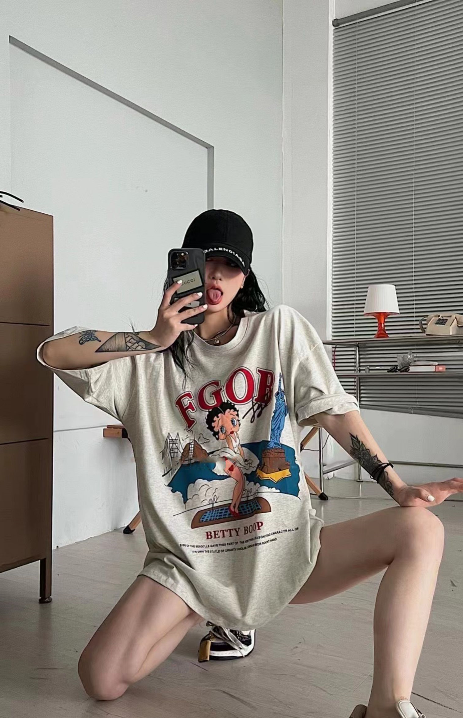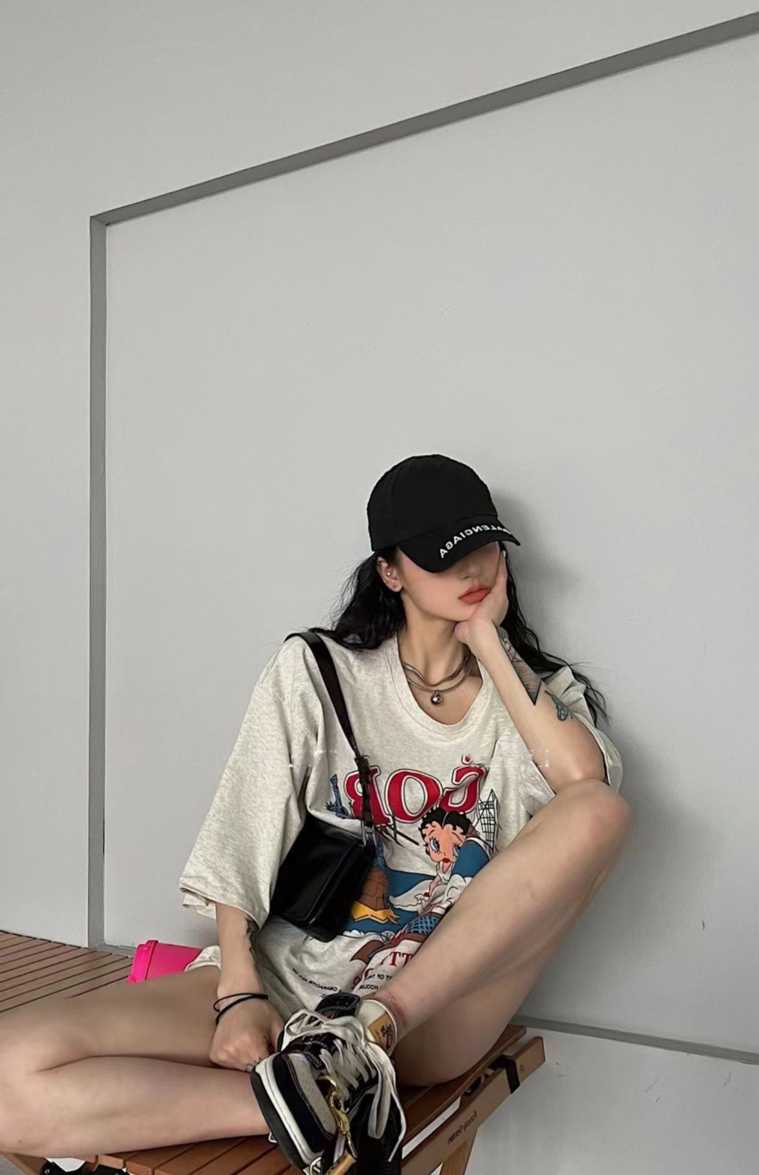 美式vintage复古大码t恤女纯棉潮牌古着短袖ins2022新款夏季上衣