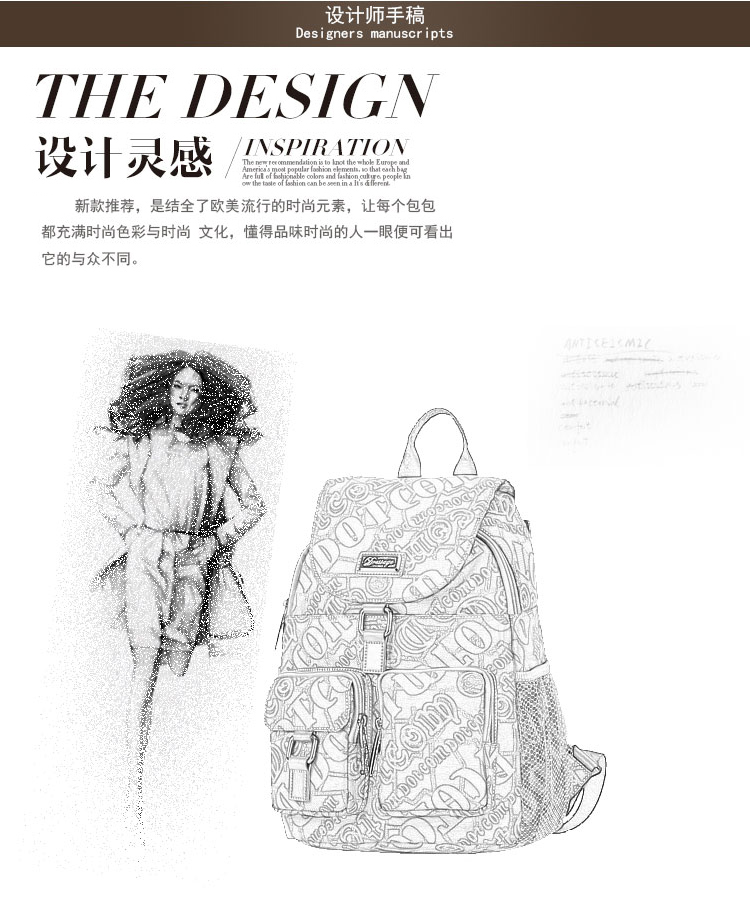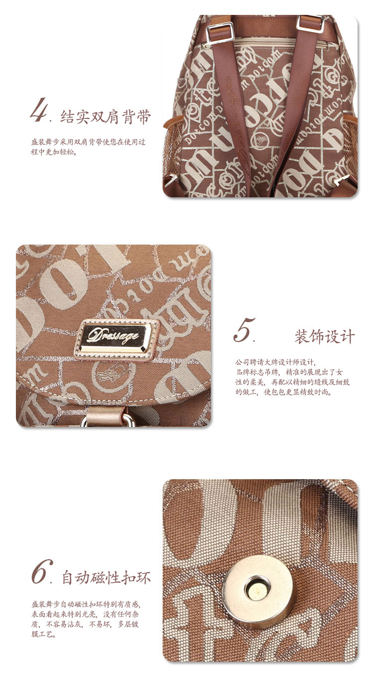 盛装舞步休闲新款时尚韩版潮流帆布配牛皮双肩包女包旅行背包M429