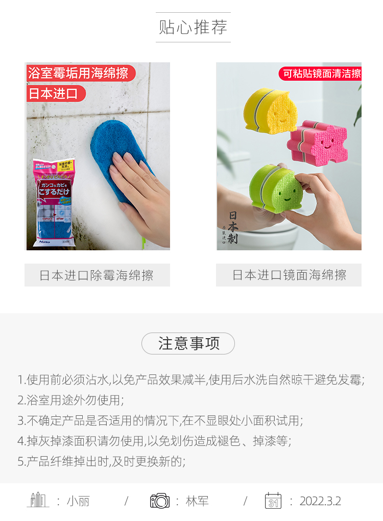 日本进口浴室水垢清洁海绵擦浴缸强力去污魔术擦洗面台除垢魔力擦
