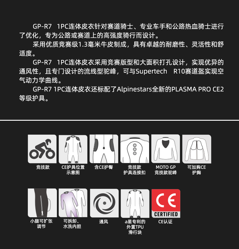 a星赛道连体皮衣GP-R7专业比赛服防摔摩托车服机车服摩托装备男