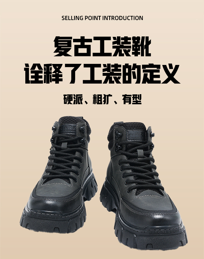 马克华菲马丁靴男复古工装靴2025新款男士高帮户外防水登山靴子男