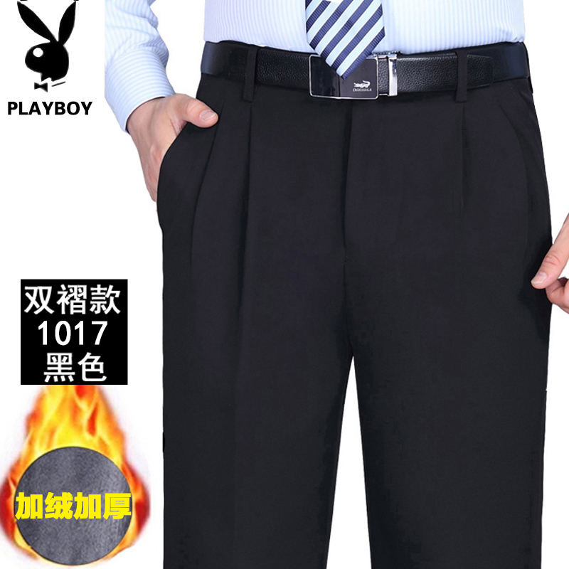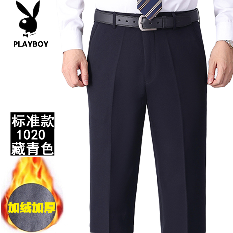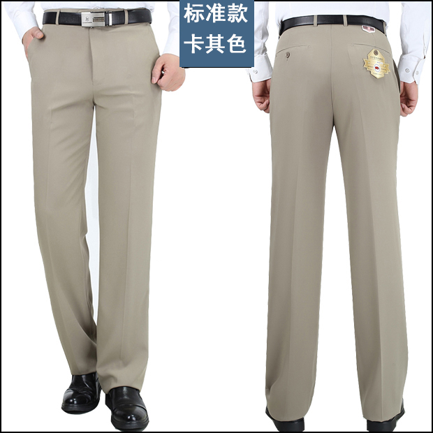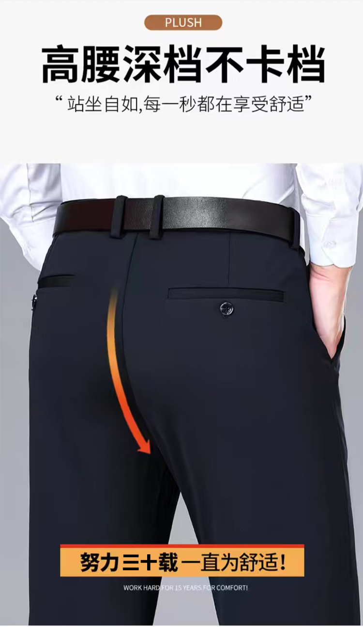 花花公子西裤男加肥加大码宽松直筒中老年免烫爸爸上班蚕丝休闲裤