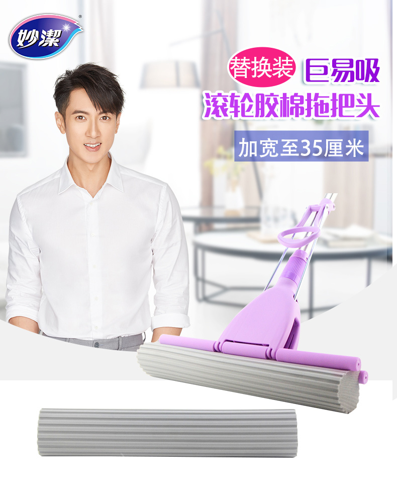 妙洁拖把头卡槽式大号35/39cm胶棉替换头挂钩38cm家用海绵拖把头