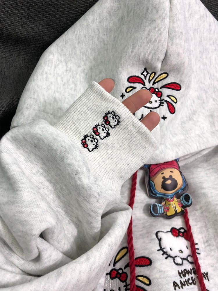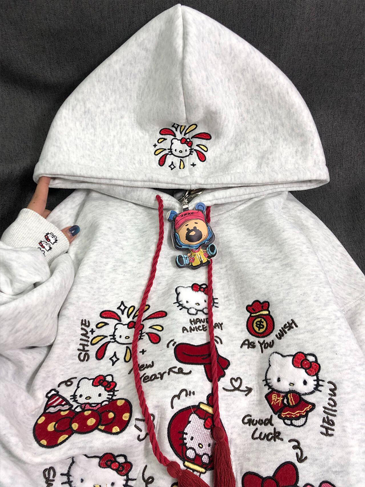 可爱kitty小猫刺绣连帽卫衣女春秋冬2025新款韩系慵懒风上衣外套