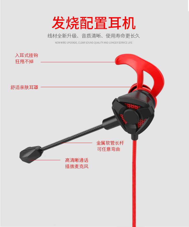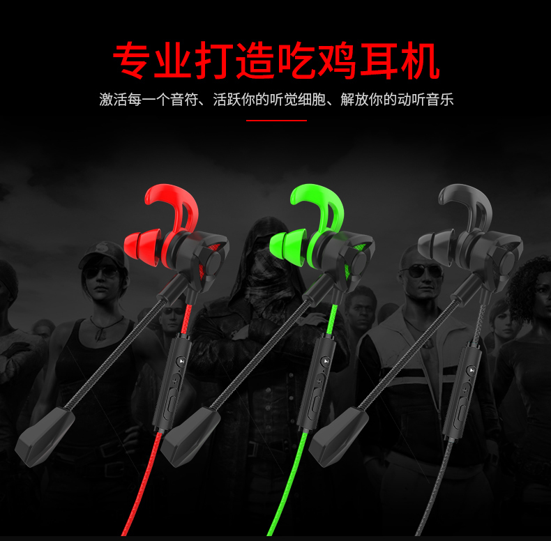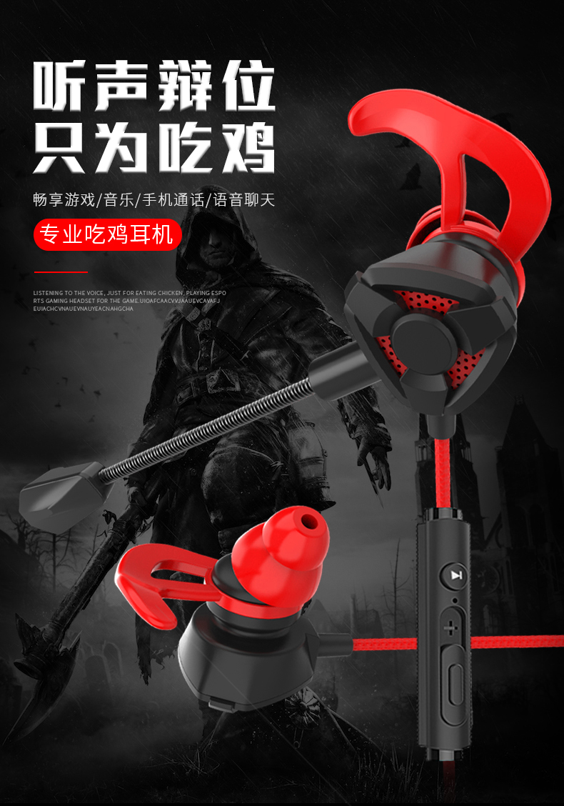 吃鸡耳机有线入耳式电竞游戏专用听声辨位耳麦降噪重低音手机电脑