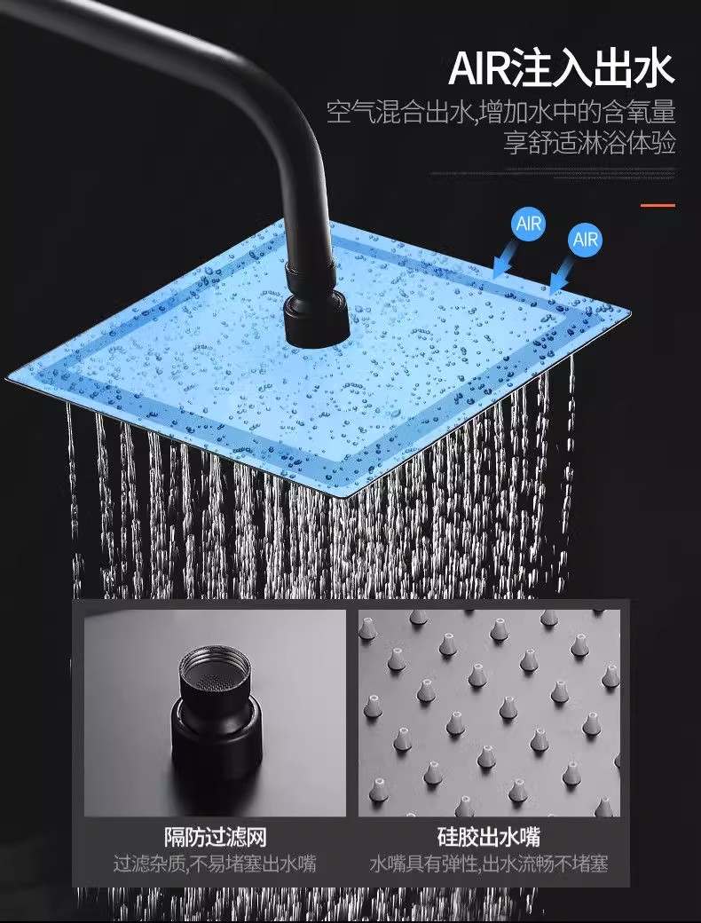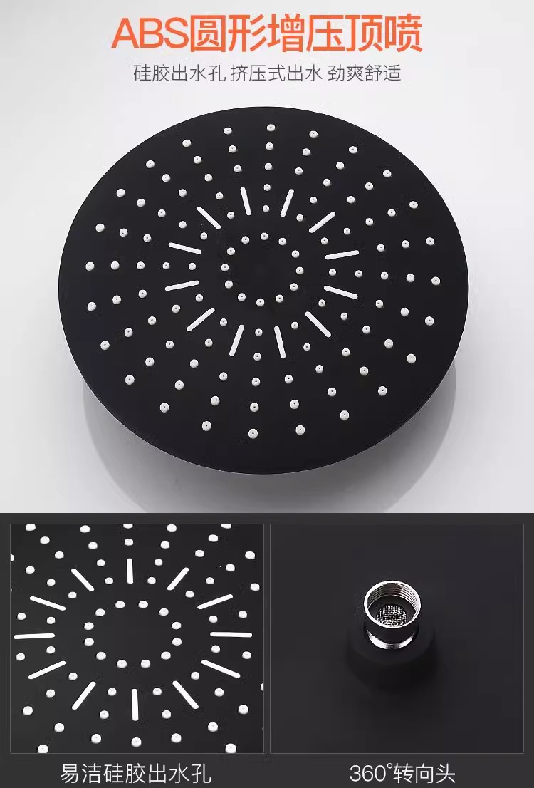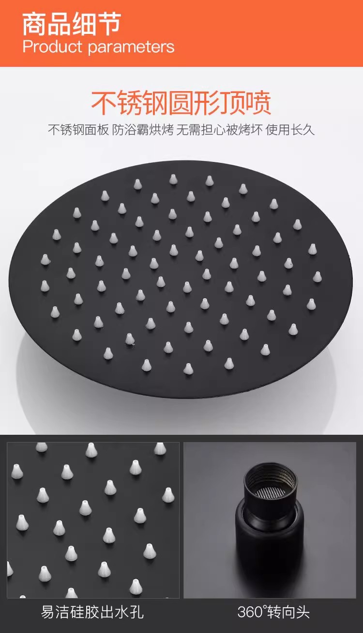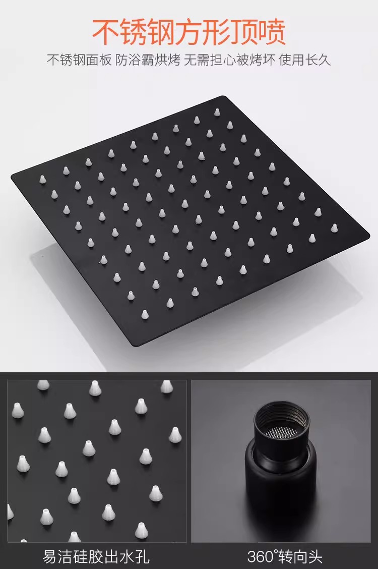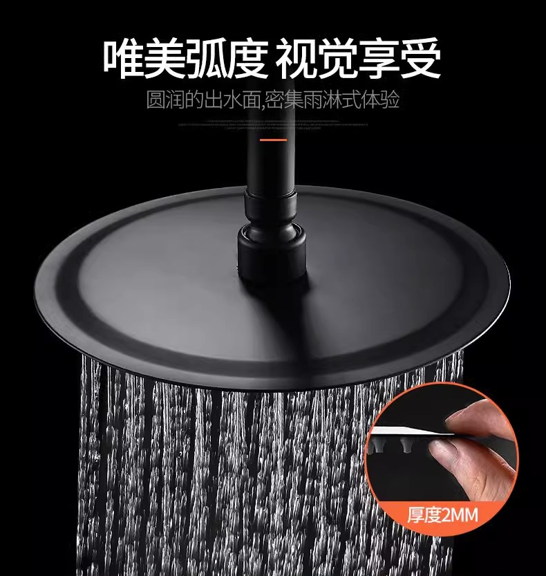 淋浴喷头黑色淋雨喷淋头增压大花洒顶喷单头花洒莲蓬头配件不锈钢